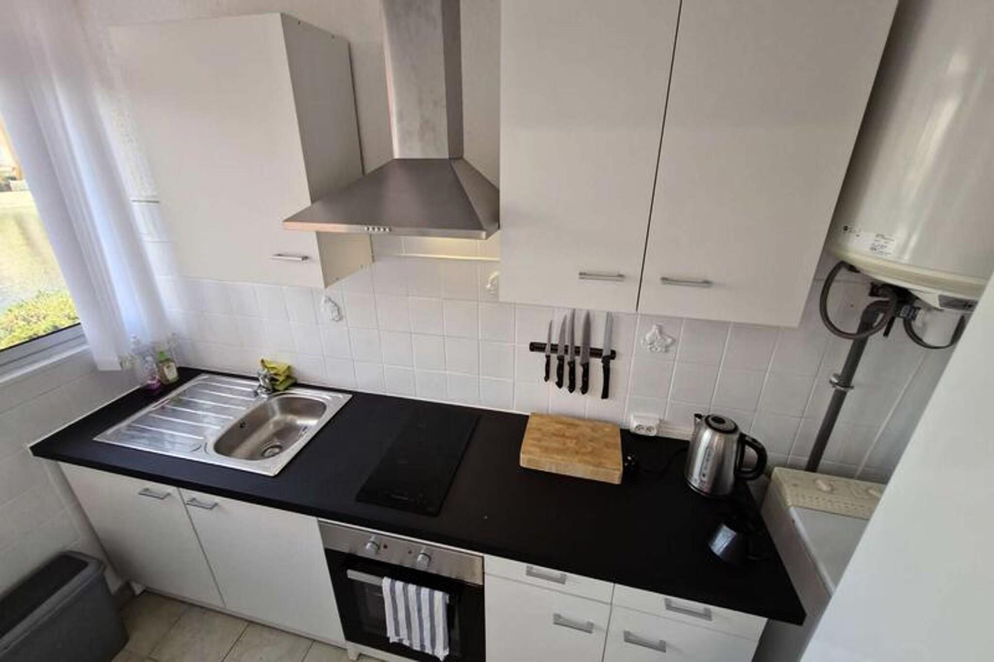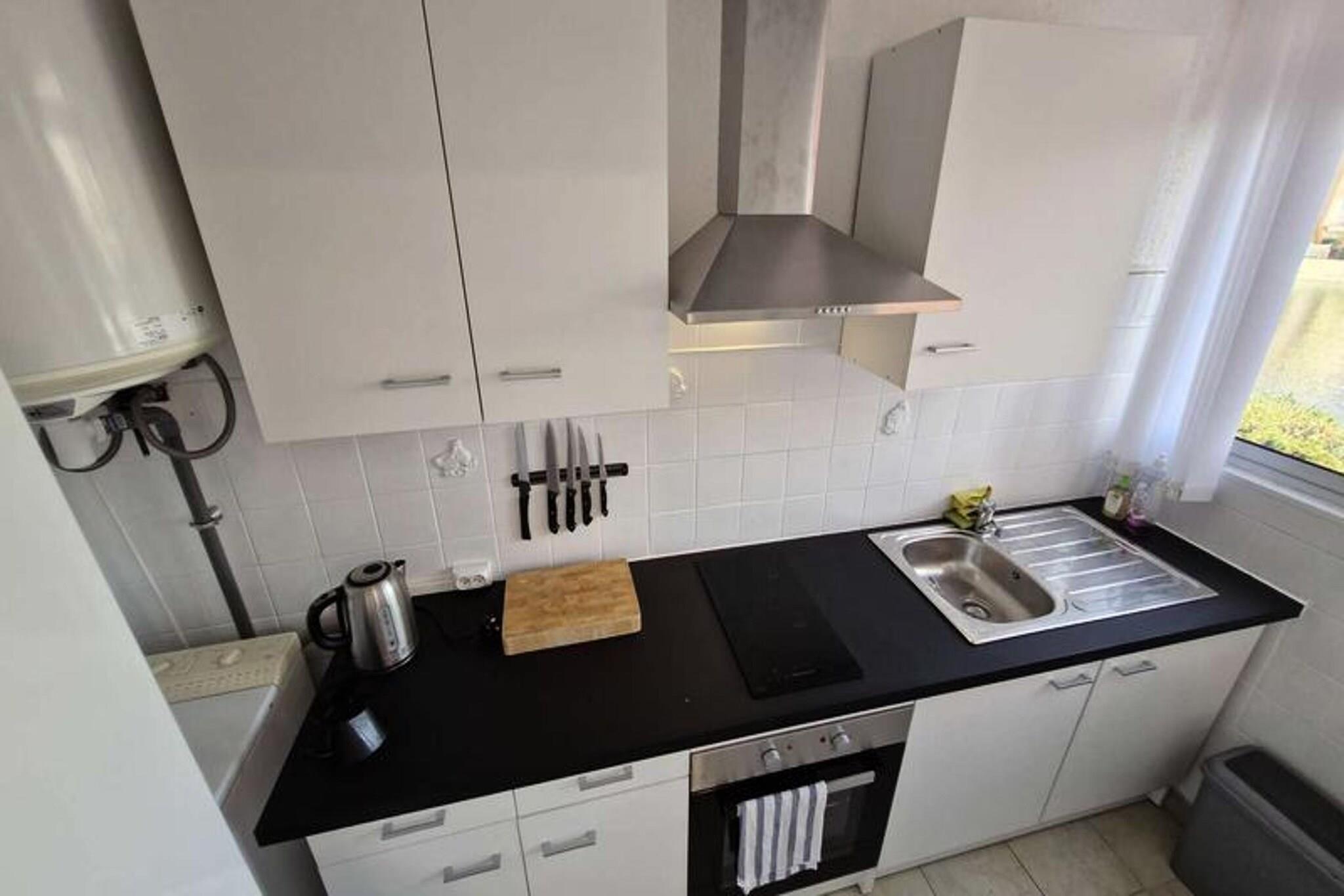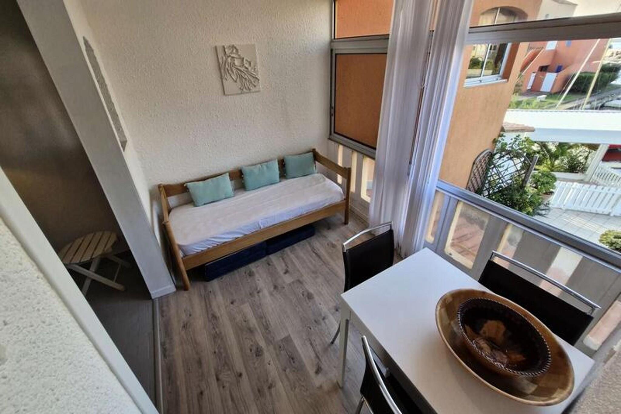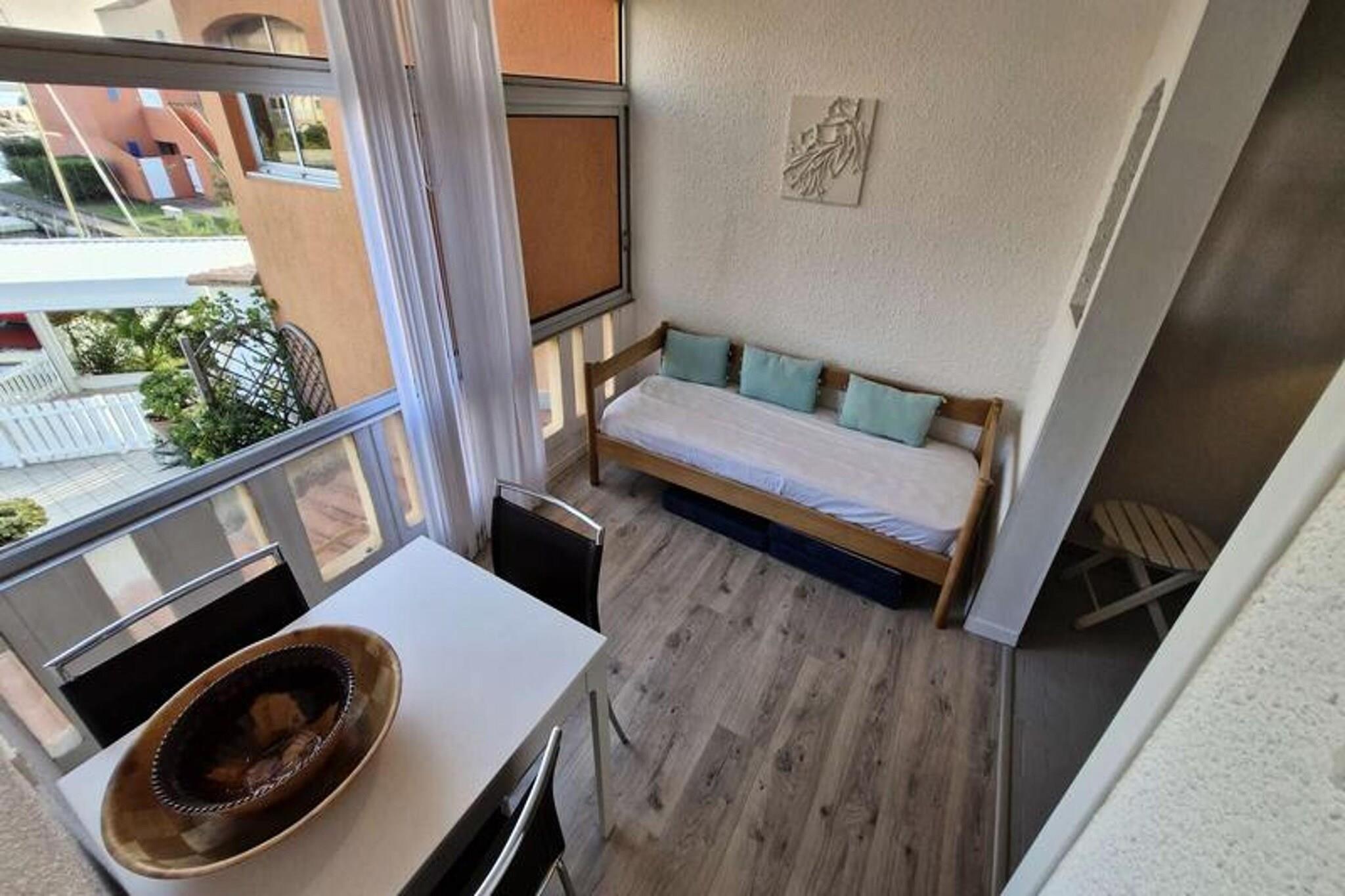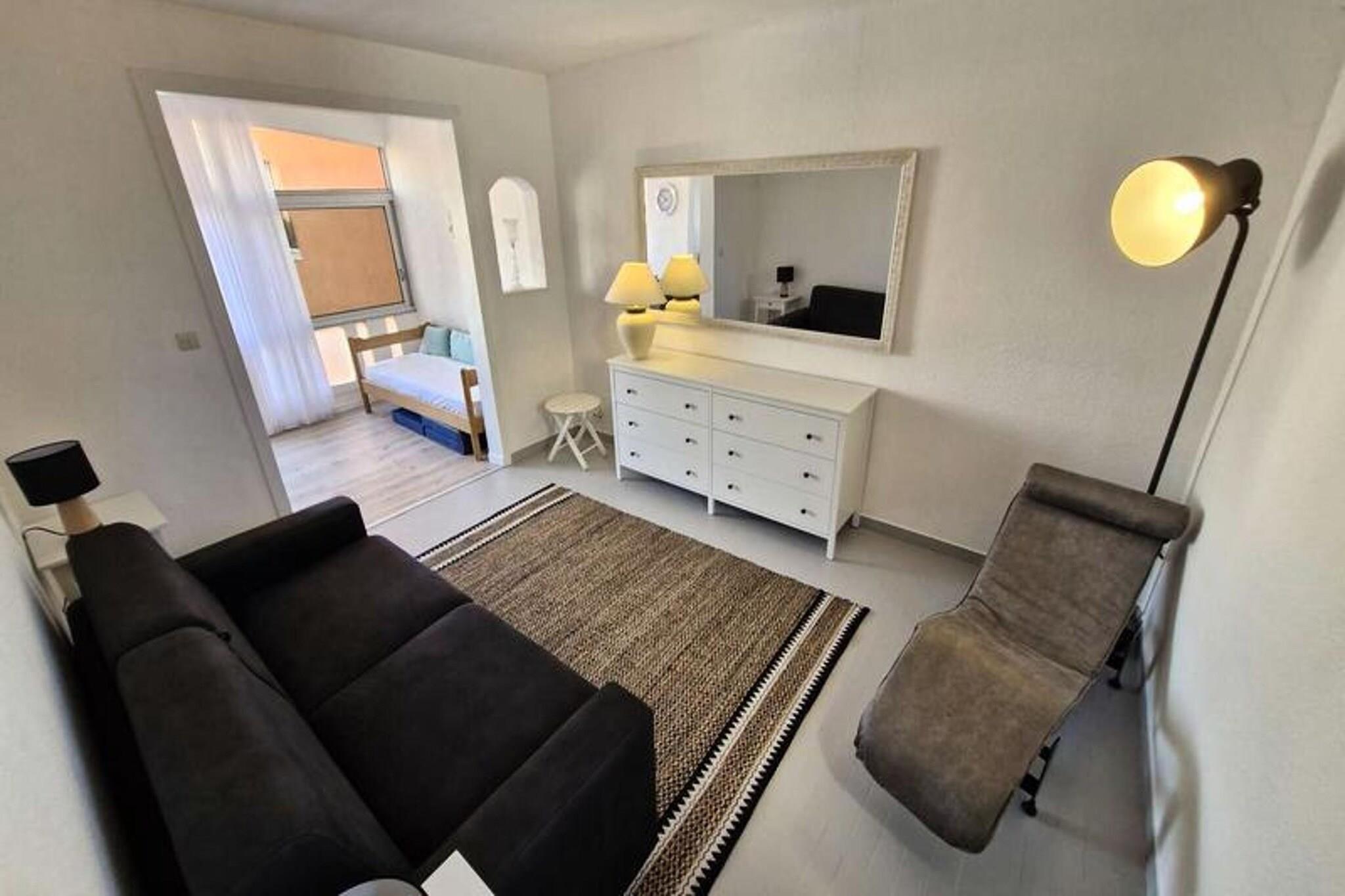 Denne studiolejlighed, designet til at rumme op til tre personer, tilbyder et komfortabelt tilflugtssted med en smuk udsigt over kanalen og den marine sø. Den har en stue med en sovesofa til 2 personer samt en loggia med en enkeltseng udelukkende til et barn. Lejligheden er udstyret med væsentlige faciliteter, herunder aircondition, keramisk kogeplade, ovn, køleskab med fryser og en vaskemaskine. Det ligger på første sal i en bolig uden elevator, hvilket giver en rolig og hyggelig atmosfære. Beliggende kun 2 km fra stranden, er ejendommen bekvemt tæt på lokale butikker, med et marked kun 300 meter væk. Gæsterne kan nemt udforske nærliggende caféer og restauranter, der tilbyder en række spisemuligheder. Placeringen giver også adgang til naturskønne udendørs aktiviteter langs kysten, perfekt for dem, der søger afslapning eller eventyr. Lejligheden er udstyret med et tekøkken til at tilberede måltider, og loggiaen tilbyder ekstra plads til at nyde omgivelserne. Badeværelset er udstyret med grundlæggende faciliteter, og den kollektive parkering ved boligen sikrer nem adgang. I de varmere måneder kan gæsterne nyde ejerlejlighedens swimmingpools, men bemærk venligst, at adgangen kan være begrænset på grund af vandbesparende foranstaltninger.