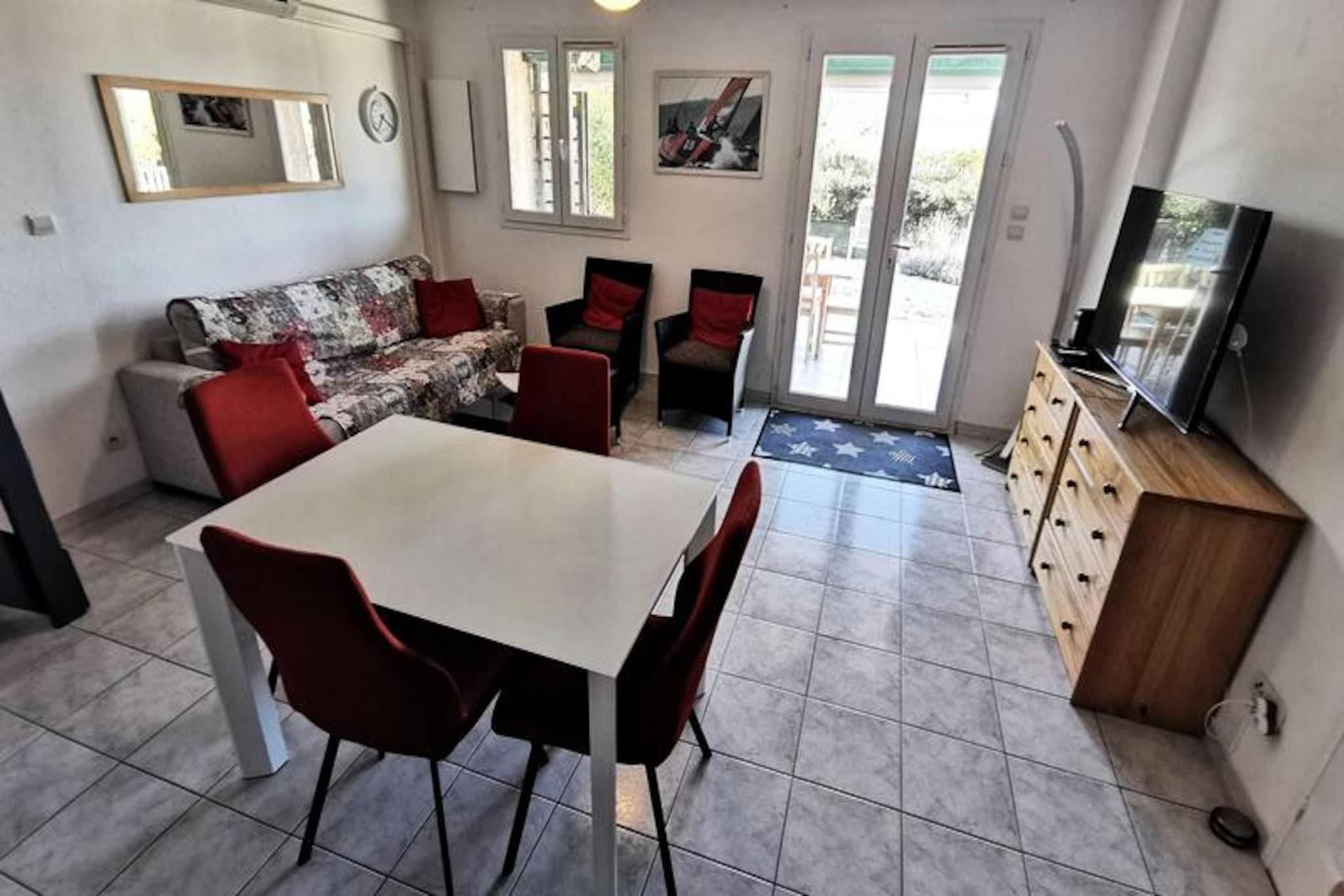 Forestil dig at vågne op til den blide lyd af bølger fra den nærliggende havsø, kun 30 meter fra din dørtrin. Denne fantastiske villa med fire værelser tilbyder et idyllisk tilflugtssted, hvor moderne komfort møder naturlig skønhed. Med en vestvendt beliggenhed bader ejendommen i gyldne solnedgange, hvilket skaber den perfekte atmosfære til aftener på den store 100 m² store haveterrasse. Uanset om du nipper til et glas vin eller nyder et familiemåltid udendørs, lover de rolige omgivelser uforglemmelige øjeblikke. Indenfor kan villaen prale af en gennemtænkt planløsning. Stueetagen har en luksuriøs master suite med dobbeltseng og eget badeværelse, mens du ovenpå finder et hyggeligt soveværelse med dobbeltseng og et charmerende børneværelse med køjesenge. Det fuldt udstyrede køkken inkluderer keramisk kogeplade, kombineret mikrobølgeovn, køleskab med fryser, opvaskemaskine og vaskemaskine, hvilket sikrer alle hjemmets bekvemmeligheder. Det 53 m² store opholdsrum suppleres af aircondition, Wi-Fi og et tv, hvilket gør det til et afslapningsparadis efter en dag med udforskning. Denne villa ligger kun 1 km fra stranden og er perfekt placeret for dem, der elsker havet. Den fælles swimmingpool tilbyder en forfriskende afslapning, selvom tilgængeligheden kan variere på grund af lokale vandrestriktioner. Privat parkering sikrer bekvemmelighed, og det omkringliggende område er rigt på muligheder for udendørsaktiviteter og kulturelle opdagelser. Uanset om du søger en fredelig ferie eller en aktiv ferie ved vandet, tilbyder denne villa de ideelle rammer for at skabe varige minder. Med sin blanding af komfort, stil og nærhed til naturen er det en destination, du vil vende tilbage til igen og igen.