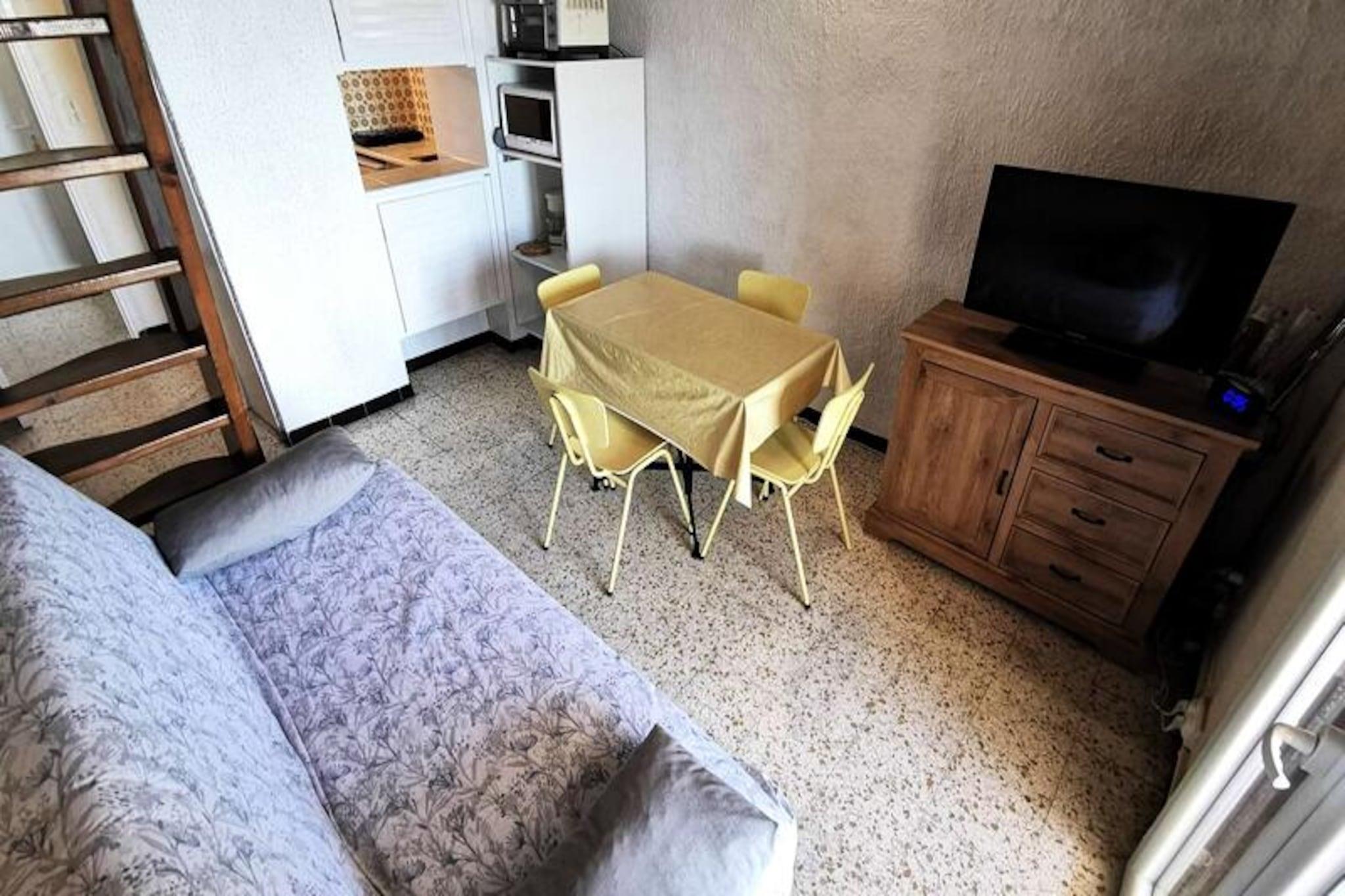 Med udsigt over den fredfyldte havsø tilbyder dette charmerende mezzanin-studie en rolig oase for op til fire gæster. Med sin sydvendte åbne loggia kan du sole dig i middelhavssolen, mens du nyder uforstyrret udsigt over det glitrende vand. Uanset om du søger et fredeligt tilflugtssted eller en aktiv kystferie, tilbyder dette hyggelige rum den perfekte balance mellem afslapning og bekvemmelighed. Indenfor er studiet omhyggeligt designet til at maksimere komfort og funktionalitet. Opholdsstuen har en komfortabel dobbeltsovesofa, mens mezzaninen tilbyder to enkeltsenge, hvilket gør det ideelt til familier eller små grupper. Tekøkkenet er udstyret med et aftageligt elektrisk komfur, mikrobølgeovn, miniovn og bordkøleskab, hvilket sikrer, at du har alt, hvad du behøver for at tilberede måltider under dit ophold. Yderligere faciliteter inkluderer et tv og en vaskemaskine, alt sammen i et kompakt, men indbydende areal på 27 m². Studiet ligger kun 2,5 km fra stranden, 300 meter fra et supermarked og 3 km fra byens centrum og er perfekt placeret til at udforske lokalområdet. Privat parkering sikrer nem adgang, og de fredelige omgivelser gør det til en ideel base for din ferie. Uanset om du slentrer langs den nærliggende kystlinje eller nyder byens pulserende atmosfære, tilbyder dette studie et dejligt hjem væk fra hjemmet. Med sin fantastiske udsigt, bekvemme beliggenhed og hyggelige atmosfære inviterer dette mezzanin-studie dig til at skabe uforglemmelige minder ved havsøen. Perfekt til par, venner eller små familier, det er en oase af komfort og charme ved Middelhavskysten.