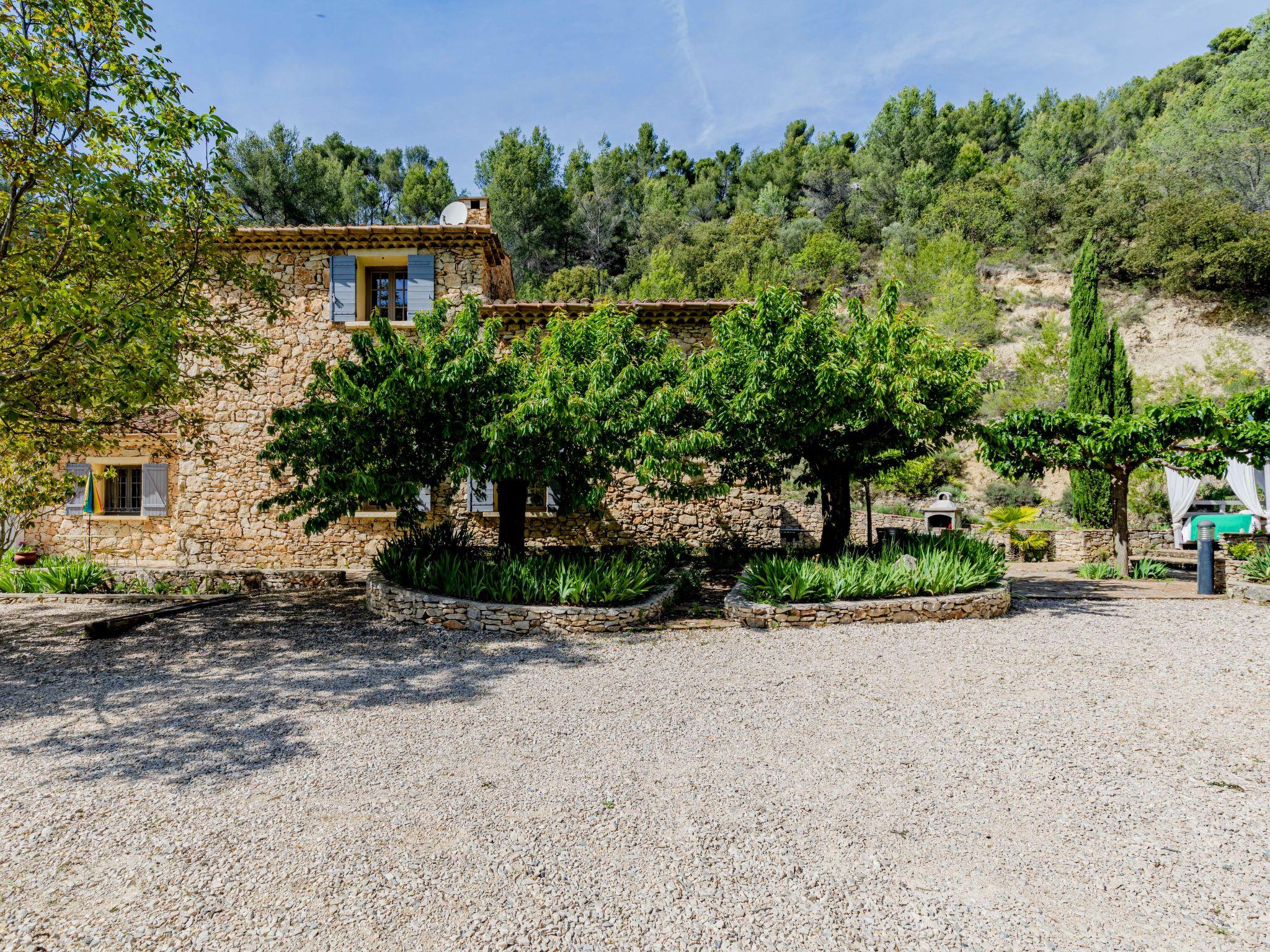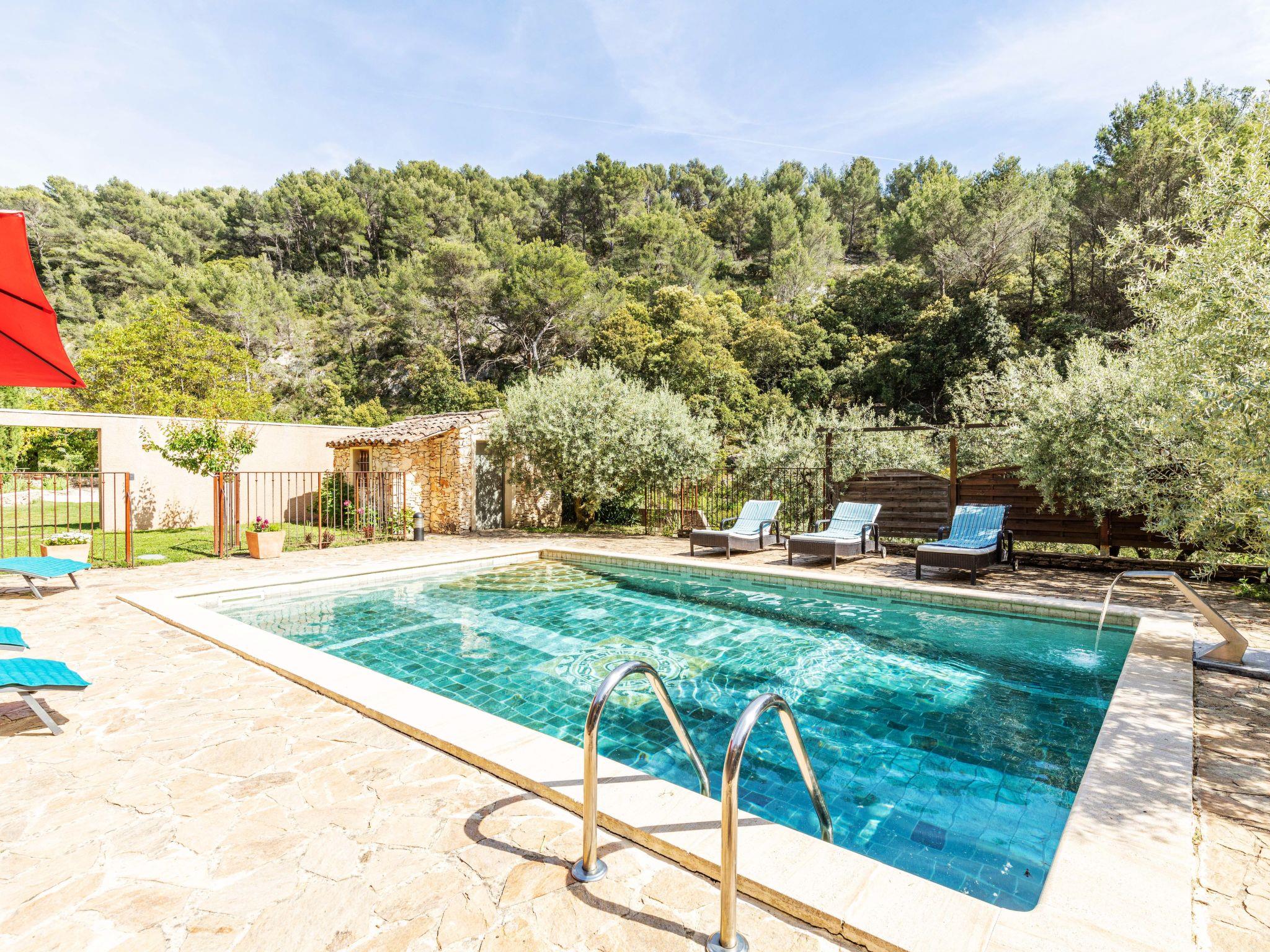 Le Barroux 7 km from Malaucène: Villa "L'Oliveraie", 2 storeys, built in 2005, surrounded by trees. In the resort 2 km from the centre of Le Barroux. Private: property 3 ha, well-kept garden (fenced) with wildlife garden and flowers, swimming pool angular, with privacy (5 x 8 m, depth 120 - 175 cm, seasonal availability: 01.May. - 30.Sep.). Pool house, table tennis, boules. In the house: massage (extra). Trampoline. Breakfast and half board possible (extra). Parking (for 2 cars) on the premises. Grocery 2 km, supermarket 7 km, restaurant 500 m, bakery 2 km, bus stop "Le Barroux" 1.3 km. Nearby attractions: Château du Barroux 2 km, Malaucène 7 km, Parc Spiroux 20 km, Wave Island 20 km, Mont Ventoux 21 km. Please note: car recommended. Suitable for families, baby equipment on request (included). Residence with electric gates. The owner lives on the same property.