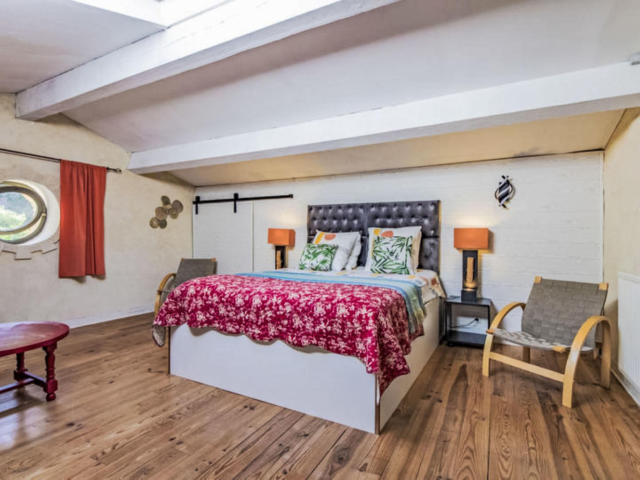 "L'Oliveraie", 5-room villa 250 m2 on 2 levels. Living/dining room 55 m2 with TV and flat screen. Exit to the garden. 1 room with 1 french bed (160 cm, length 200 cm), shower. Exit to the garden. 1 room with 1 french bed (160 cm, length 200 cm). Open kitchen (4 hot plates, oven, dishwasher, microwave, electric coffee machine, Capsules for coffee machine (Nespresso) extra). Shower, sep. WC. Heating. Upper floor: 1 room with 2 beds (90 cm), shower. 1 room with 1 french bed (160 cm, length 200 cm), TV (flat screen). Bath/shower, sep. WC. Garden. Terrace furniture. Facilities: washing machine, iron, children's high chair, baby cot for up to 2 year olds, hair dryer. Internet (WiFi, free). Parking (2 cars). Please note: suitable for families. Maximum 1 pet/ dog allowed. Smoke alarm, fire extinguisher. Please note: electric charging station 2km away in Caromb. No charging possible in the villa.