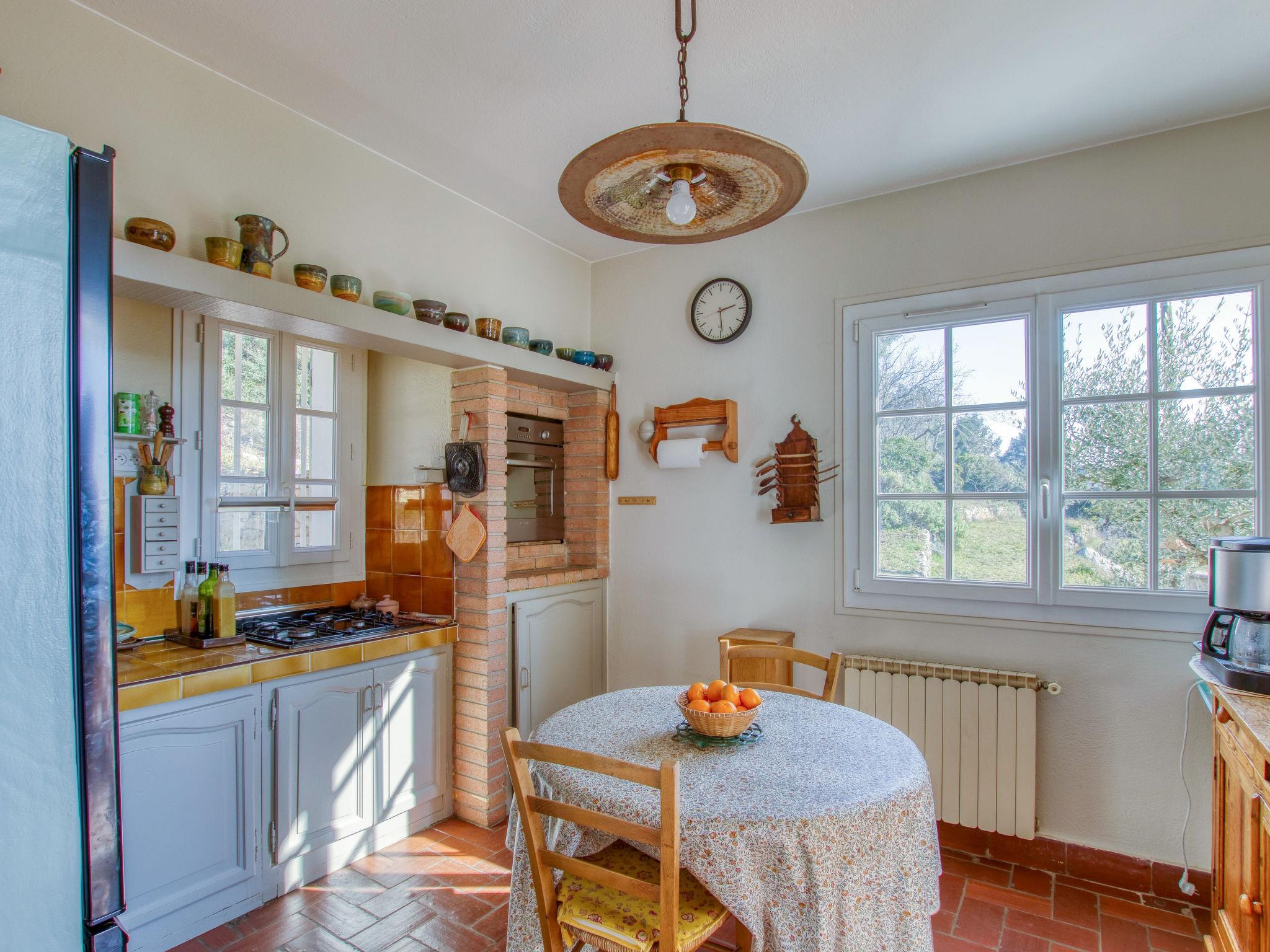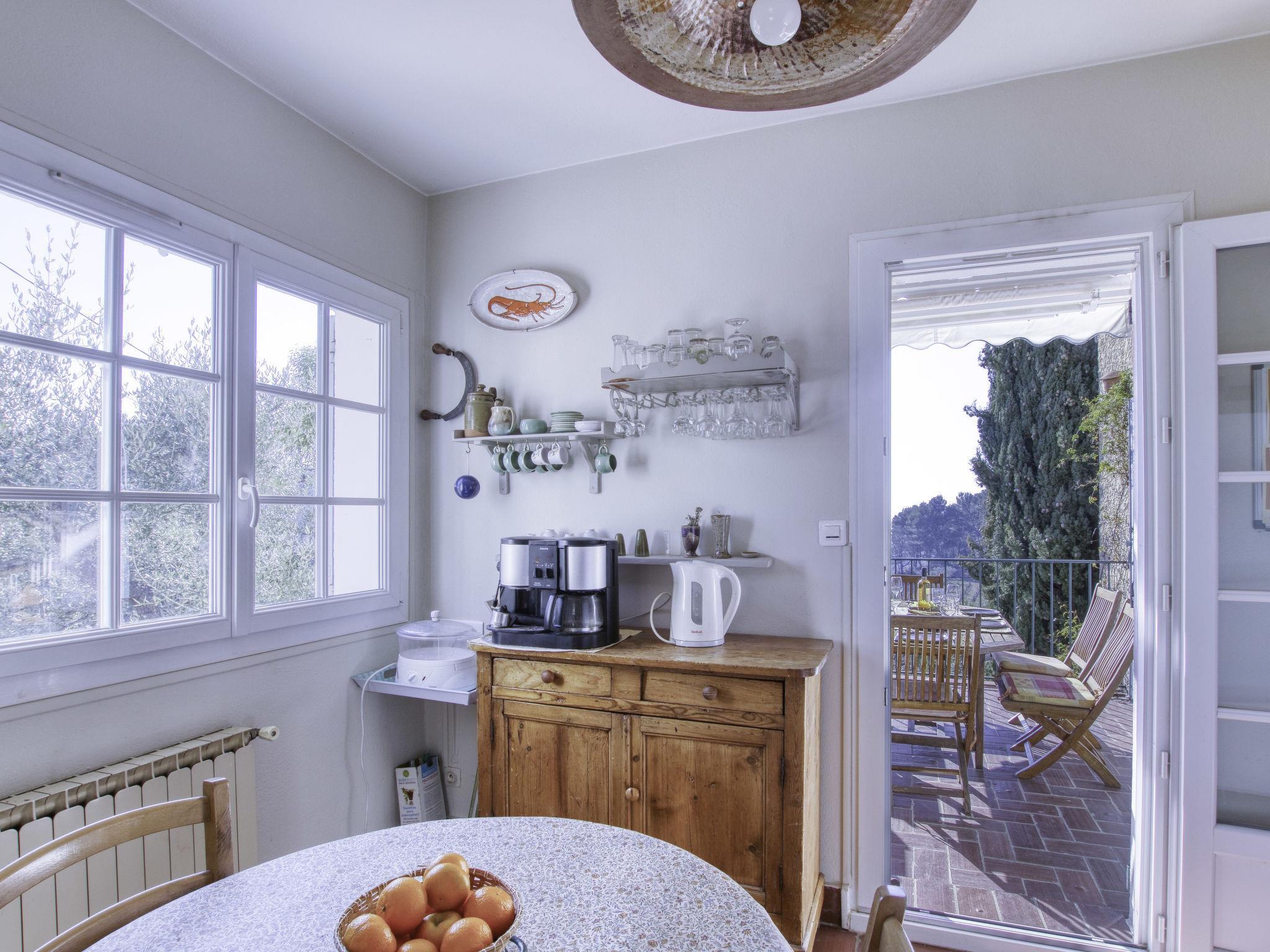 Single-family house "Le Mas de la Poterie", surrounded by trees and vineyards. In the district of Beausset vieux, on the outskirts, 4 km from the centre, in a quiet, sunny position on top of a hill, 9 km from the sea. Private: garden 6'000 m2 (not fenced), swimming pool (10 x 5 m, depth 100 - 170 cm, seasonal availability: 01.May. - 14.Oct.) with salt water and alarm system. Outdoor shower, table tennis (swing), pool maintenance by the owner/gardener. Parking (for 2 cars). Grocery 2 km, restaurant 2 km, bus stop "Sainte Brigitte" 2.5 km, sandy beach " de bandol" 9 km. Golf course (18 hole) 10 km. Hiking paths: Sainte Baume,Sainte Victoire,Calanques, Cassis,Porquerolles,Ile verte,Embiez. Please note: car recommended. The owner does not accept any youth groups. The keys‘ handover takes place by the agency INTERHOME in ST CYR SUR MER, 14 km. Owner lives in separate semi-detached house. The house is located on a protected site. The owner has his pottery workshop and his studio in a lower and independent part of the house,¨.