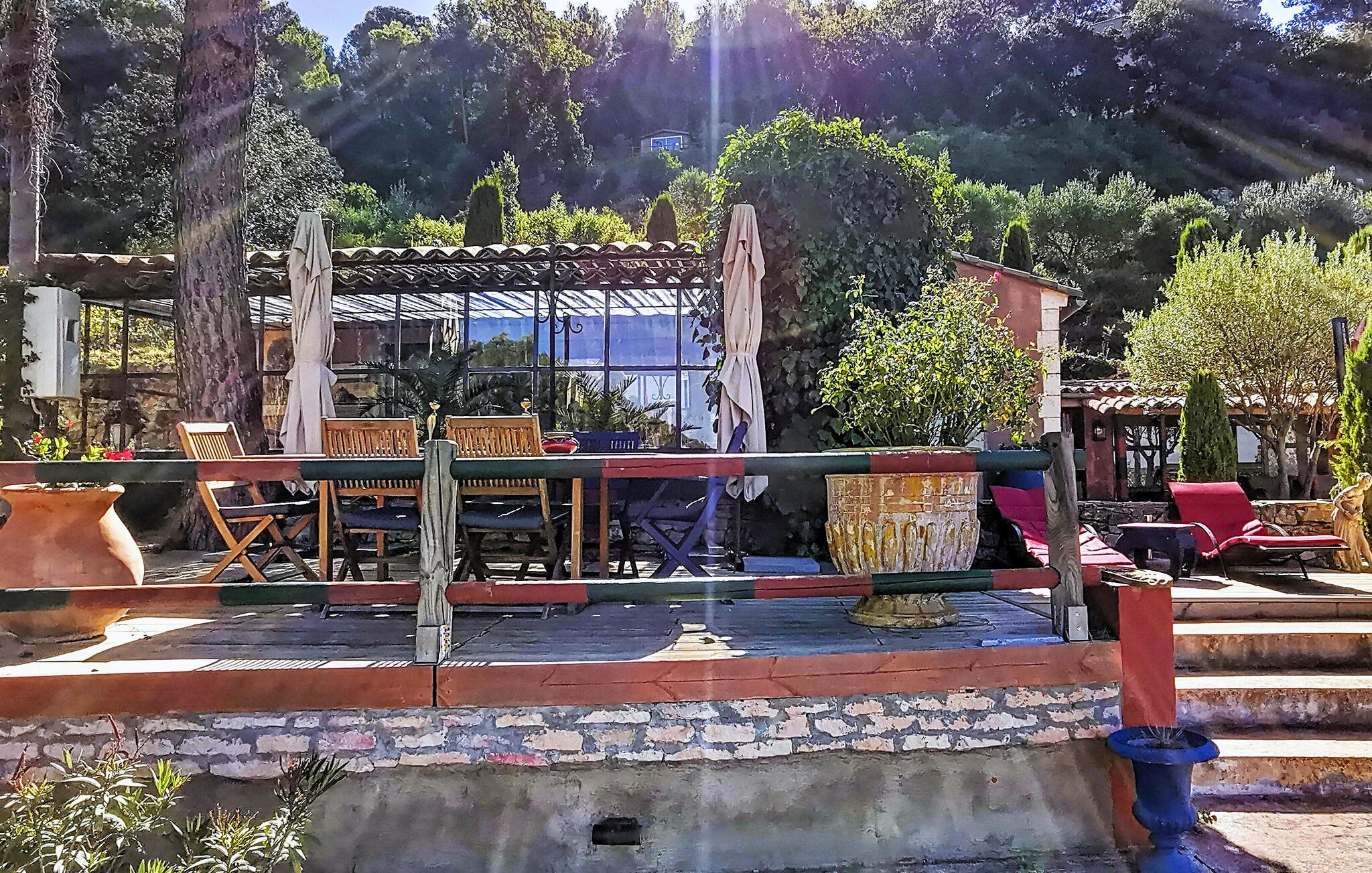 Udendørs inviterer store, solrige terrasser jer til at spise med en betagende udsigt over det omkringliggende landskab. Snup en frisk dukkert i poolen, slap af i saunaen og nyd et glas lokal rosévin på den skyggefulde veranda. Udforsk den store, parklignende grund og nyd duften af ??provencalsk flora.