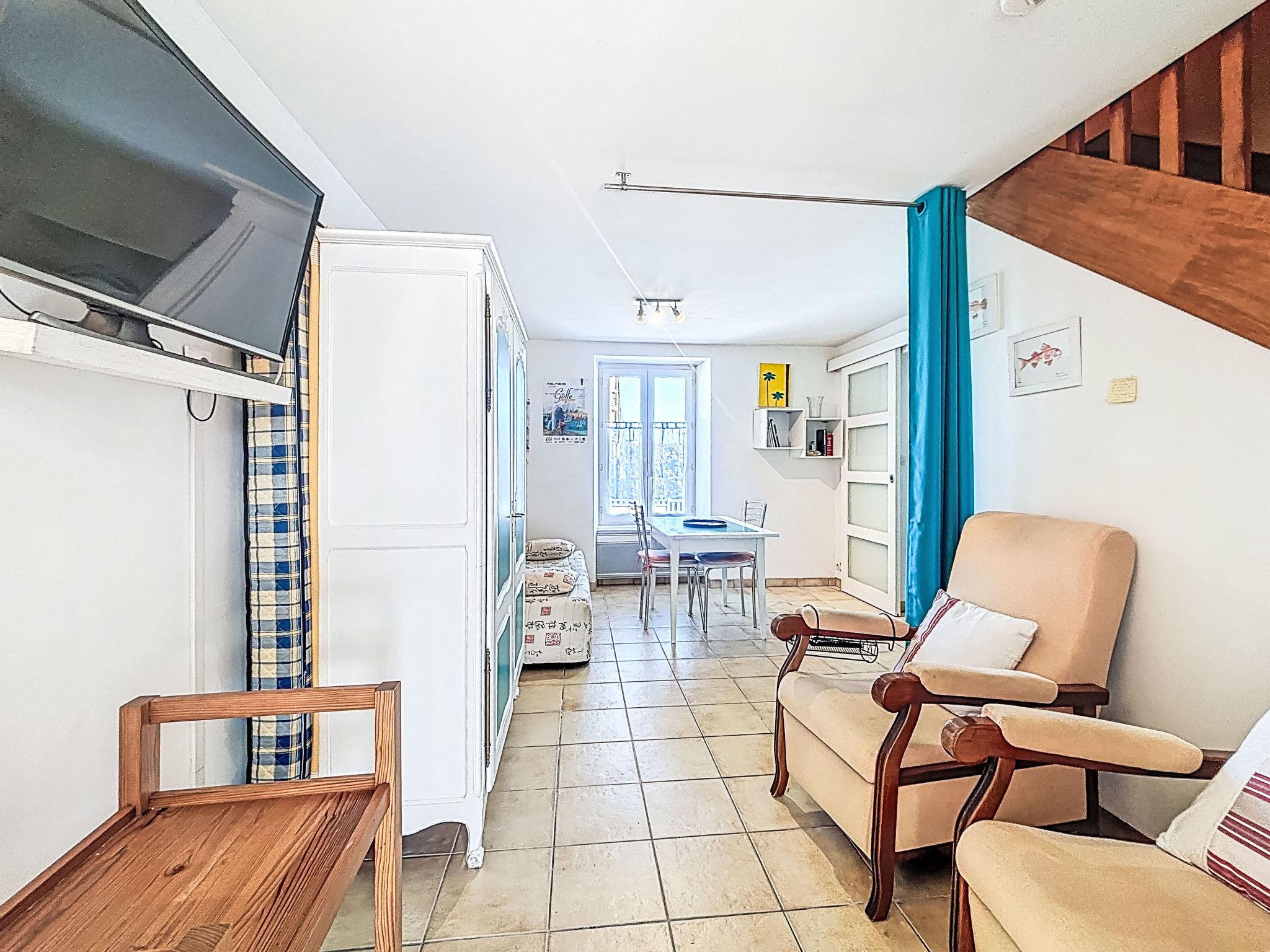 " Maison Aristide Briand", 2-room terraced house 50 m2. Comfortable furnishings: living/dining room with veranda with TV (flat screen). Lounge with 1 double sofabed (1 x 140 cm, length 190 cm), TV (flat screen). Kitchen (oven, dishwasher, 4 gas rings, toaster, kettle, microwave, freezer, electric coffee machine, raclette grill). Sep. WC. Upper floor: 1 room with 1 french bed (1 x 140 cm, length 190 cm). Shower/WC. Heating. Terrace 20 m2, garden. Terrace furniture, barbecue, deck chairs. Facilities: washing machine, baby cot (extra). Internet (WiFi, extra). Parking. Please note: non-smokers only. Smoke alarm. Offer by a private individual according to Art. 155, IV of CGI.