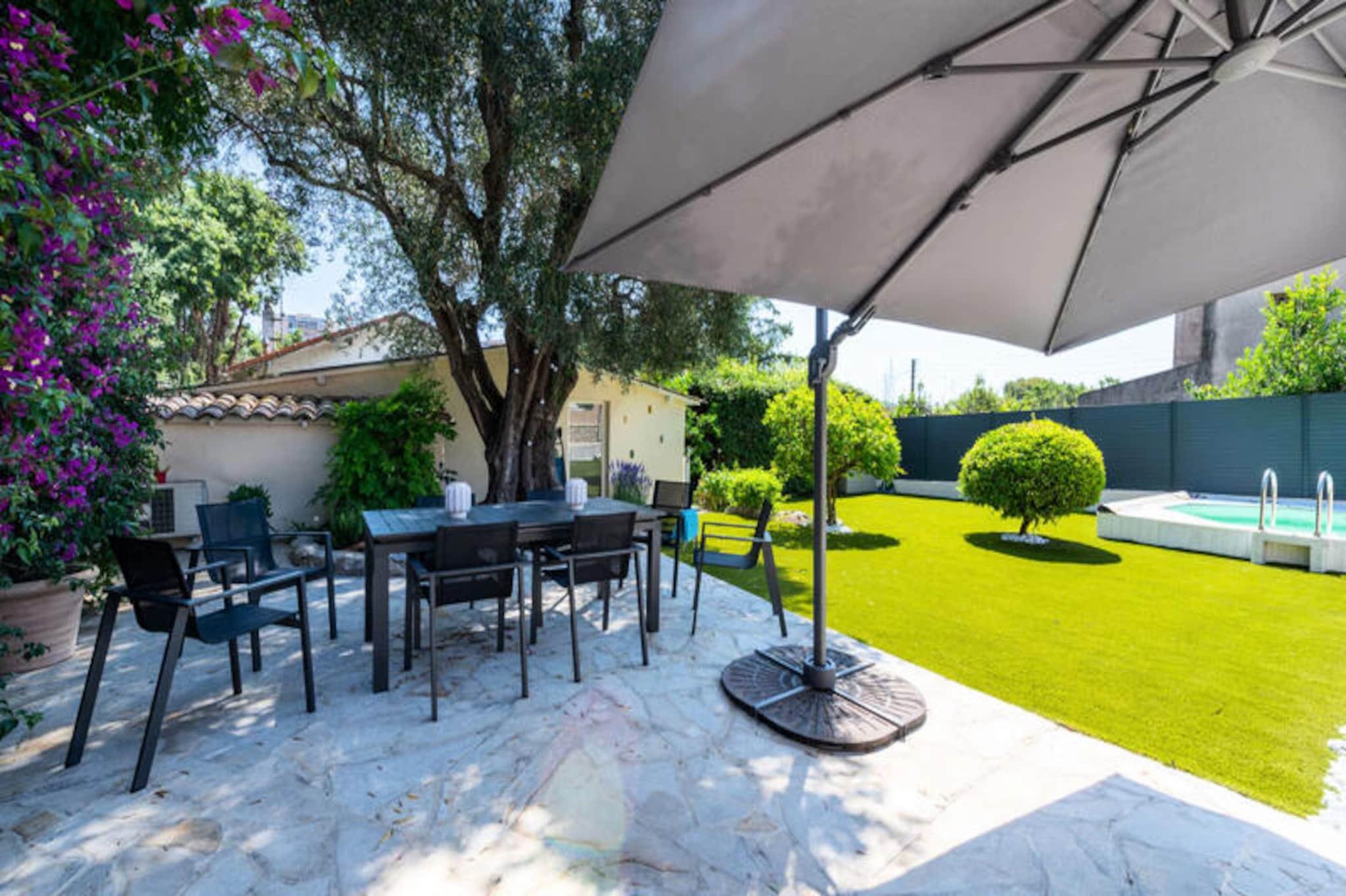 I et roligt hjørne af Le Cannet, kun en kort køretur fra Cannes' glamour, tilbyder denne villa et roligt tilflugtssted for familier og venner. Forestil dig at vågne op til den blide raslen af ??oliventræer, nyde morgenmaden i den skyggefulde have og tilbringe dagen med at slappe af ved den opvarmede pool eller udforske den nærliggende Côte d'Azur. Med sine fredelige boligomgivelser kombinerer denne ejendom charmen ved en privat oase med nem adgang til den pulserende Riviera-livsstil. Villaens interiør er designet til komfort og afslapning. Hovedhuset har tre smukt indrettede soveværelser, hver med eget badeværelse, hvilket sikrer privatliv for alle gæster. Master-suiten kan prale af en queensize-seng og et eget badeværelse, mens de to andre soveværelser tilbyder hyggelige dobbeltsenge og eget badeværelse med bruser. Det åbne køkken er fuldt udstyret til at tilberede lækre måltider, som kan nydes i spiseområdet eller under oliventræet. Et separat anneks i haven tilbyder et ekstra soveværelse med et brusebad, perfekt til at være vært for venner eller den udvidede familie. Moderne faciliteter såsom Wi-Fi, reversibel aircondition og et tv med Android-kanaler sikrer et behageligt ophold. Udenfor er haven et sandt paradis. Den 4x4 meter store opvarmede pool inviterer dig til en forfriskende dukkert, mens sommerkøkkenet og Ninja-grillen gør udendørs spisning til en fornøjelse. Villaens beliggenhed er ideel til at udforske regionen: Le Cannets historiske centrum ligger kun 5 minutter væk, og de ikoniske strande i Cannes og den travle Croisette ligger inden for 15 minutters kørsel. Golfentusiaster vil sætte pris på nærheden til Cannes-Mougins Golfbane, mens madelskere kan udforske Forville-markedet for friske lokale råvarer. Uanset om du søger en fredelig ferie eller en base for at udforske Rivieraen, tilbyder denne villa den perfekte blanding af afslapning og eventyr. Lad charmen ved Le Cannet og Cannes' tiltrækningskraft skabe uforglemmelige minder til din næste ferie.