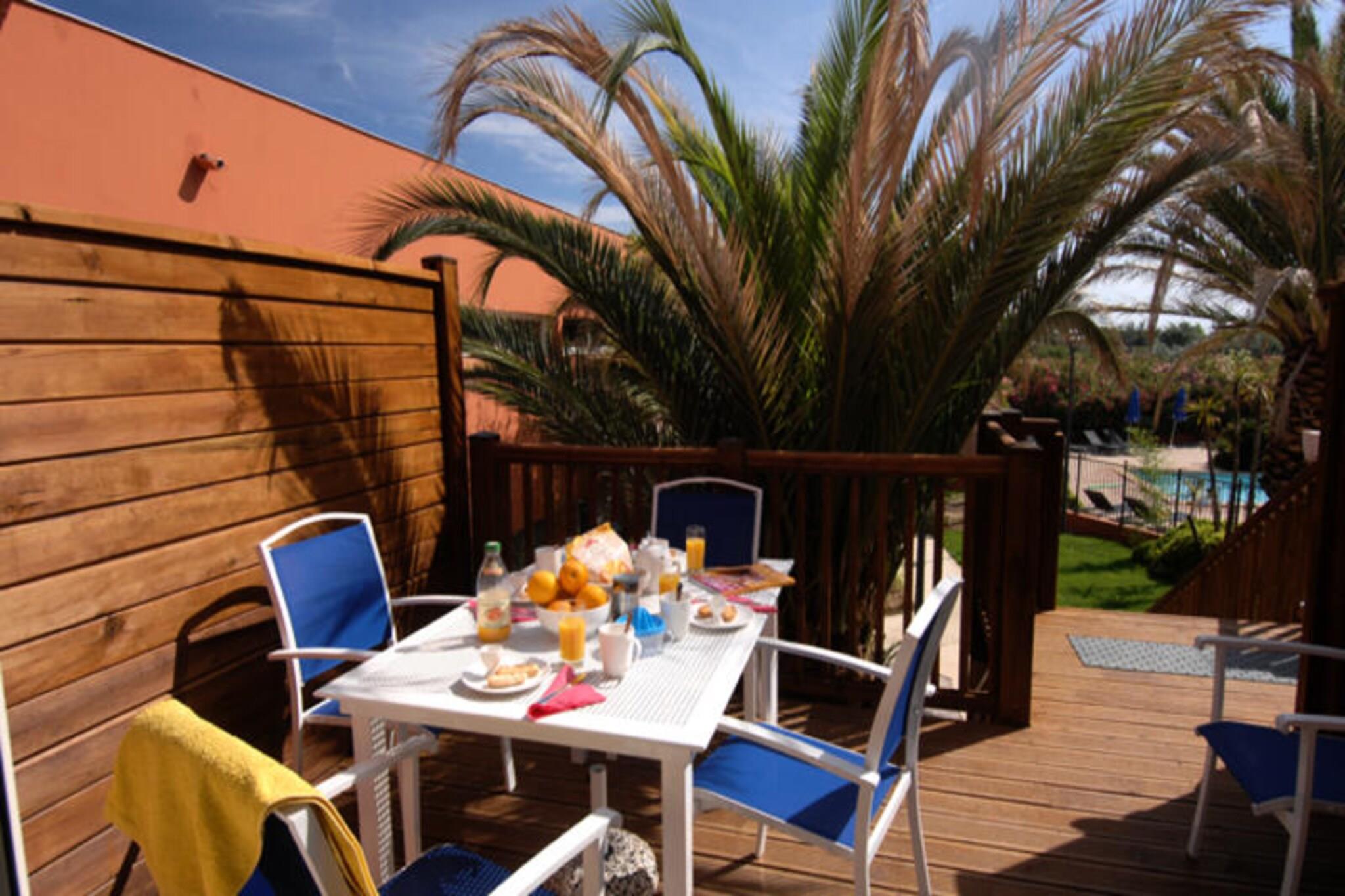 Beliggende i en smuk skovklædt park tilbyder denne rummelige 3-værelses hyttelejlighed et komfortabelt tilflugtssted for op til 8 personer. Stuen har en udtræksseng til to, mens soveværelserne har en dobbeltseng og to enkeltsenge. Kabinen har også to køjesenge til ekstra soveplads. Faciliteterne inkluderer gratis trådløs internetadgang overalt på overnatningsstedet, og kæledyr er velkomne mod et tillægsgebyr. Sengelinned og håndklæder er inkluderet, og der tilbydes også slutrengøring. En privat, udækket parkeringsplads er tilgængelig for et køretøj pr. lejlighed. Placeringen af ??lejligheden er ideel for dem, der ønsker at nyde både stranden og lokale attraktioner. Kun 400 meter fra stranden og en kort 5-minutters gåtur til havnen og butikkerne giver det nem adgang til en række kystaktiviteter. Badebyen Cap d'Agde er kendt for sine 14 km strande, hvilket gør den perfekt til familie- eller gruppeferier. I nærheden finder du en international golfbane, en marina og en international tennisklub, der giver masser af muligheder for sport og fritid. Lejligheden er fuldt udstyret til din bekvemmelighed, med et køkken med alle de nødvendige faciliteter til at tilberede måltider. Badeværelset og toilettet er adskilt, og lejligheden har også en terrasse eller have til udendørs afslapning. Faciliteterne på stedet omfatter en opvarmet udendørs swimmingpool med et soppebassin, et barområde og privat parkering.