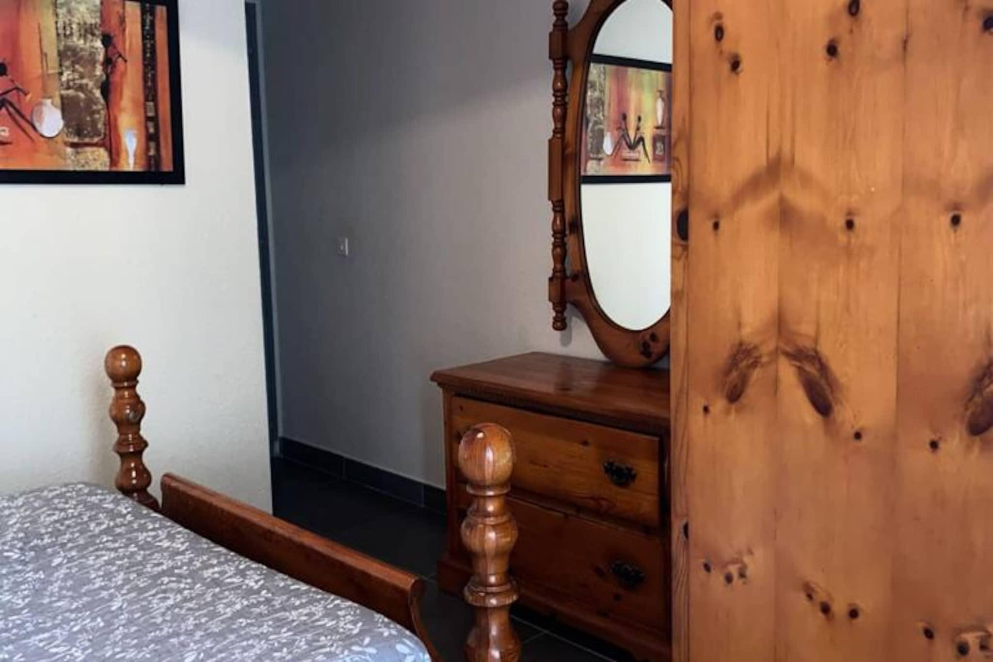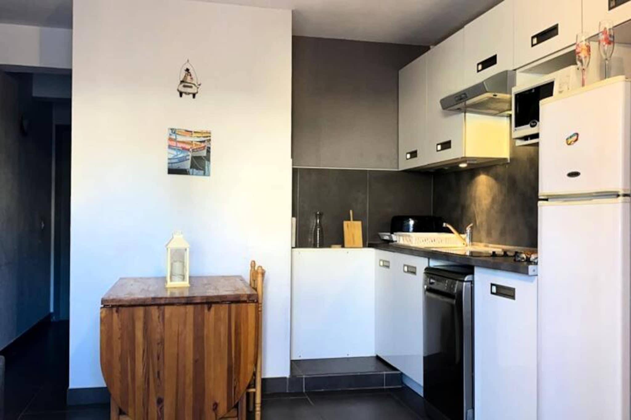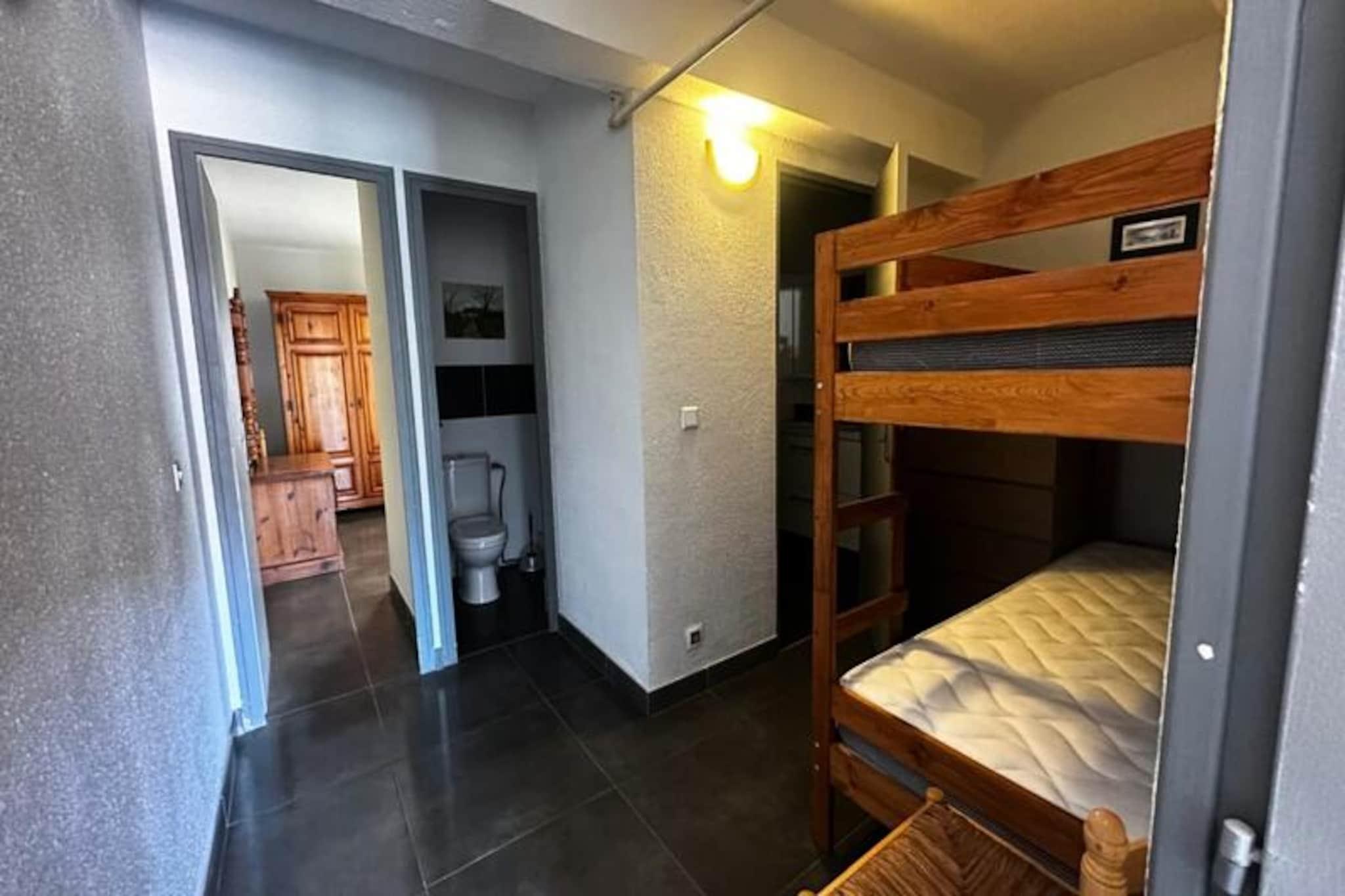 Væk dine sanser i det pulserende Môle-distrikt i Cap d'Agde, hvor denne rummelige og solrige lejlighed med et soveværelse tilbyder det perfekte tilflugtssted kun 250 meter fra Middelhavets gyldne sand. Uanset om du rejser med familie eller en lille gruppe venner, inviterer dette 42 m² store paradis dig til at slappe af og nyde en bilfri ferie i en af ??Frankrigs mest elskede kystdestinationer. Med sin nærhed til butikker, restauranter og den travle Allée de la Flânerie er hvert øjeblik her fyldt med charme og bekvemmelighed. Træd indenfor og oplev et gennemtænkt designet rum, der kombinerer komfort og funktionalitet. Opholds- og spisestuen, badet i naturligt lys, har en hyggelig sofa og tv, perfekt til afslapning efter en dag på stranden. Det fuldt udstyrede køkken med mikrobølgeovn, kogeplader, opvaskemaskine og kaffemaskine sikrer, at du nemt kan tilberede lækre måltider. Lejligheden har komfortabel plads til fire personer, med et roligt soveværelse på 11 m² med en dobbeltseng og rigelig opbevaringsplads, samt et separat soveområde med køjesenge, der er egnet til både børn og voksne. Højkvalitetsmadrasser af memory foam lover afslappende nætter for alle. Udenfor venter to dejlige terrasser på i alt 18 m², der tilbyder de ideelle rammer for udendørs spisning eller blot at nyde middelhavssolen. Udstyret med havemøbler og en elektrisk grill er disse udendørsområder perfekte til at skabe dyrebare ferieminder. Moderne bekvemmeligheder som aircondition og varme sikrer komfort året rundt, mens lejlighedens design med to aspekter forbedrer den luftige og indbydende atmosfære. Beliggende i hjertet af Cap d'Agde, placerer denne lejlighed dig i gåafstand fra havnecentret, Aqua Land og Leisure Island. Offentlige transportmuligheder og gratis gadeparkering gør det nemt at udforske regionen. Uanset om du er her for stranden, den pulserende lokale kultur eller den rolige kyststemning, er denne lejlighed din port til et uforglemmeligt ophold i Sydfrankrig.