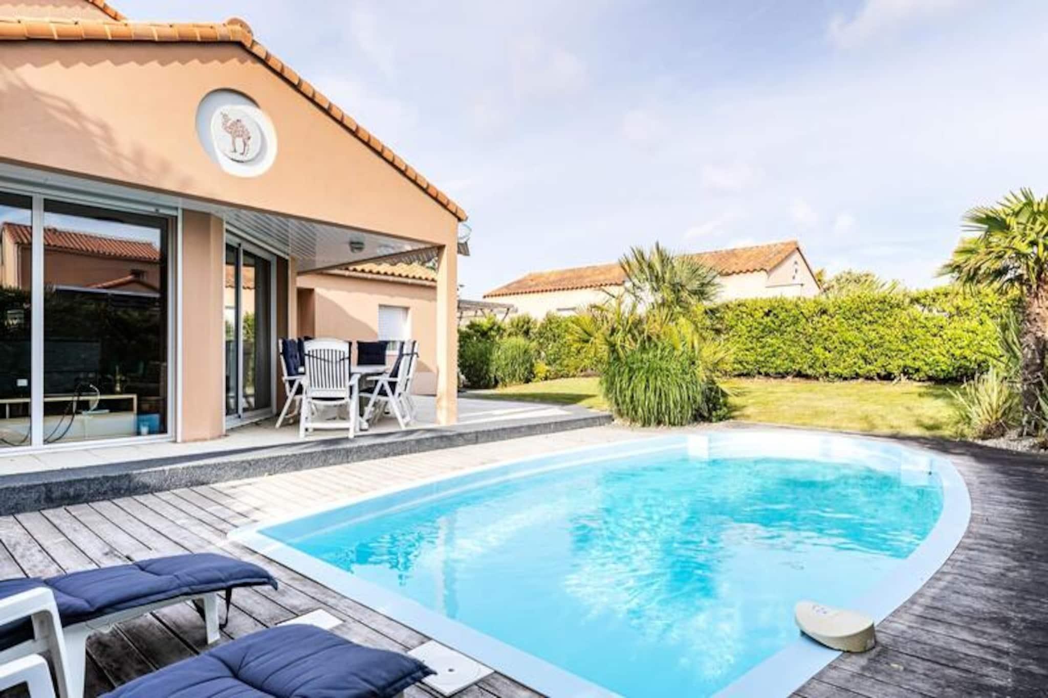 Oplev et hjørne af paradis ved Oasis les Jardins, en idyllisk ferieresidens beliggende kun 800 meter fra den storslåede Atlanterhavskyst og 2,5 km fra den første sandstrand, Plage de Tanchet. Kun 5 km fra det travle centrum af Les Sables d'Olonne tilbyder denne oase af ro dig den perfekte flugt fra hverdagens stress og jag. Forestil dig selv i en af ??de 162 luksusvillaer, rummelige og uafhængige, spredt ud over en frodig 13,5 hektar stor ejendom. Omgivet af frodige grønne områder inviterer dette område dig til at genoplade dine batterier i et bevaret naturligt miljø. For sports- og fritidsentusiaster tilbyder Oasis les Jardins en række aktiviteter for enhver smag. Udfordr dine venner på tennisbanerne eller bordtennis eller slap af ved en opvarmet swimmingpool. Nyd også en enestående kulinarisk oplevelse i stedets gourmetrestaurant, hvor en talentfuld kok vil glæde dig med raffinerede retter tilberedt med lokale kvalitetsprodukter. Bemærk venligst: obligatoriske gebyrer skal betales på stedet på ankomstdagen. Slutrengøring: EURO140 for Acacia-typen // EURO150 for Sophora-typen // EURO160 for Sequoia-typen Sengetøjssættet inklusive sengelinned + opredte senge ved ankomst + håndklæder + viskestykker: 27 EURO/person Møbleret stue Udstyret køkken 4 soveværelser med dobbeltseng eller enkeltsenge 2 badeværelser, toilet Terrasse Bemærk venligst: obligatoriske gebyrer skal betales på stedet på ankomstdagen. Slutrengøring: 150 EURO for Sophora-typen. Sengetøjssættet inklusive sengelinned + opredte senge ved ankomst + håndklæder + viskestykker: EURO27/person. Wifi-adgang - Gratis internet i villaerne Husdyr tilladt - 15€ pr dag pr dyr Depositum (ekstra) - 500 Slutrengøringsgebyr - obligatorisk: 140€ for Acacia typen / 160€ for Sophora typen / 160€ til Sequoia-typen Sengetøj - obligatorisk: sengetøj + opredte senge ved ankomst + håndklæder + viskestykker: 27 EURO/person Babyseng - 6€ per seng om dagen Opvarmet swimmingpool - hver villa har sin egen swimmingpool. Svømmebassinerne er opvarmet indtil 28/09 og er lukket efter denne dato. Turistskat (ekstra gebyr) - betales på stedet i henhold til gældende takst Opvarmet swimmingpool - inkluderet fra 27/04 til 30/09 (afhængigt af vejrforholdene) Slutrengøring - obligatorisk: EURO150