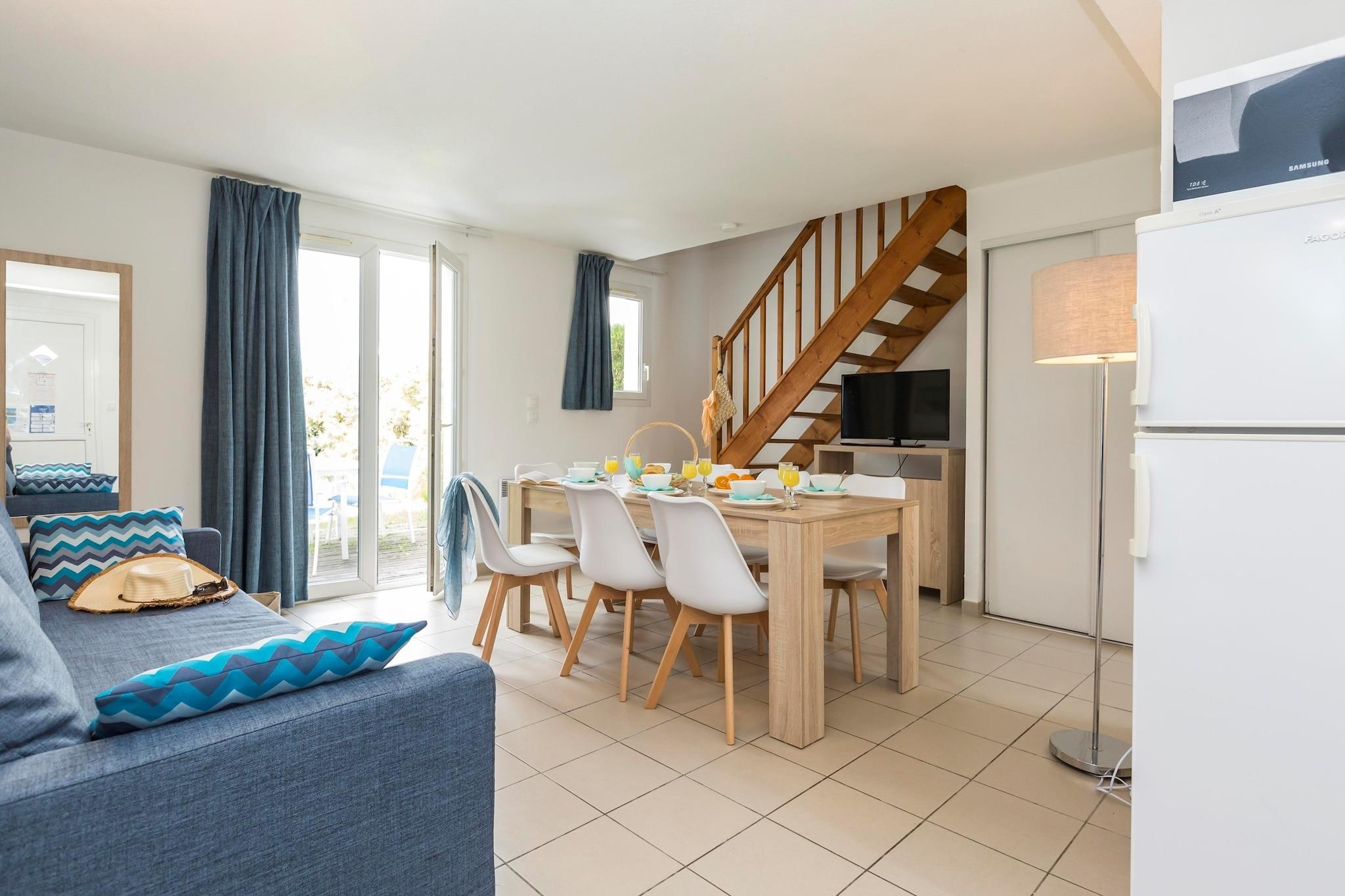 Farverig komfort på Atlanterhavskysten Gemt i Le Château d'Olérons pulserende hjerte tilbyder Le Village des Amareyeurs lyse feriehuse i rækkehuse designet i lokal stil og renoveret med moderne komfort. Uanset om I er et par, en familie eller en gruppe på op til 8, er der en plads der passer til – hver med et fuldt udstyret tekøkken, stilfulde møbler og en privat terrasse eller have til afslapning al fresco. Nogle boliger har endda en garage, og alle gæster kan nyde den store fælles swimmingpool og børnebassin, perfekt til solrige eftermiddage. Ø-eventyr for dig og dit kæledyr Kun få minutter fra sandstrande og cykelvenlige stier er denne fredelige landsby ideel til afslappet ophold på øen - med dit kæledyr på slæb! Hunde er velkomne på den nærliggende Plage de Gatseau, perfekt til lange vandreture langs kysten, eller tag til Forêt de Saint-Trojan for at vandre i skyggefulde skovområder. De lokale østersfarme og det ugentlige marked byder endda kæledyr i snor velkommen, så de kan være en del af ethvert minde - fra gåture ved solopgang til solnedgange ved havet. Fisk og skaldyr, Sun & Island Flavors Le Château d'Oléron er en kulinarisk fornøjelse. Prøv lige udslyngede østers og sprød hvidvin på La Courtine, eller nyd afslappede retter og udsigt over havnen på Le Relais des Salines. Uanset om du griller lokal fisk tilbage på din haveterrasse eller nyder et solnedgangsmåltid ved havnen, smager hver dag her som ferie.