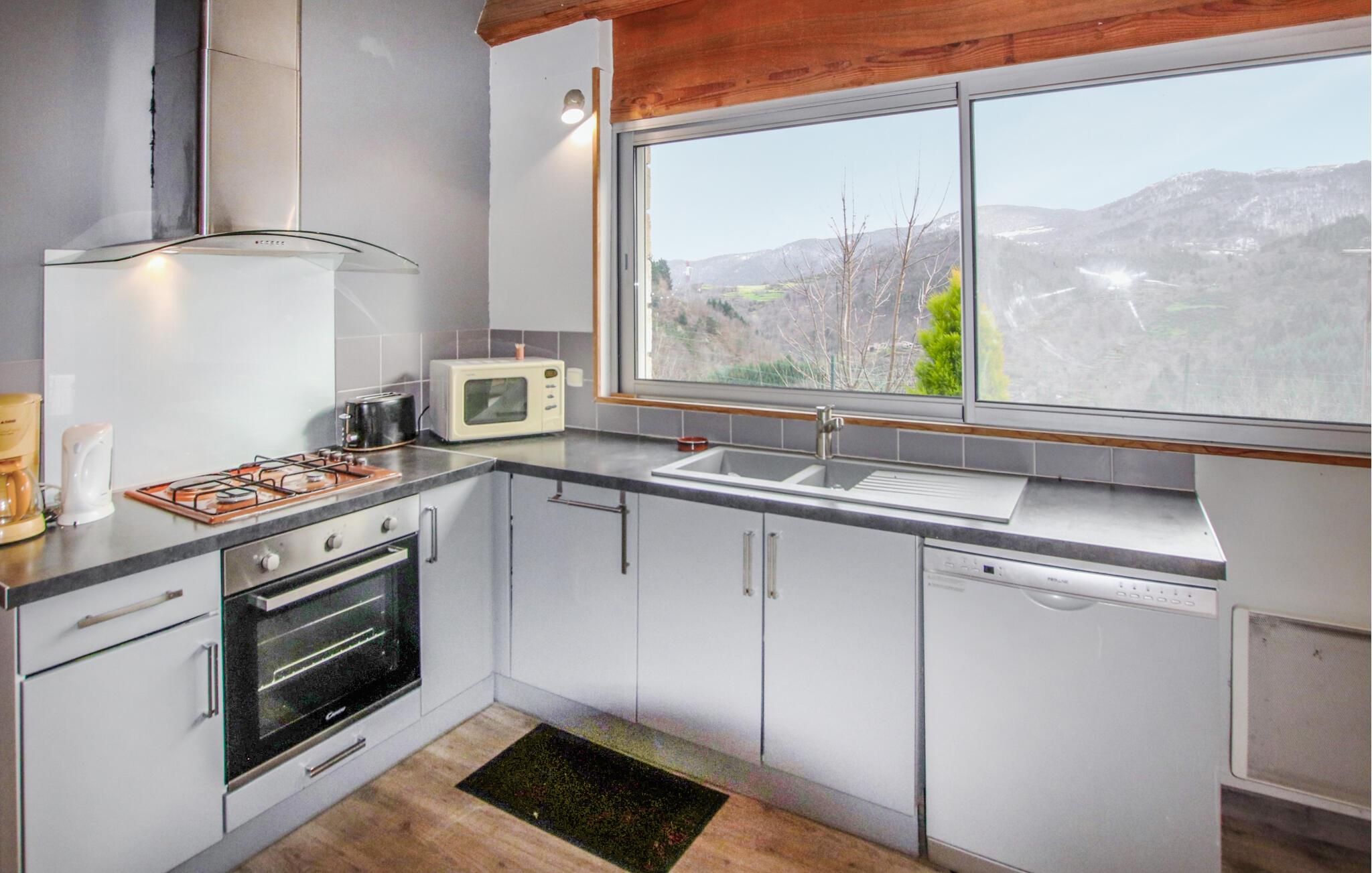 Beliggende i Ardèches maleriske bakkelandskab er dette feriehus den perfekte oase til at genoplade batterierne. Lad jer inspirere af den storslåede udsigt, mens I tilbereder måltider i det veludstyrede køkken, og nyd dem i den rustikke atmosfære i den åbne opholdsstue. Efter en dag fyldt med oplevelser kan I slappe af på den komfortable sofa, tænde op i pejsen og lade aftenen gå på hæld med et glas vin eller en spændende bog.