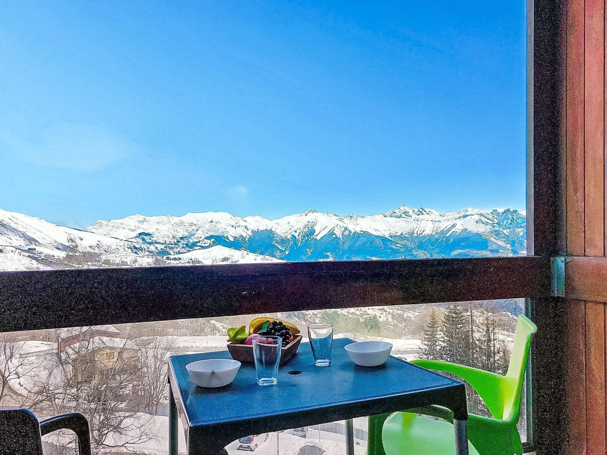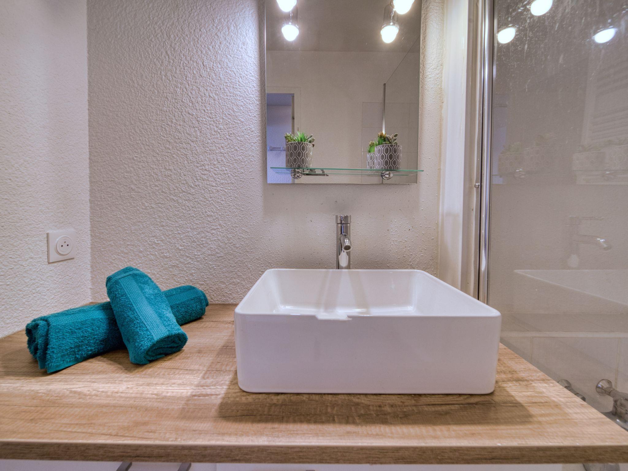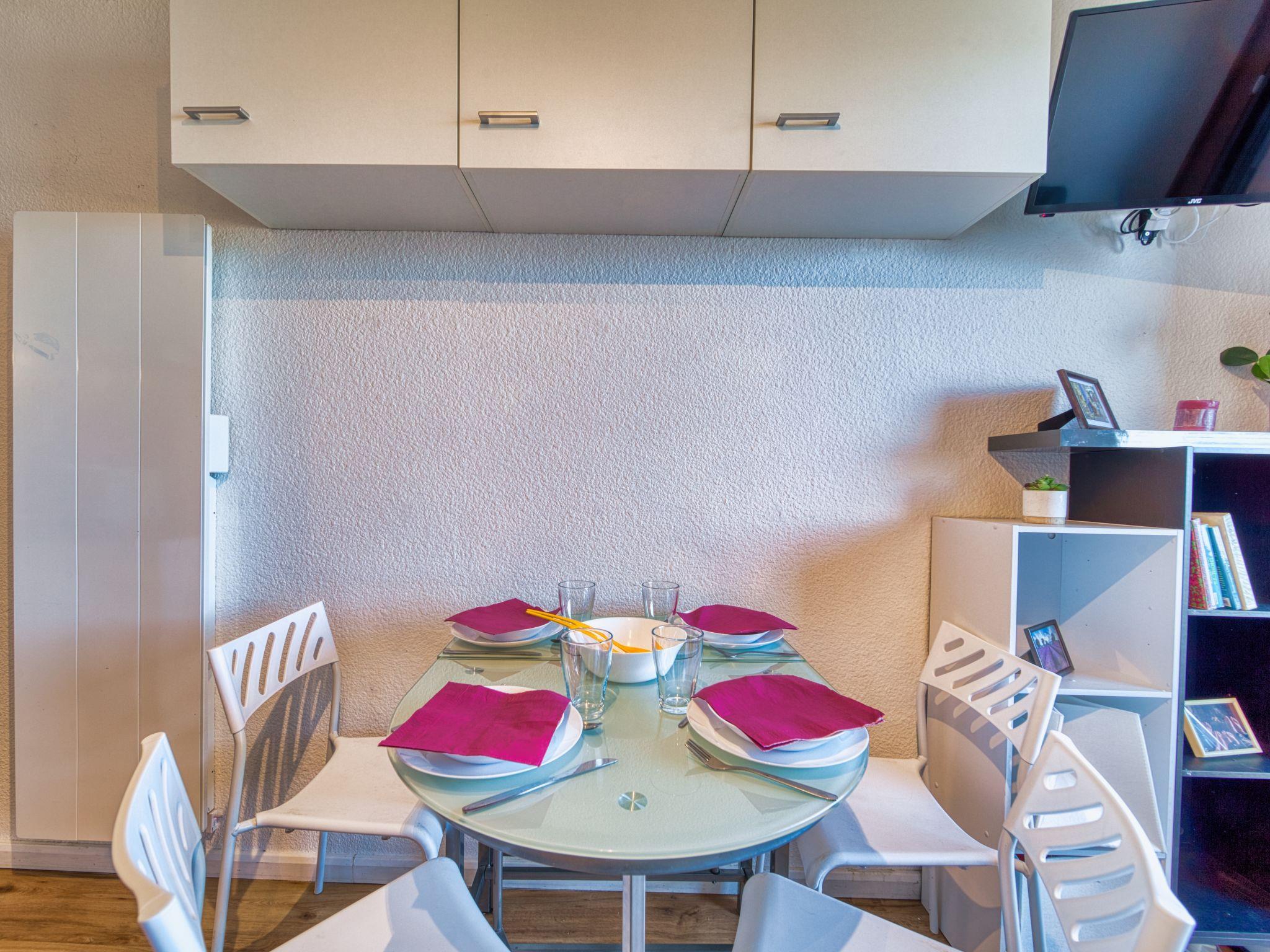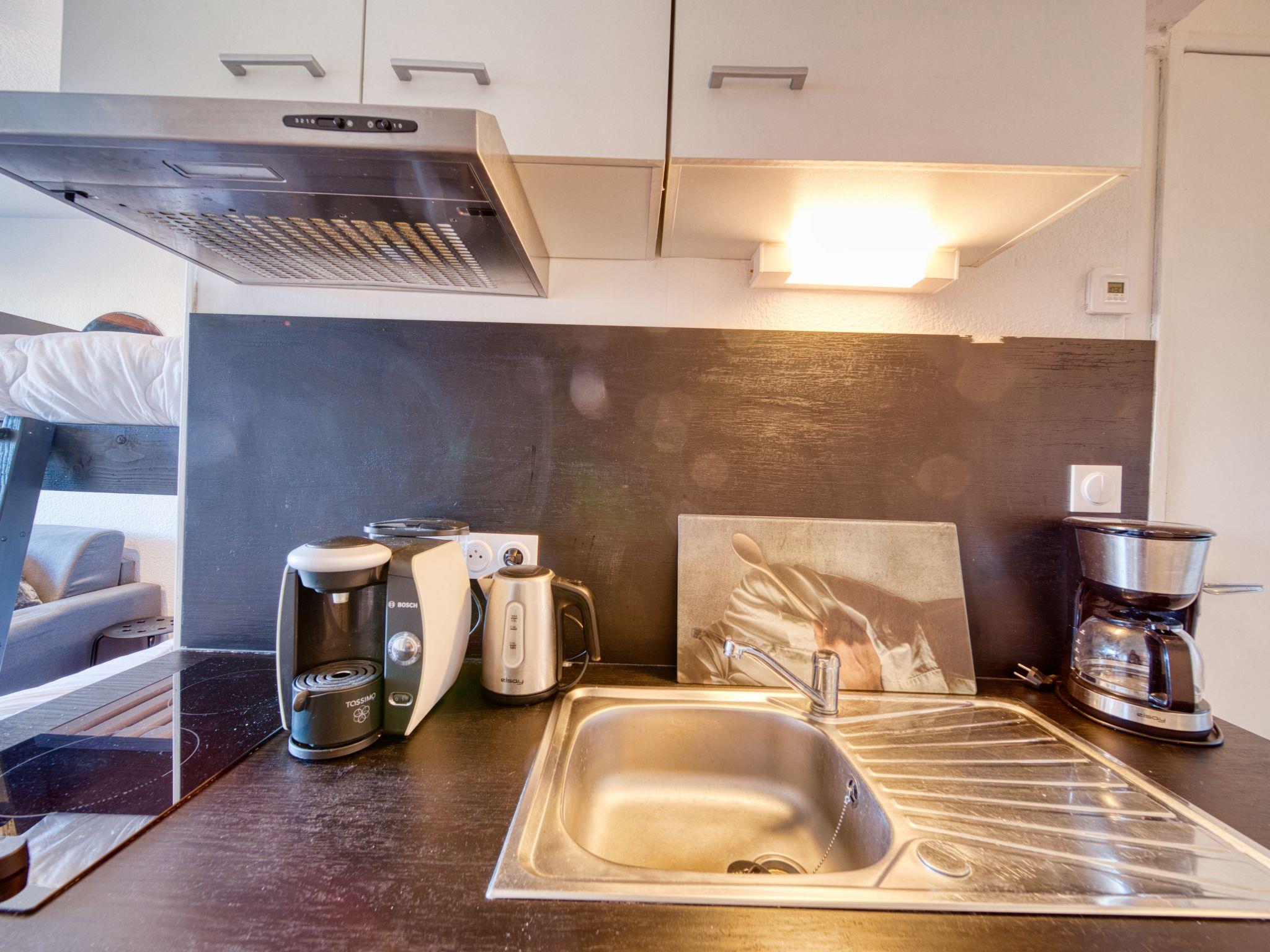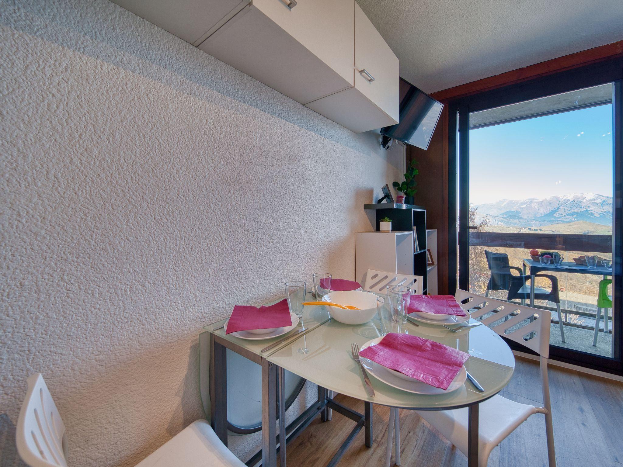 1-room studio 22 m2 on 4th floor, north facing position. Renovated: living/dining room with 1 x 2 bunk beds (140 cm, length 190 cm), TV (flat screen), electric shutters. Kitchenette in the entrance (dishwasher, 2 induction hot plates, freezer, electric coffee machine, Capsules for coffee machine (TASSIMO) extra, raclette grill). Bath/WC. Electric heating. Parquet floors. Small balcony 4 m2. Balcony furniture. View of the mountains and the valley. Facilities: Internet (WiFi, extra). Please note: non-smokers only. Smoke alarm. Offer by a private individual according to Art. 155, IV of CGI.