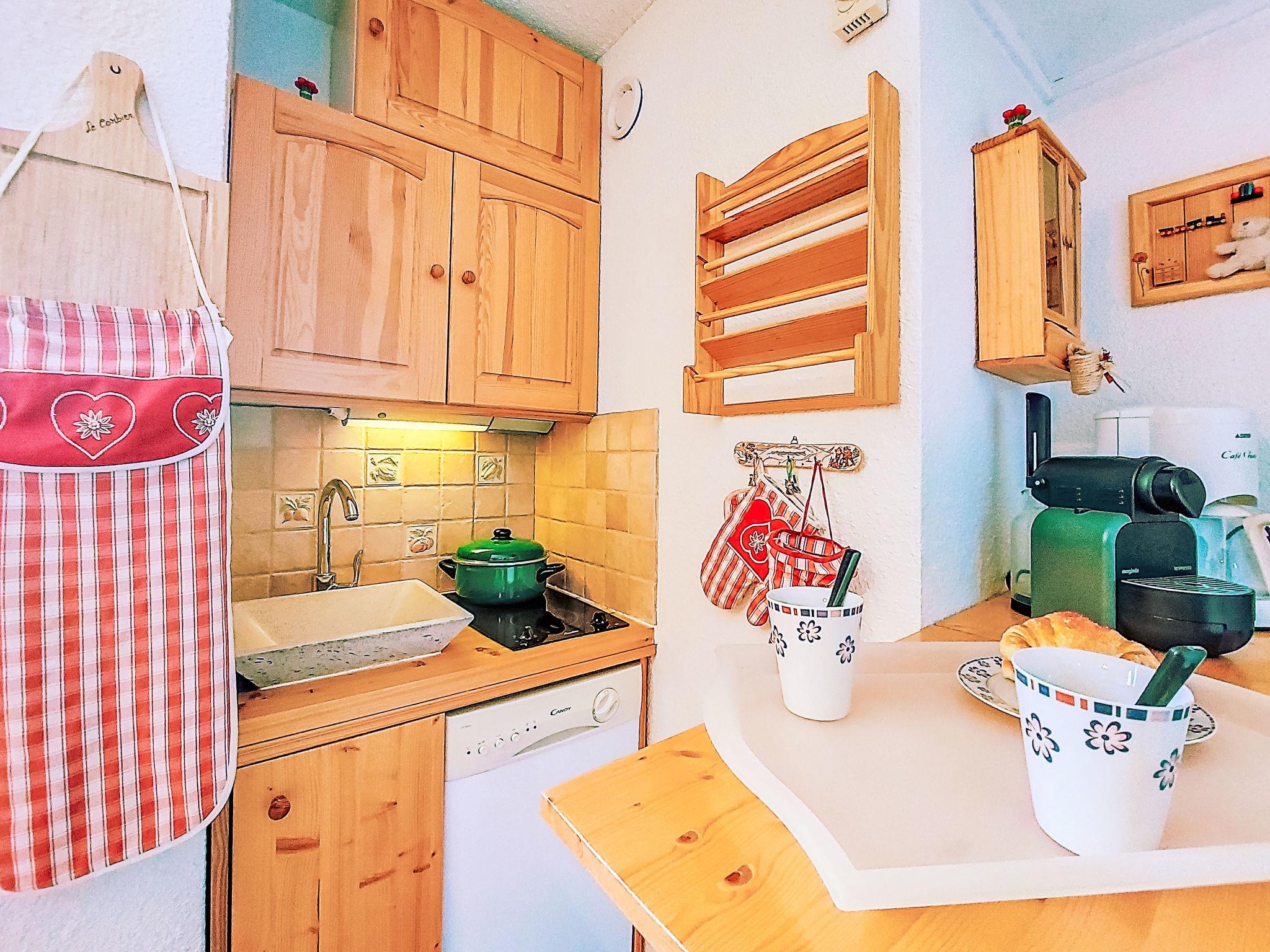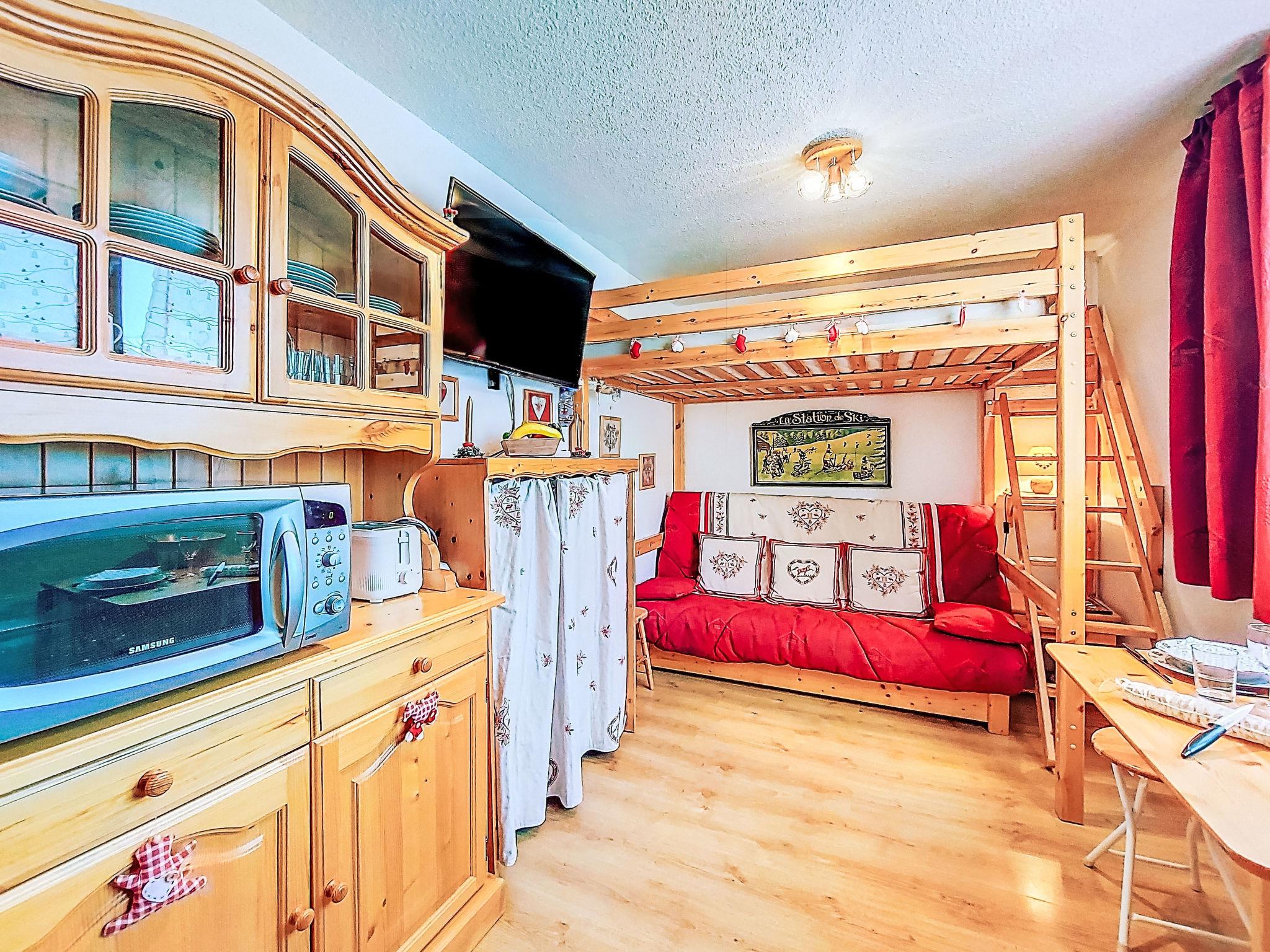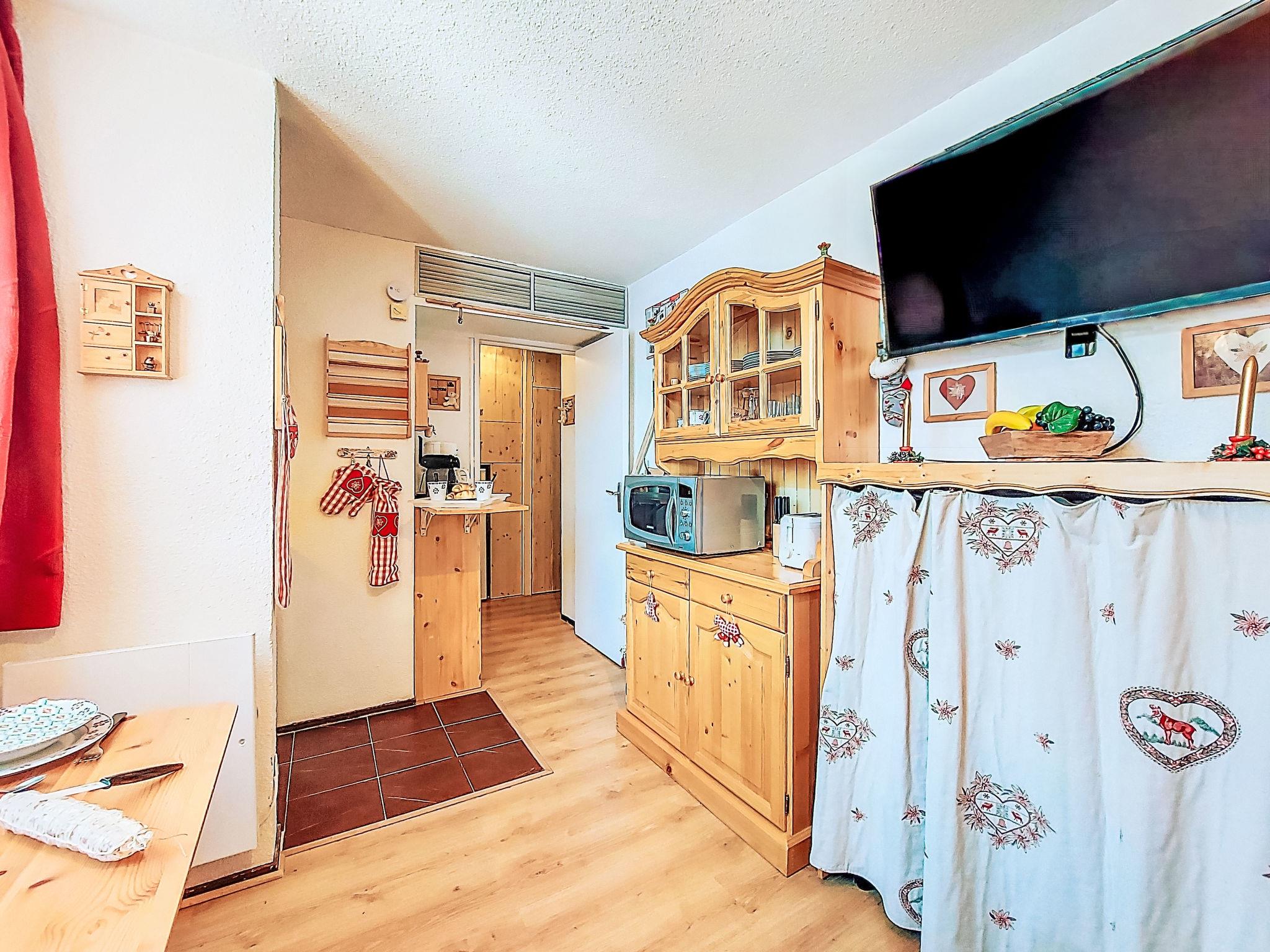 1-room studio 17 m2 on 9th floor, south facing position. Simple furnishings: living/sleeping room with 1 bed (140 cm, length 190 cm), TV (flat screen). Kitchenette (dishwasher, 2 ceramic glass hob hotplates, toaster, microwave, freezer, electric coffee machine, Capsules for coffee machine (Nespresso) extra). Bath/WC. Electric heating. View of the mountains and the ski run. Facilities: iron, hair dryer. Internet (WiFi, extra). Please note: non-smokers only. Smoke alarm. Offer by a private individual according to Art. 155, IV of CGI.