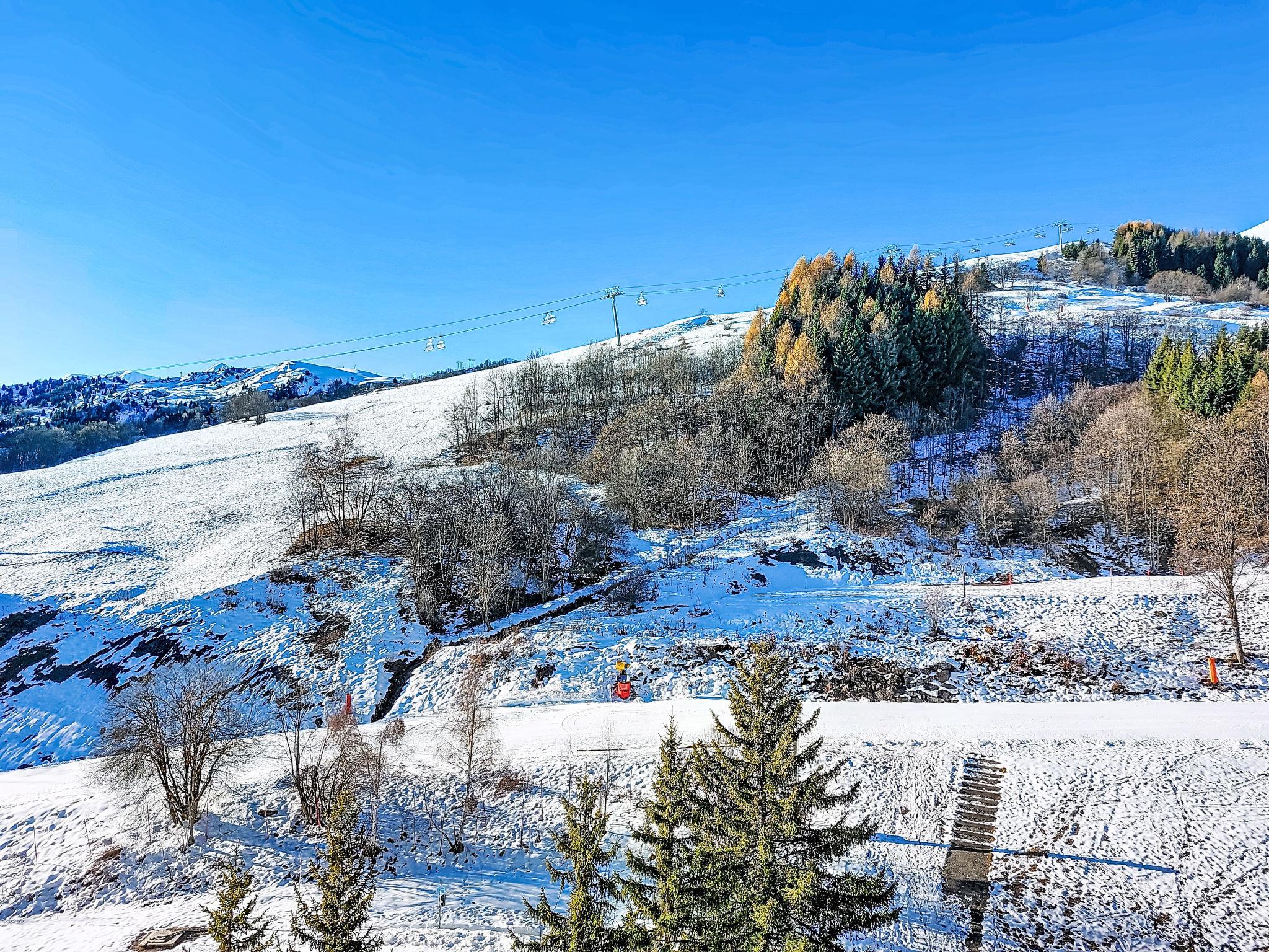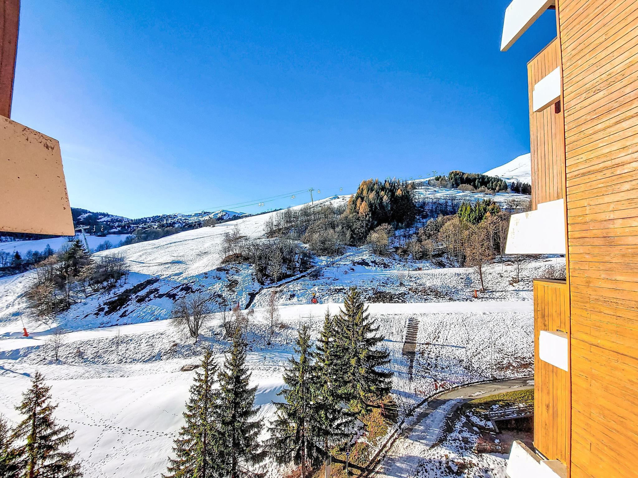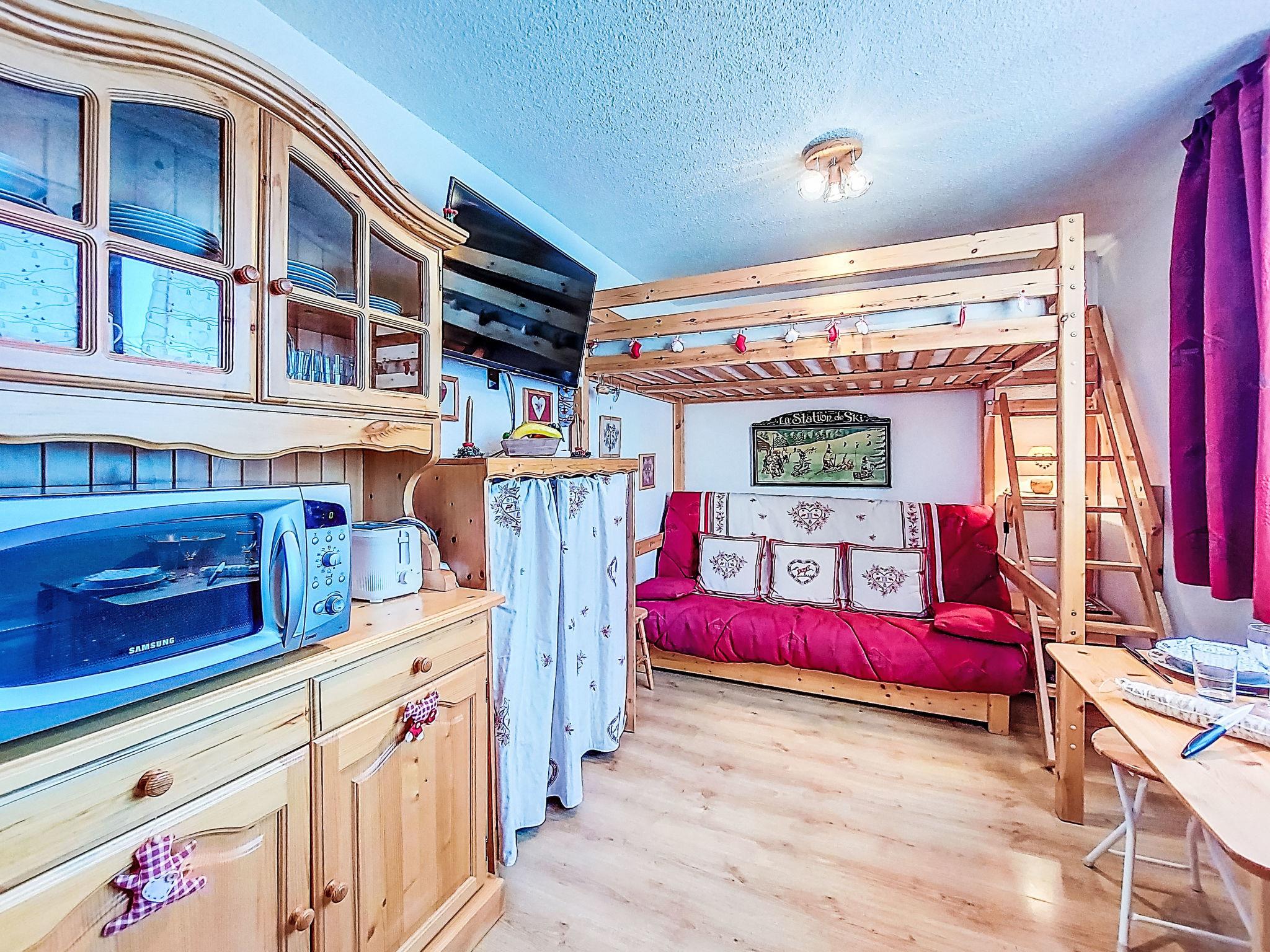 1-room studio 17 m2 on 9th floor, south facing position. Simple furnishings: living/sleeping room with 1 bed (140 cm, length 190 cm), TV (flat screen). Kitchenette (dishwasher, 2 ceramic glass hob hotplates, toaster, microwave, freezer, electric coffee machine, Capsules for coffee machine (Nespresso) extra). Bath/WC. Electric heating. View of the mountains and the ski run. Facilities: iron, hair dryer. Internet (WiFi, extra). Please note: non-smokers only. Smoke alarm. Offer by a private individual according to Art. 155, IV of CGI.