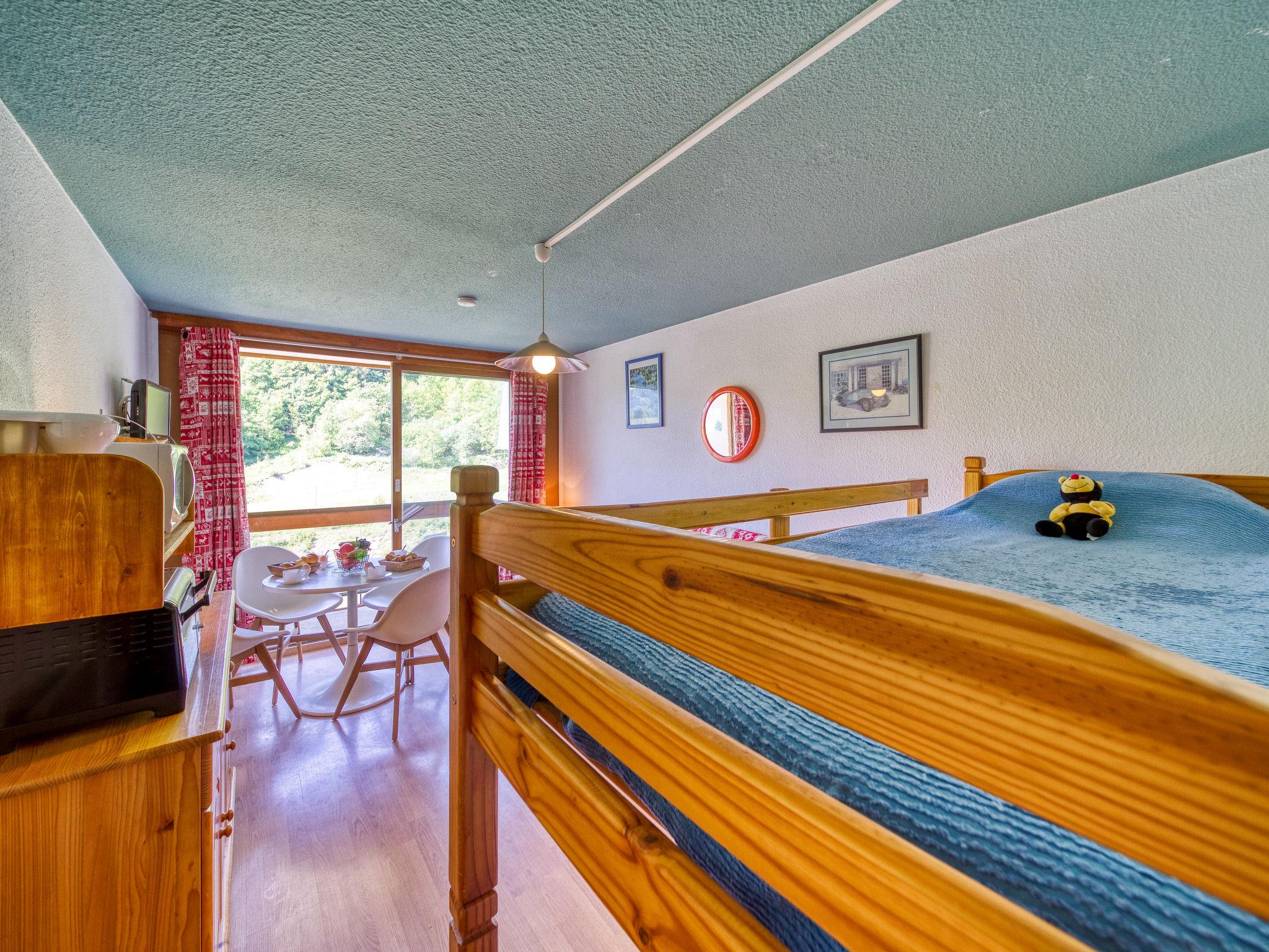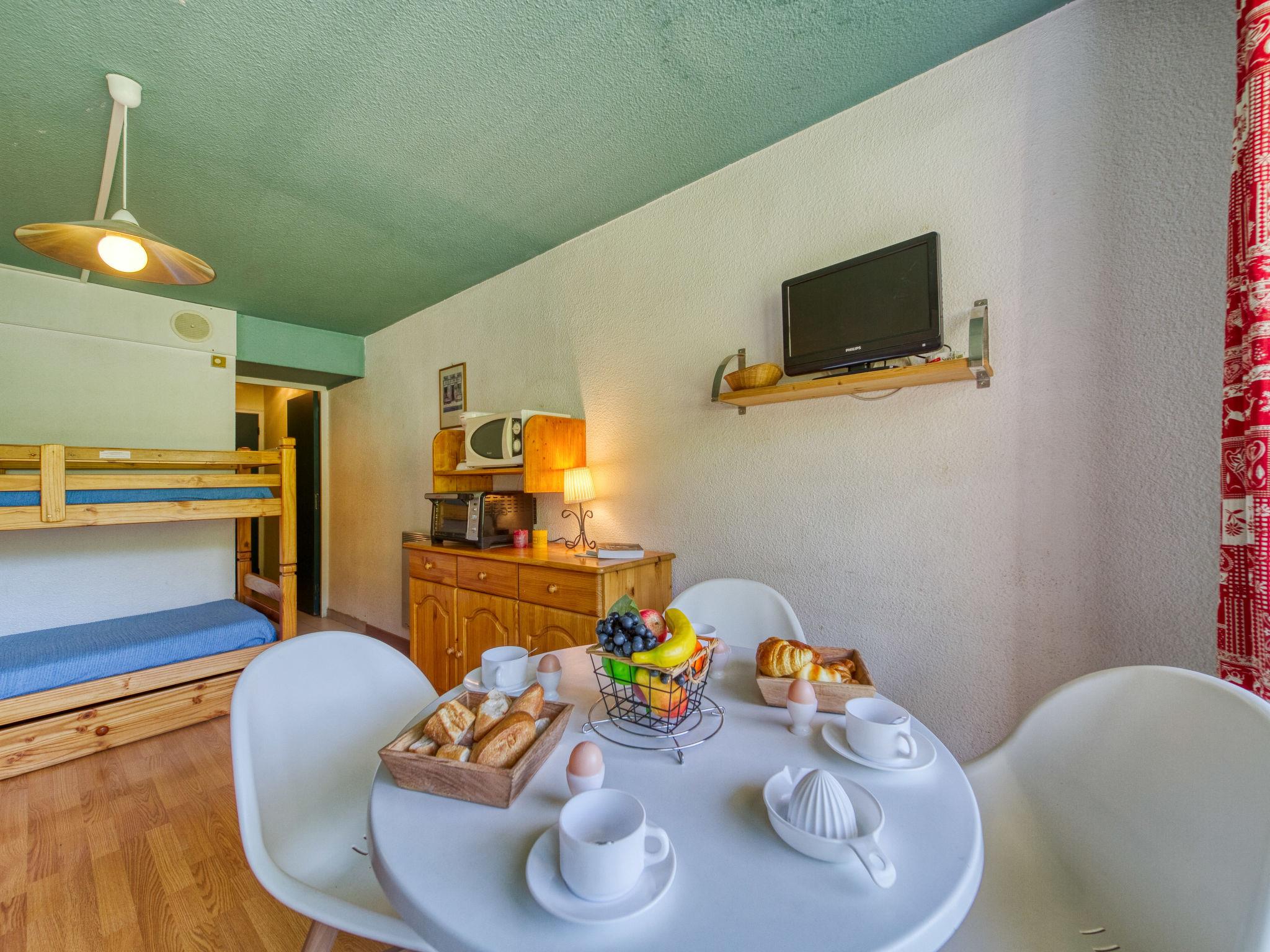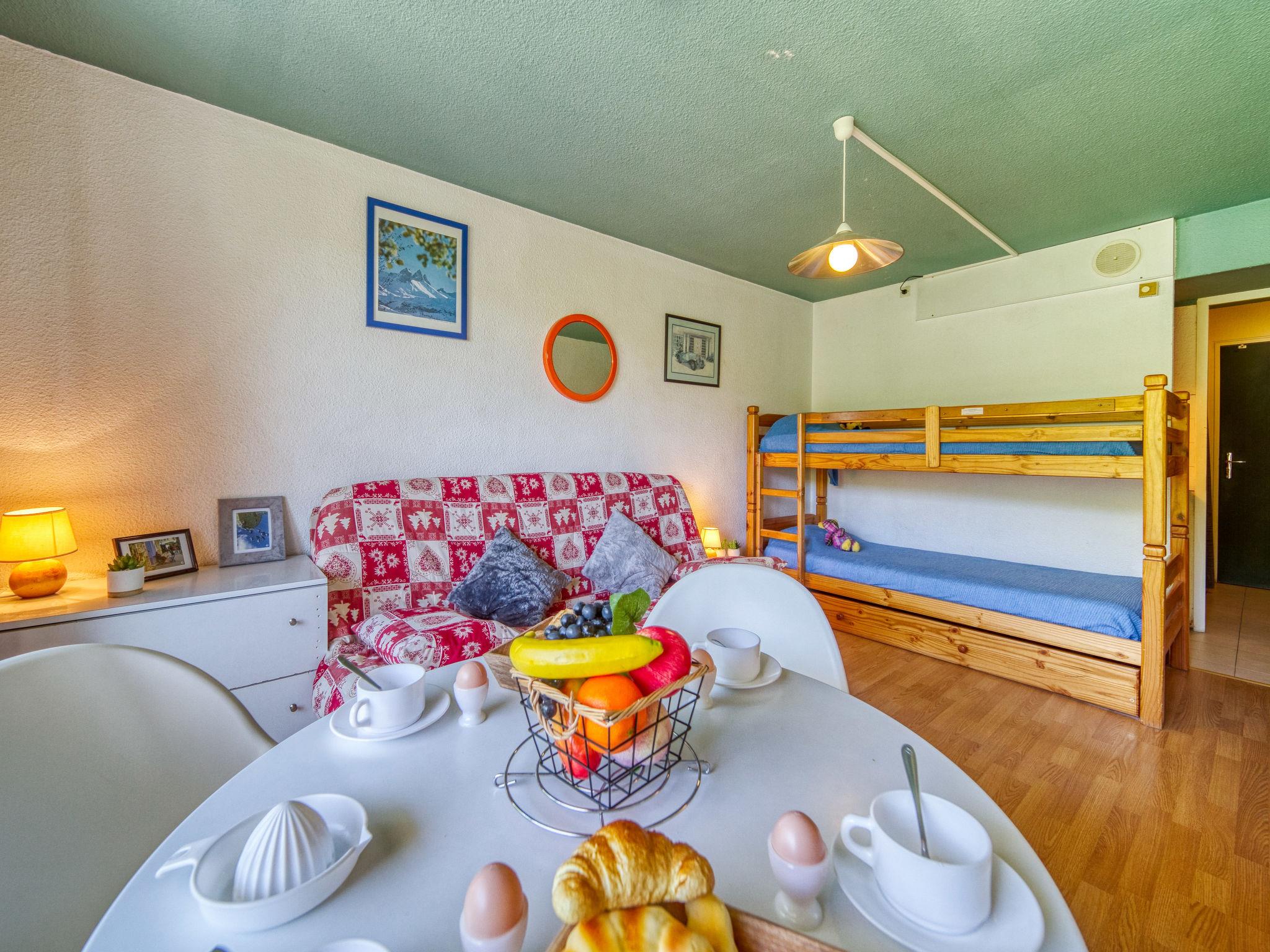 1-room studio 22 m2 on 9th floor, south facing position. Simple furnishings: living/dining room with 1 double sofabed (130 cm, length 190 cm), 1 x 2 bunk beds (90 cm, length 190 cm), TV (flat screen). Exit to the balcony, south facing position. Kitchenette in the entrance (2 hot plates, oven, microwave, electric coffee machine). Bath/WC. Electric heating. Parquet floors. Balcony 4 m2, south facing position. Deck chairs (1). View of the ski run. Facilities: Internet (WiFi, extra). Please note: maximum 1 pet/ dog allowed. Smoke alarm. Offer by a private individual according to Art. 155, IV of CGI.