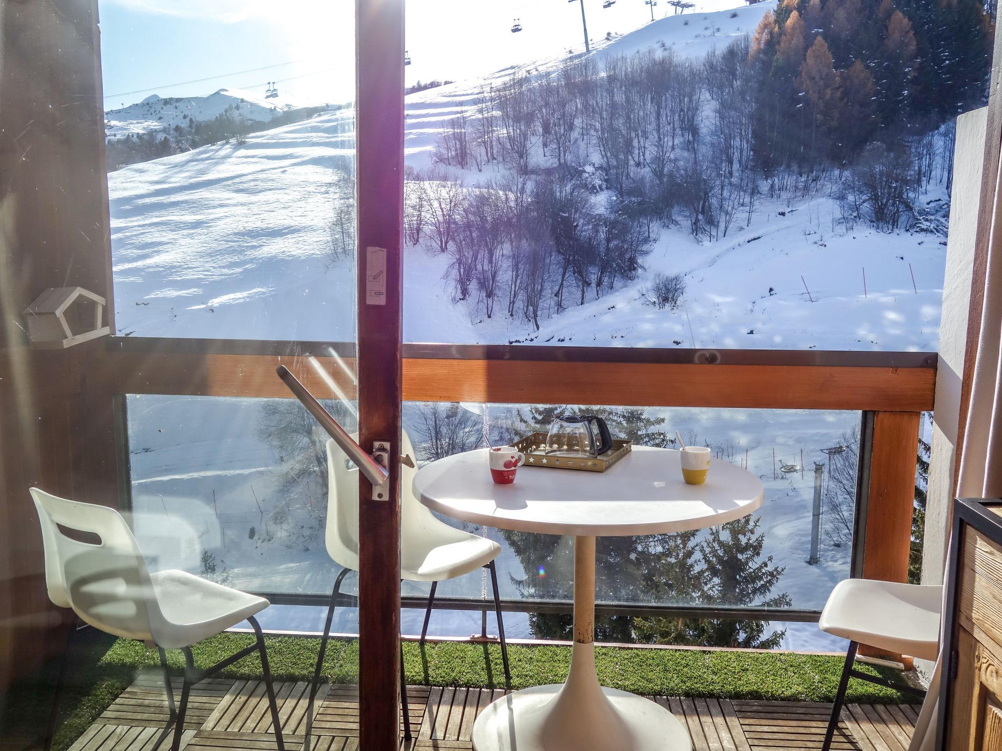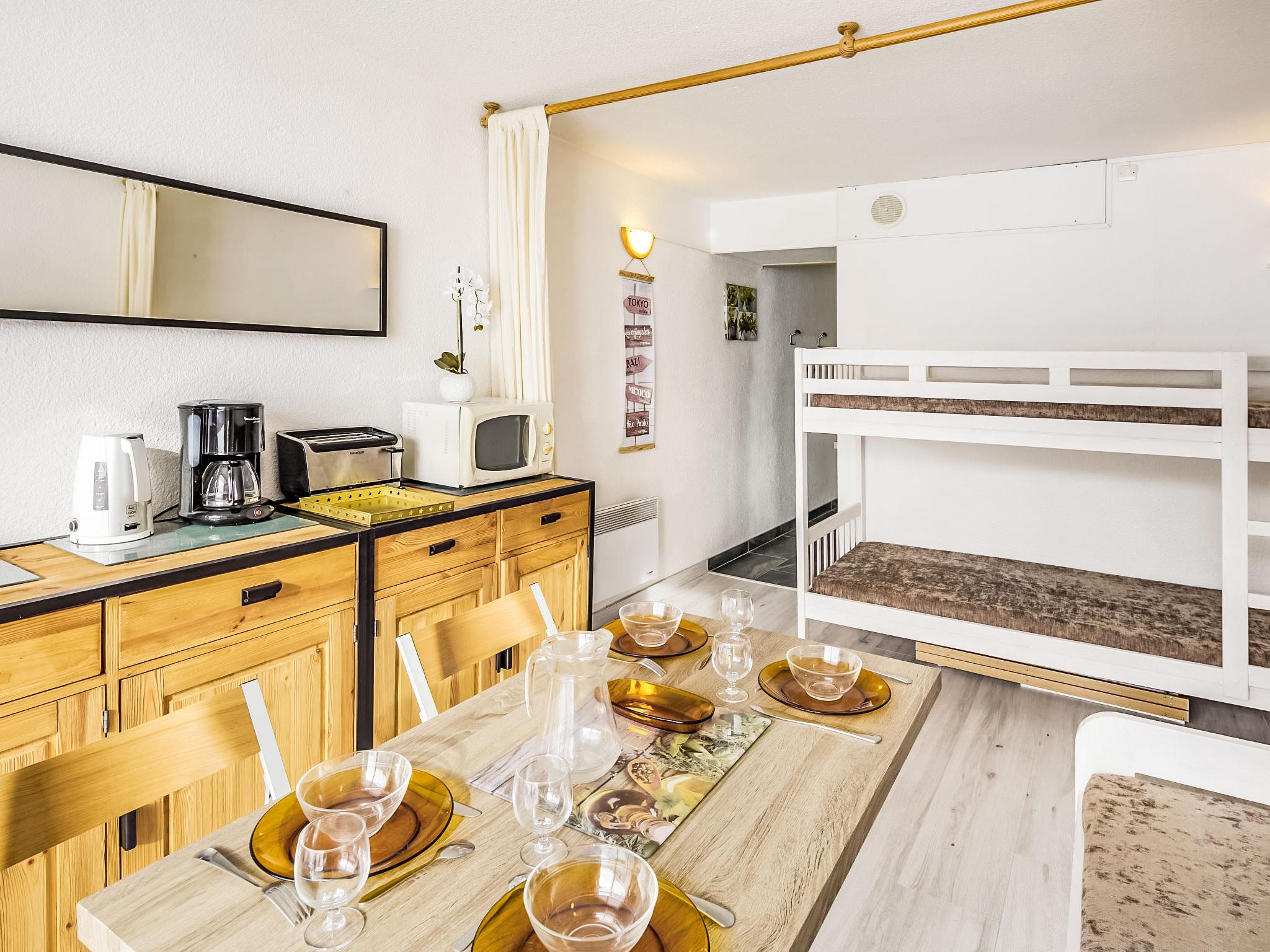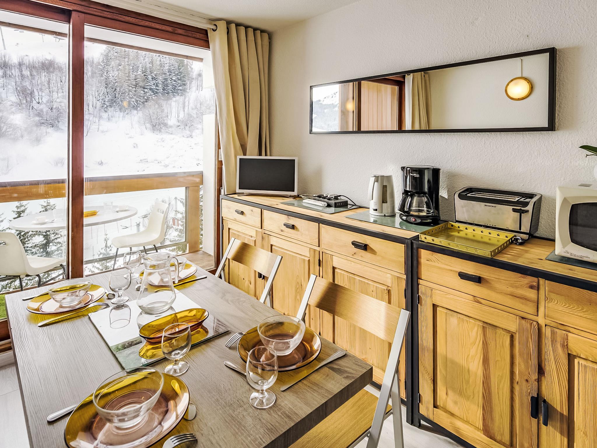 1-room studio 22 m2 on 8th floor. Beautiful furnishings: living/sleeping room with 1 x 2 bunk beds (90 cm, length 190 cm), 1 pull-out bed (2 pers. 2 x 80 cm, length 190 cm), TV (flat screen). Exit to the balcony, south facing position. Kitchenette in the entrance (oven, 2 ceramic glass hob hotplates, toaster, kettle, microwave, electric coffee machine, raclette grill, fondue Set (cheese)). Bath/WC. Electric heating. Parquet floors. Balcony 4 m2, south facing position. Balcony furniture. View of the ski run. Facilities: hair dryer. Internet (WiFi, extra). Please note: maximum 1 pet/ dog allowed. Smoke alarm. Offer by a private individual according to Art. 155, IV of CGI.
