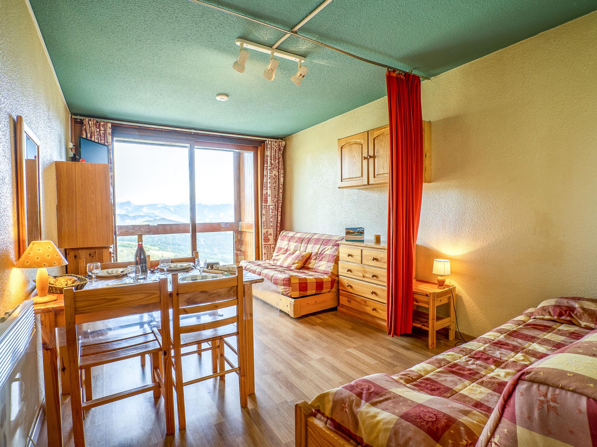 2-room apartment 44 m2 on 18th floor, north facing position. Simple furnishings: living/dining room with 1 double sofabed (130 cm, length 190 cm), 1 pull-out bed (2 x 80 cm, length 190 cm), TV (flat screen). Exit to the balcony. Living/dining room with 1 double sofabed (130 cm, length 190 cm), 1 pull-out bed (2 x 80 cm, length 190 cm), TV (flat screen). Exit to the balcony. Kitchenette in the entrance (2 hot plates, oven, dishwasher, microwave, freezer). 2 hip baths/WC. Electric heating. Parquet floors. 2 balconies 4 m2. View of the mountains and the valley. Facilities: washing machine. Internet (WiFi, extra). Please note: non-smokers only. Smoke alarm. The apartment consists of two twin studios, communicating . Offer by a private individual according to Art. 155, IV of CGI.