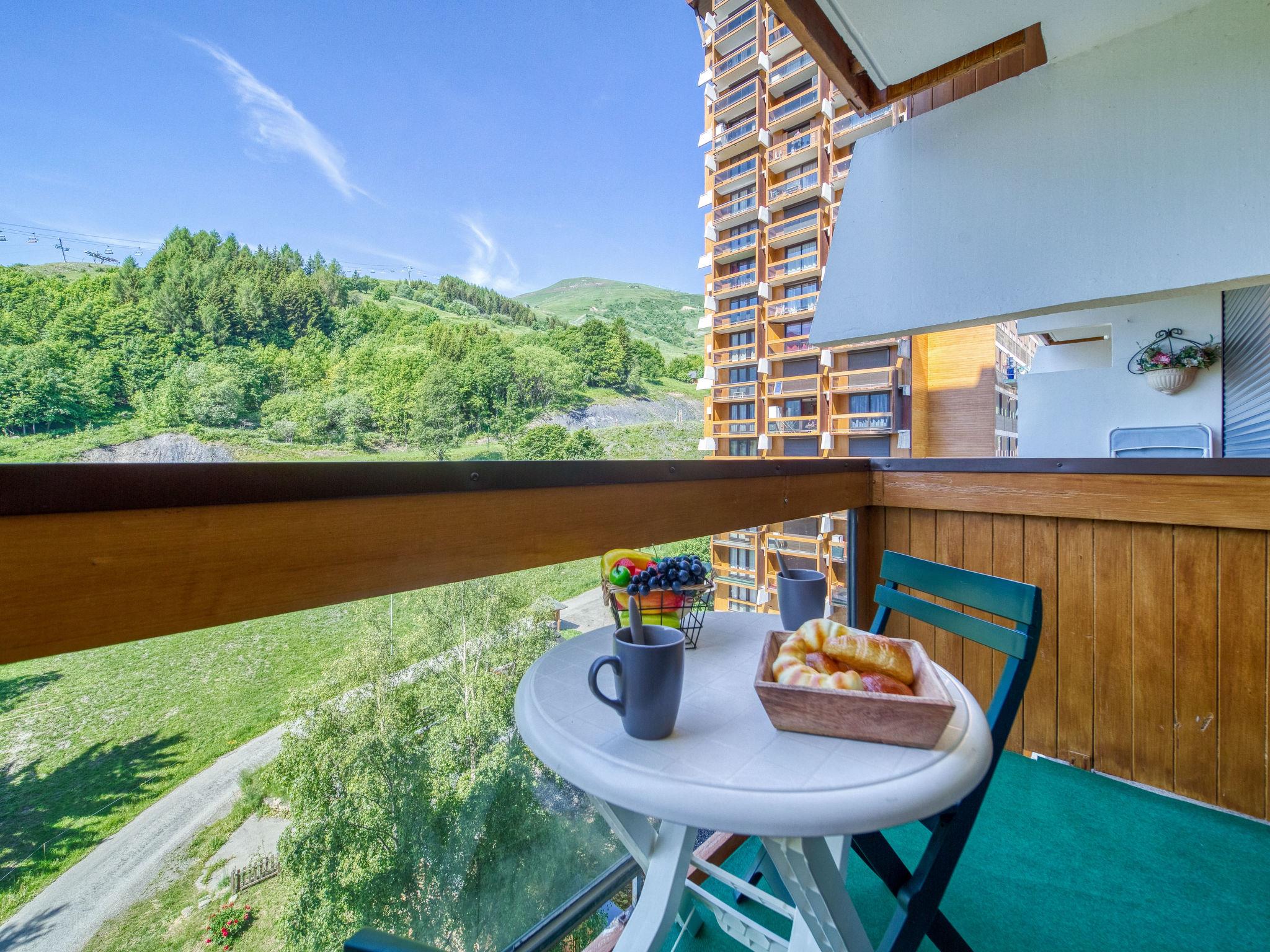 1-room studio 22 m2 on 7th floor, south facing position. Renovated in 2022, beautiful and modern furnishings: living/dining room with 2 double sofabeds (140 cm, length 190 cm), TV (flat screen). Exit to the balcony, south facing position. Kitchenette in the entrance (2 ceramic glass hob hotplates, toaster, kettle, microwave, electric coffee machine, Capsules for coffee machine (SENSEO) extra, raclette grill). Bath/WC. Electric heating. Parquet floors. Balcony 4 m2, south facing position. Balcony furniture. View of the ski run. Facilities: Internet (WiFi, extra). Please note: non-smokers only. Smoke alarm. Offer by a private individual according to Art. 155, IV of CGI.