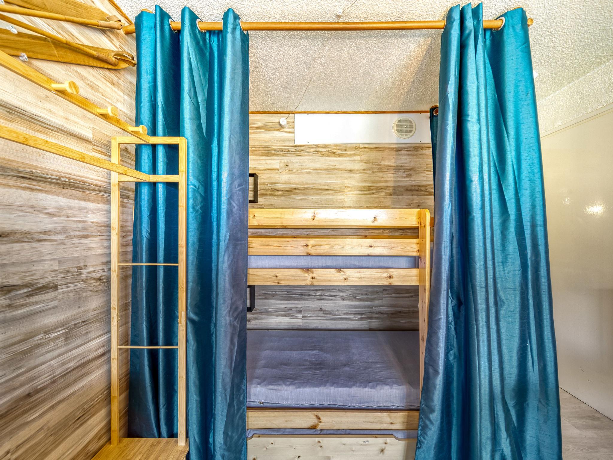 1-room studio 22 m2 on 17th floor, south facing position. Renovated, beautiful and modern furnishings: living/dining room with 1 double sofabed (140 cm, length 190 cm), 1 x 2 bunk beds (80 cm, length 190 cm), TV (flat screen), hi-fi system. Exit to the balcony, south facing position. Small kitchen in the entrance (mini-oven, oven, 2 ceramic glass hob hotplates, toaster, kettle, microwave, electric coffee machine). Shower/WC. Electric heating. Parquet floors. Balcony 4 m2, south facing position. Deck chairs (1). View of the ski run. Facilities: iron, hair dryer. Internet (WiFi, extra). Please note: non-smokers only. Smoke alarm. Offer by a private individual according to Art. 155, IV of CGI.