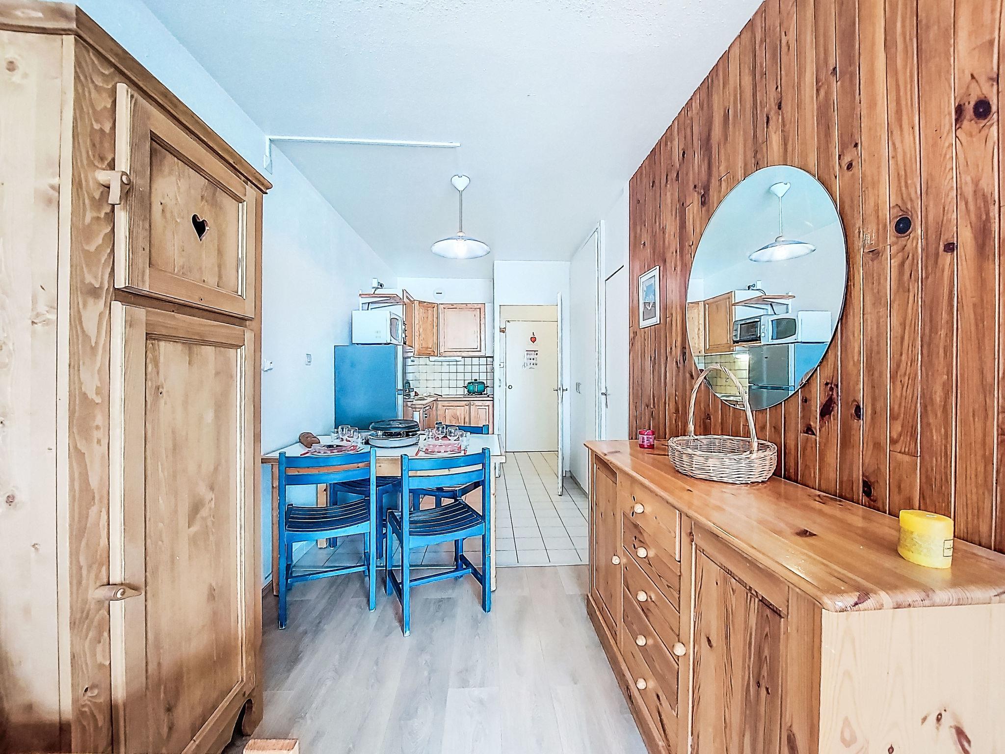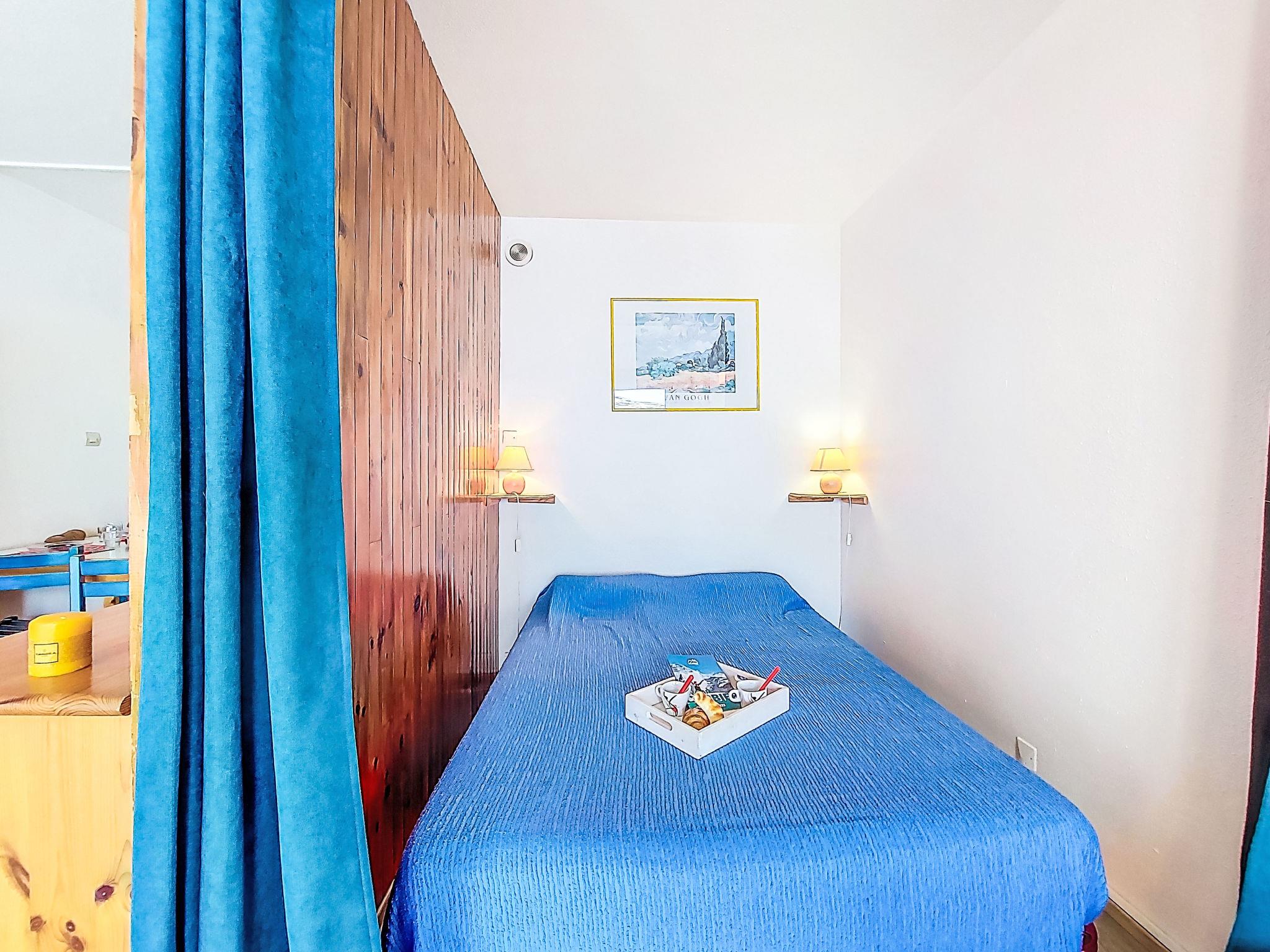 1-room studio 35 m2 on 1st floor, south facing position. Simple and practical furnishings: living/dining room with 2 beds (80 cm, length 190 cm), TV (flat screen). Exit to the balcony, south facing position. Alcove with curtain with 1 french bed (140 cm, length 190 cm). Kitchenette (2 hot plates, oven, dishwasher, toaster, microwave, electric coffee machine, raclette grill). Bathroom, sep. WC. Electric heating. Parquet floors. Balcony 8 m2, south facing position. Balcony furniture, deck chairs (2). View of the mountains and the ski run. Facilities: hair dryer. Internet (WiFi, extra). Please note: non-smokers only. Maximum 1 pet/ dog allowed. Smoke alarm. Instead of an enclosed bedroom, some sleeping areas are located in an open-plan area (gallery, alcove, etc.). Offer by a private individual according to Art. 155, IV of CGI.