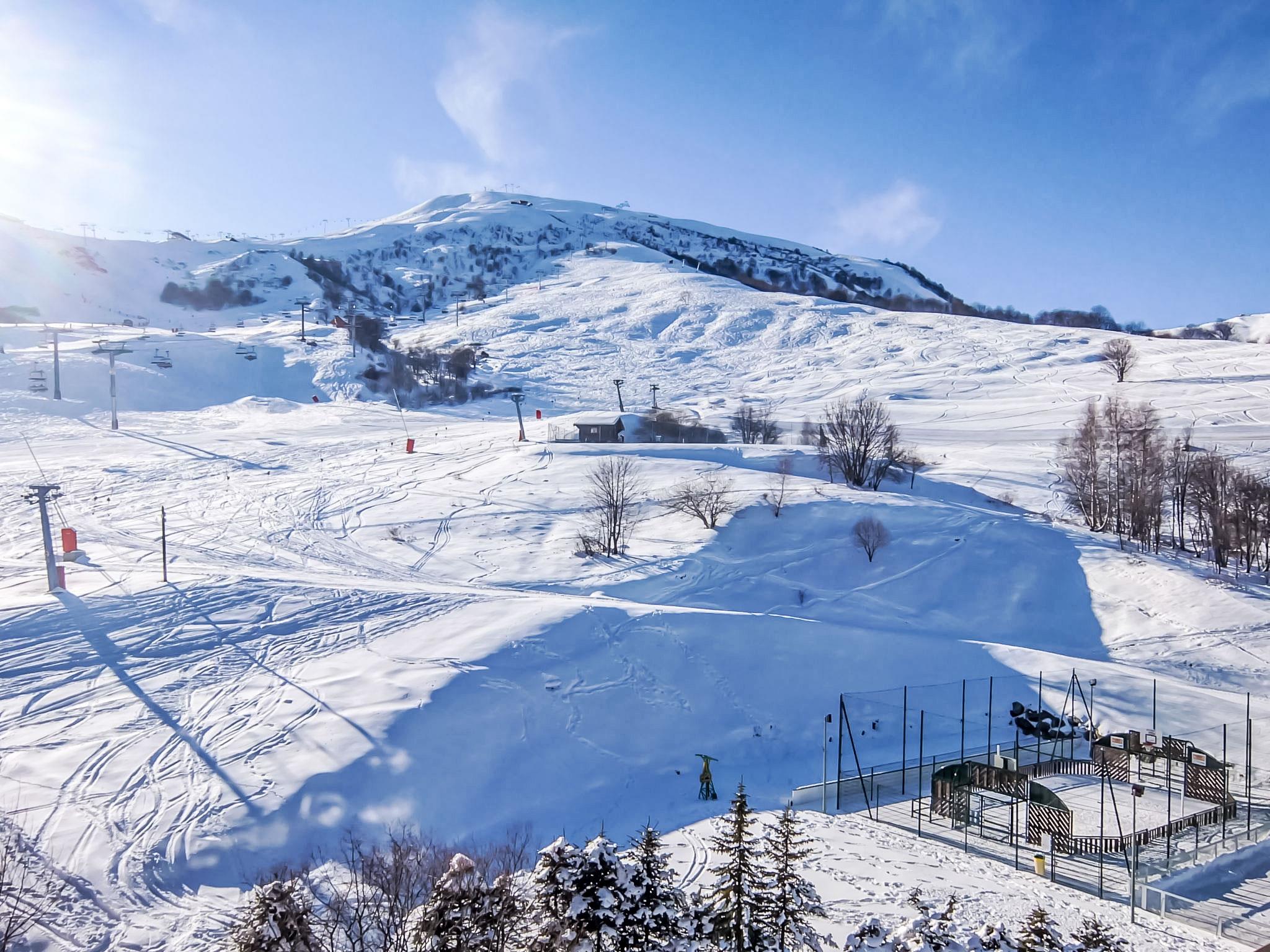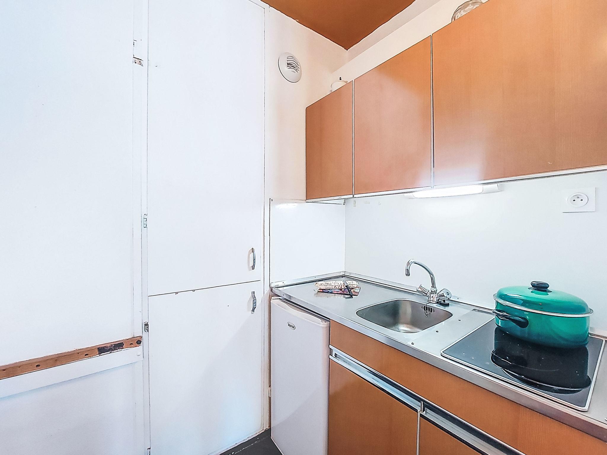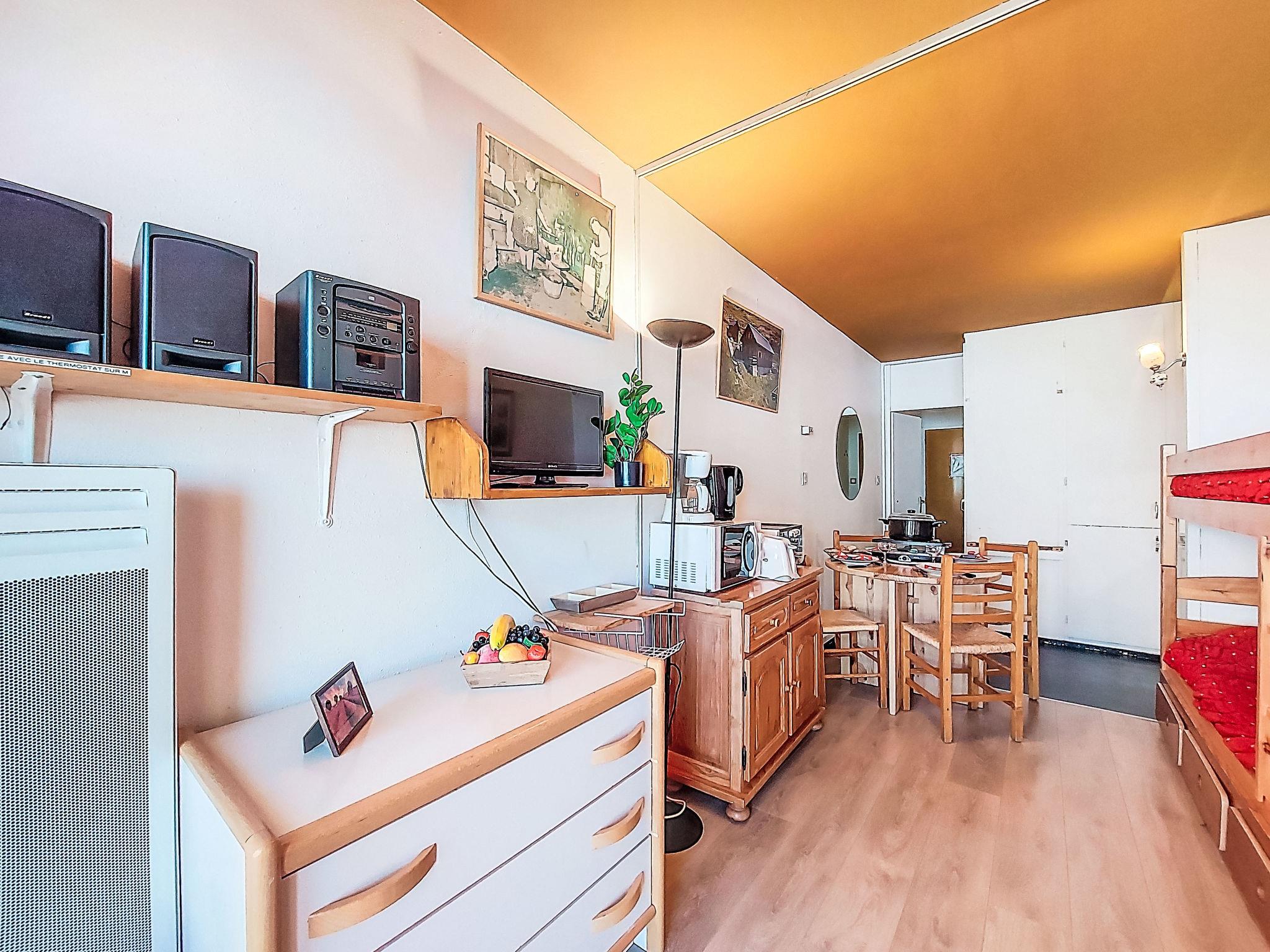 1-room studio 23 m2 on 5th floor, south facing position. Simple furnishings: living/sleeping room with 1 double sofabed (130 cm, length 190 cm), 1 x 2 bunk beds (80 cm, length 190 cm), TV (flat screen), hi-fi system. Exit to the balcony. Kitchenette (2 hot plates, mini-oven, toaster, kettle, microwave, electric coffee machine, raclette grill, fondue Set (cheese)). Bath/WC. Electric heating. Parquet floors. Balcony 5 m2, south facing position. Balcony furniture. Very beautiful view of the mountains and the ski run. Facilities: iron, hair dryer. Internet (WiFi, extra). Please note: non-smokers only. Smoke alarm. Offer by a private individual according to Art. 155, IV of CGI.