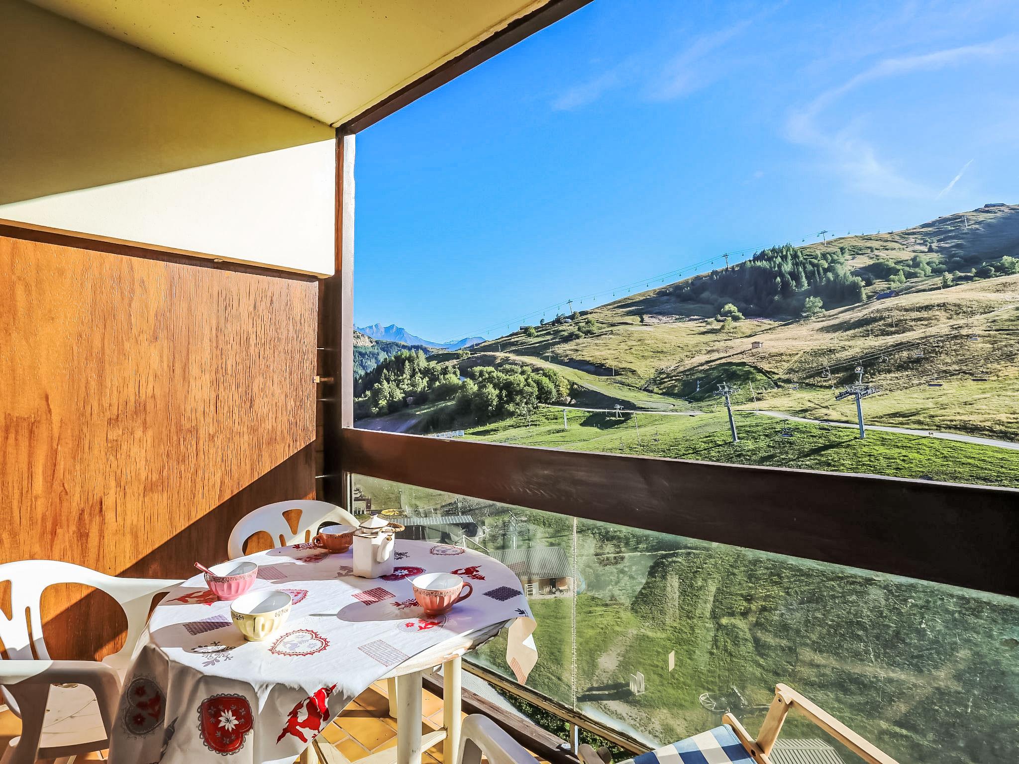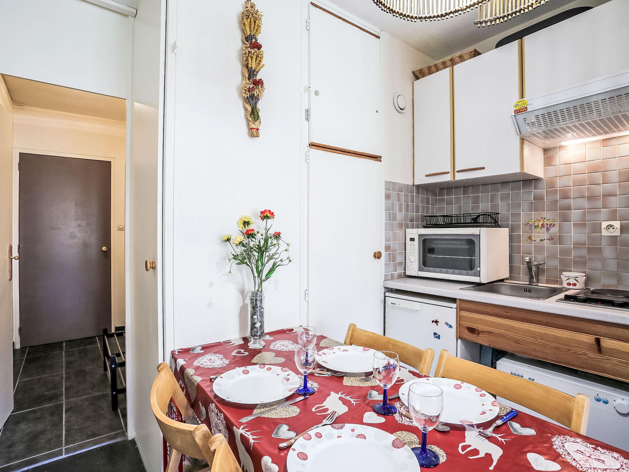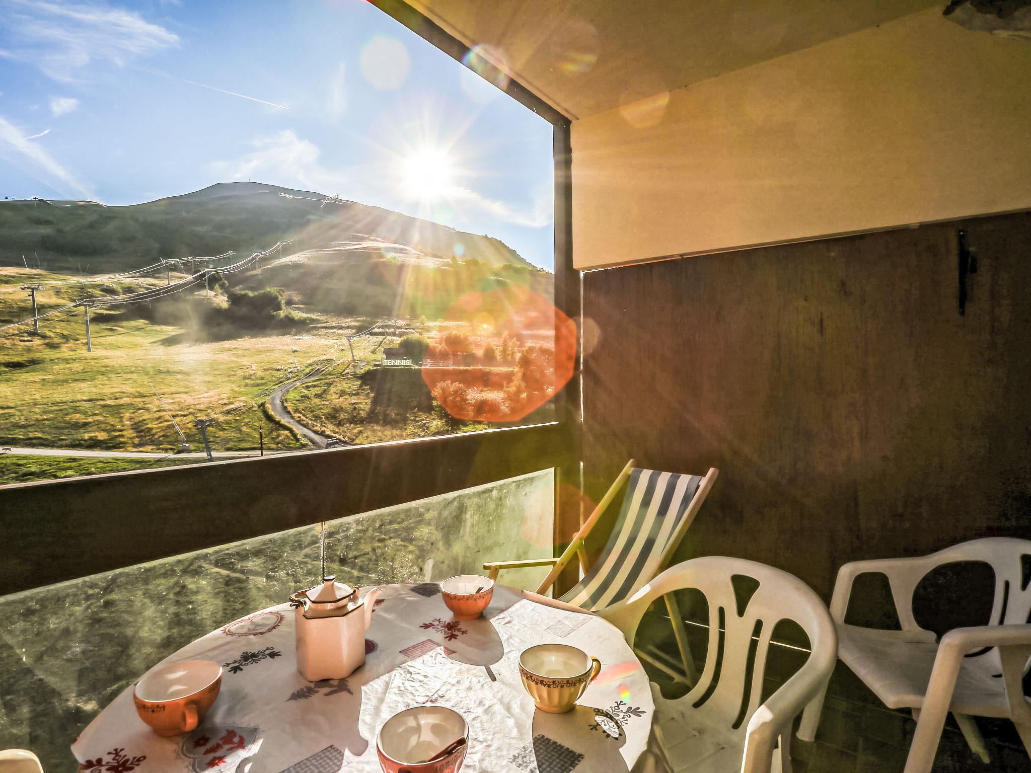 1-room studio 23 m2 on 9th floor, south facing position. Beautiful furnishings: living/sleeping room with 1 bed (90 cm, length 190 cm), 1 double sofabed (140 cm, length 190 cm), TV (flat screen), radio and DVD. Exit to the balcony. Kitchenette (2 hot plates, oven, dishwasher, toaster, kettle, microwave, electric coffee machine, raclette grill, fondue Set (cheese)). Bath/WC. Electric heating. Carpet. Balcony 5 m2, south facing position. Balcony furniture, deck chairs (1). Very beautiful view of the mountains and the ski run. Facilities: iron, hair dryer. Internet (WiFi, extra). Please note: non-smokers only. Smoke alarm. Offer by a private individual according to Art. 155, IV of CGI.