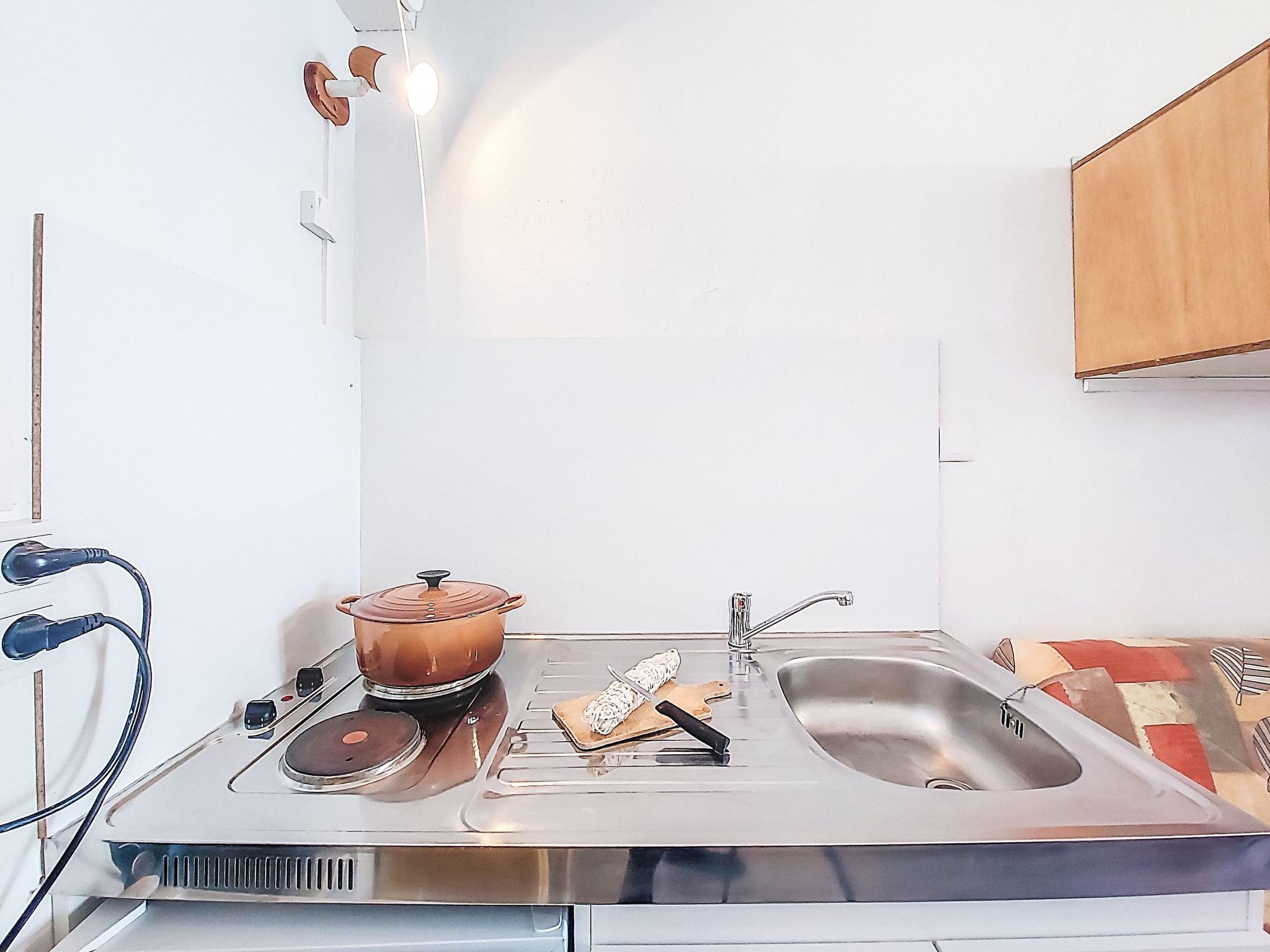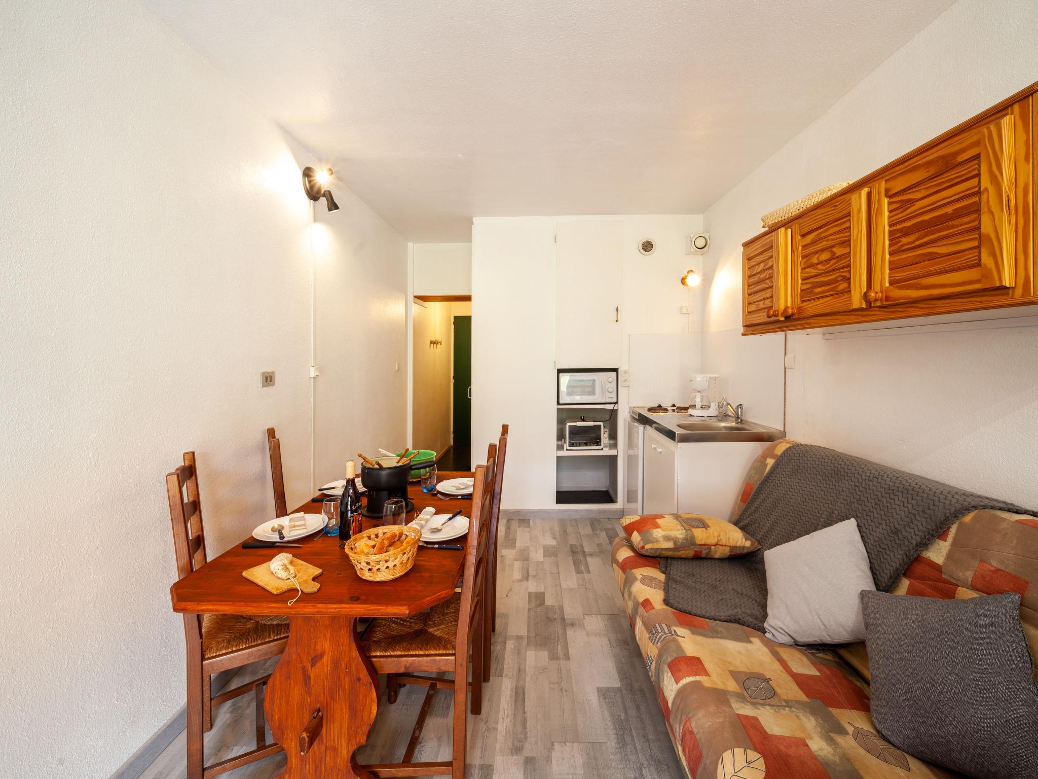 1-room studio 23 m2 on 4th floor, south facing position. Simple furnishings: living/sleeping room with 1 double sofabed (130 cm, length 190 cm), 1 x 2 bunk beds (80 cm, length 190 cm), TV (flat screen). Exit to the balcony. Kitchenette (2 hot plates, mini-oven, kettle, microwave, electric coffee machine, raclette grill, fondue Set (cheese)). Bath/WC. Electric heating. Parquet floors. Balcony 5 m2, south facing position. Balcony furniture. Beautiful view of the mountains. Facilities: iron, hair dryer. Internet (WiFi, extra). Please note: non-smokers only. Smoke alarm. Offer by a private individual according to Art. 155, IV of CGI.