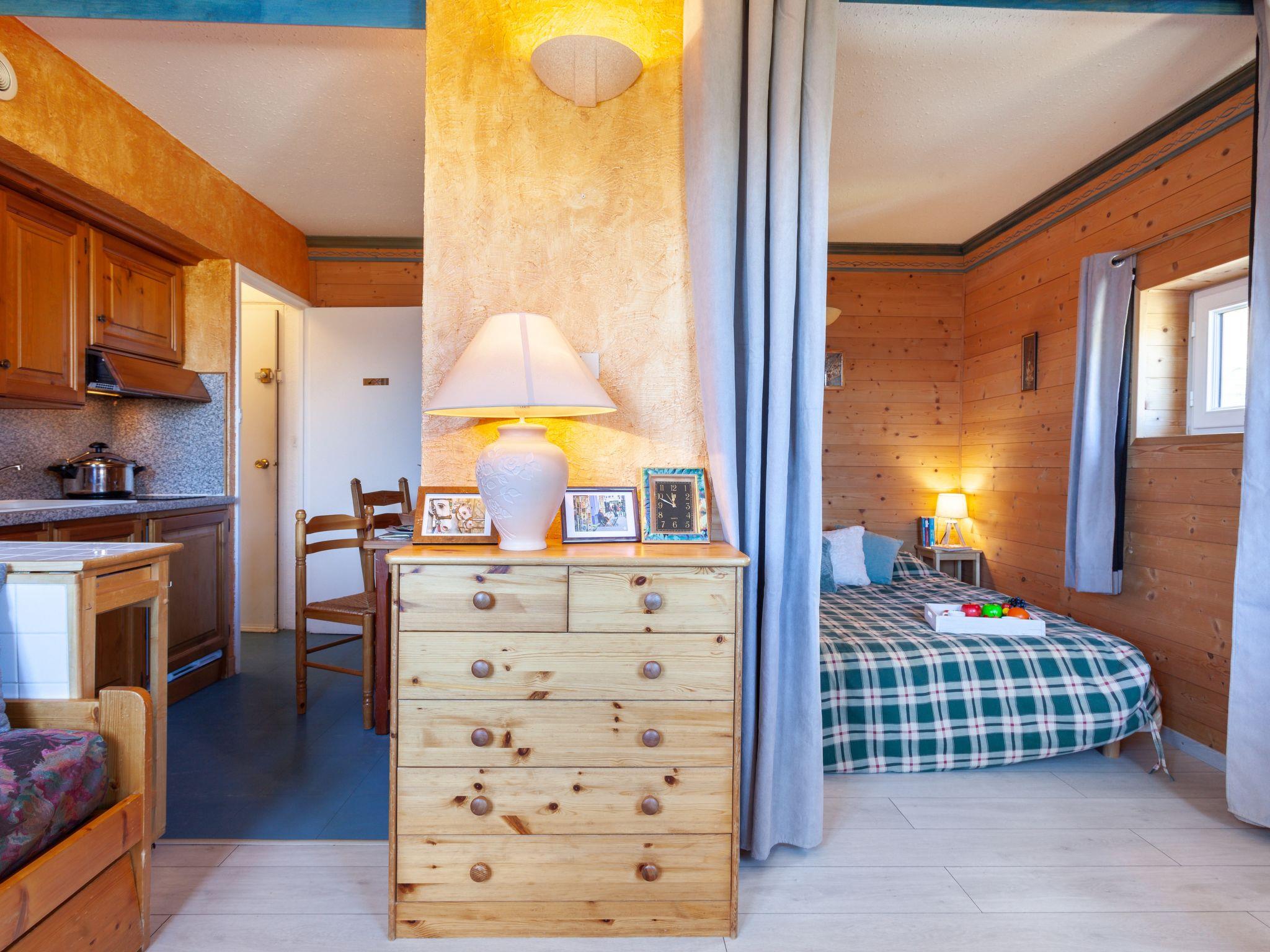 1-room apartment 27 m2 on 8th floor, north facing position. Simple furnishings: living/sleeping room with 1 pull-out bed (2 pers. 2 x 80 cm, length 190 cm), TV (flat screen), DVD. Alcove with curtain with 1 french bed (1 x 140 cm, length 190 cm). Small, open kitchen (2 ceramic glass hob hotplates, toaster, kettle, microwave, electric coffee machine, raclette grill, fondue Set (cheese)) with dining table. Shower/WC. Electric heating, boiler. Parquet floors. View of the mountains. Facilities: iron, hair dryer. Internet (WiFi, extra). Please note: non-smokers only. Maximum 1 pet/ dog allowed. Smoke alarm. Instead of an enclosed bedroom, some sleeping areas are located in an open-plan area (gallery, alcove, etc.). Offer by a private individual according to Art. 155, IV of CGI.