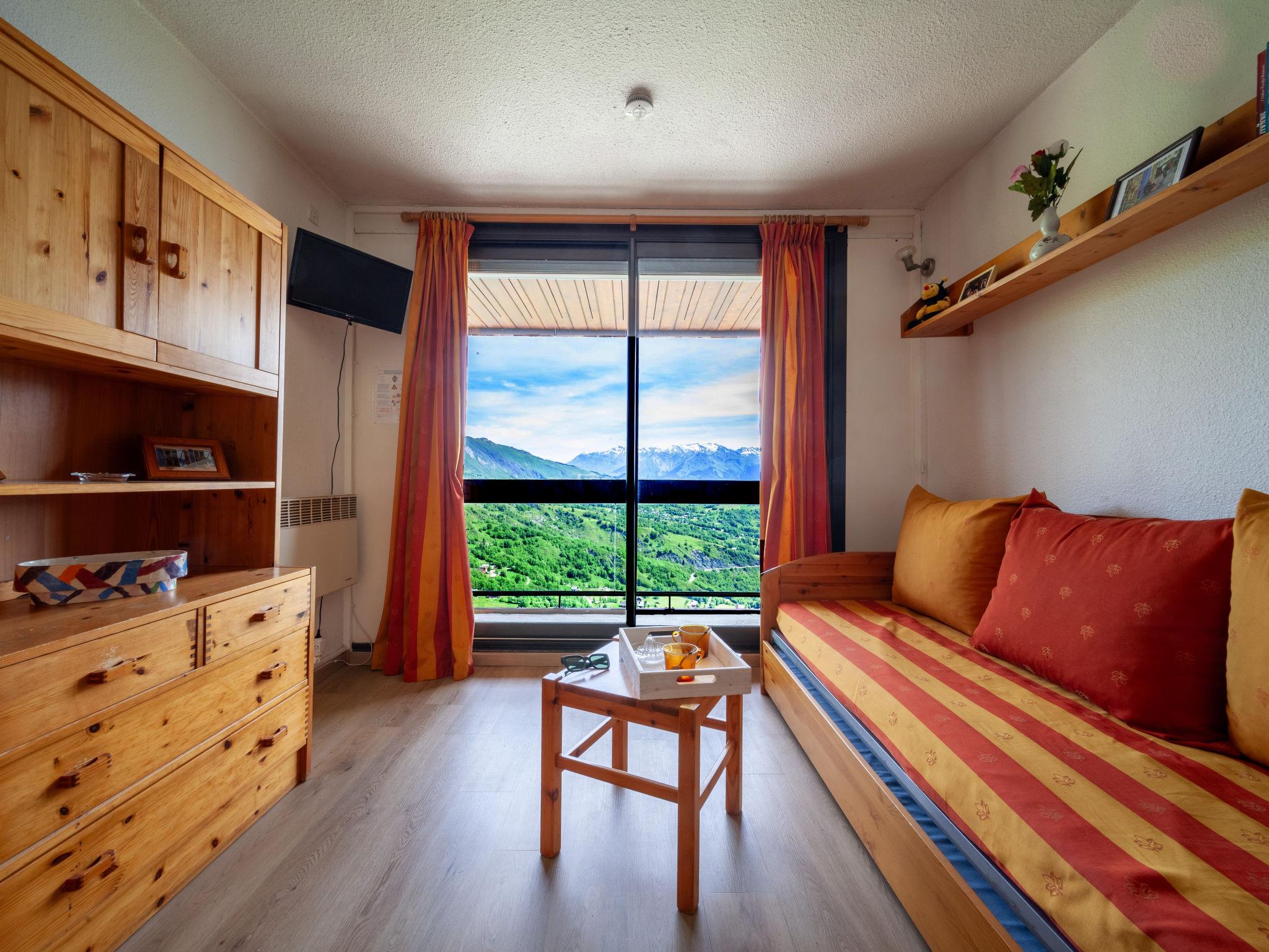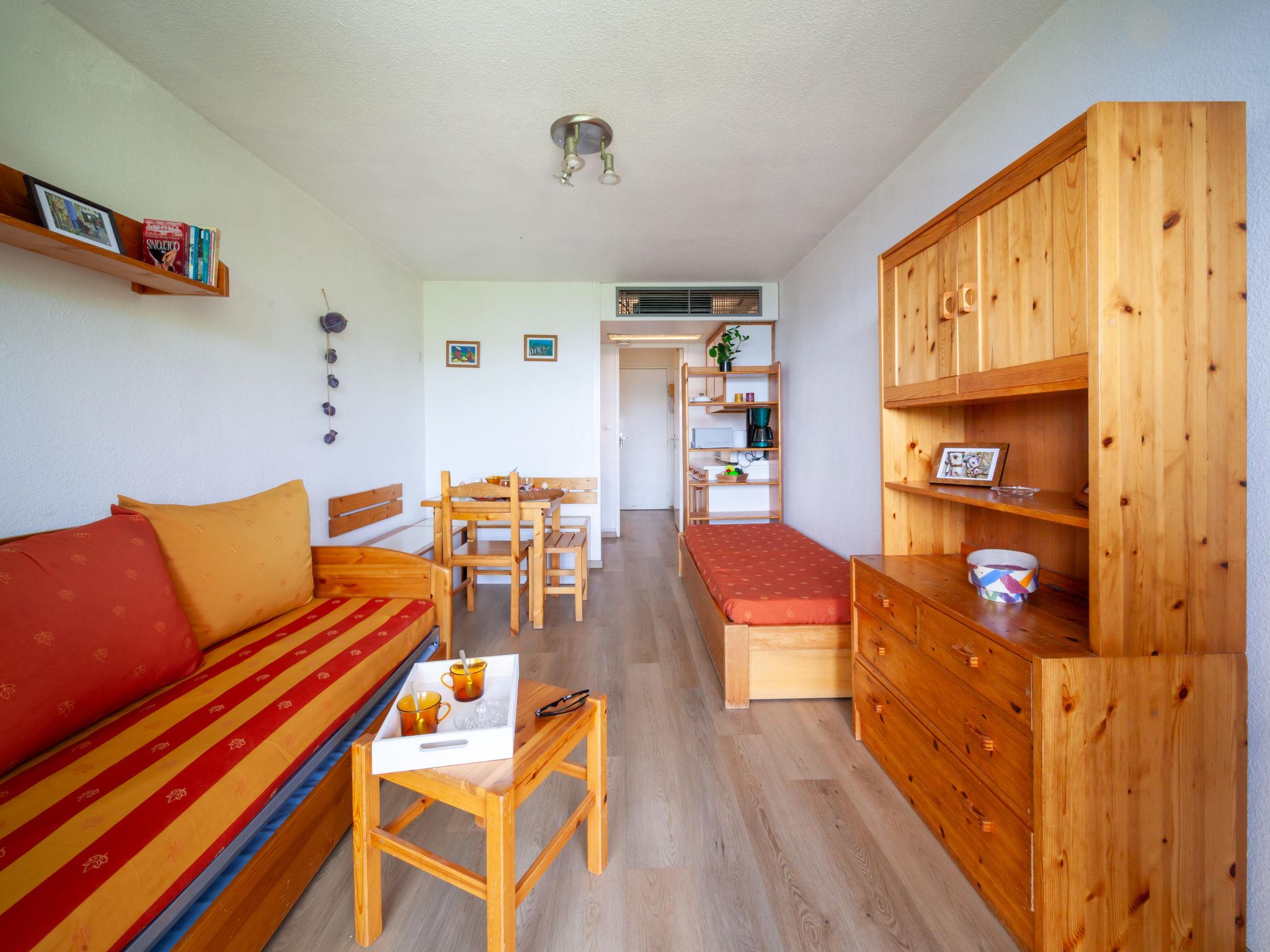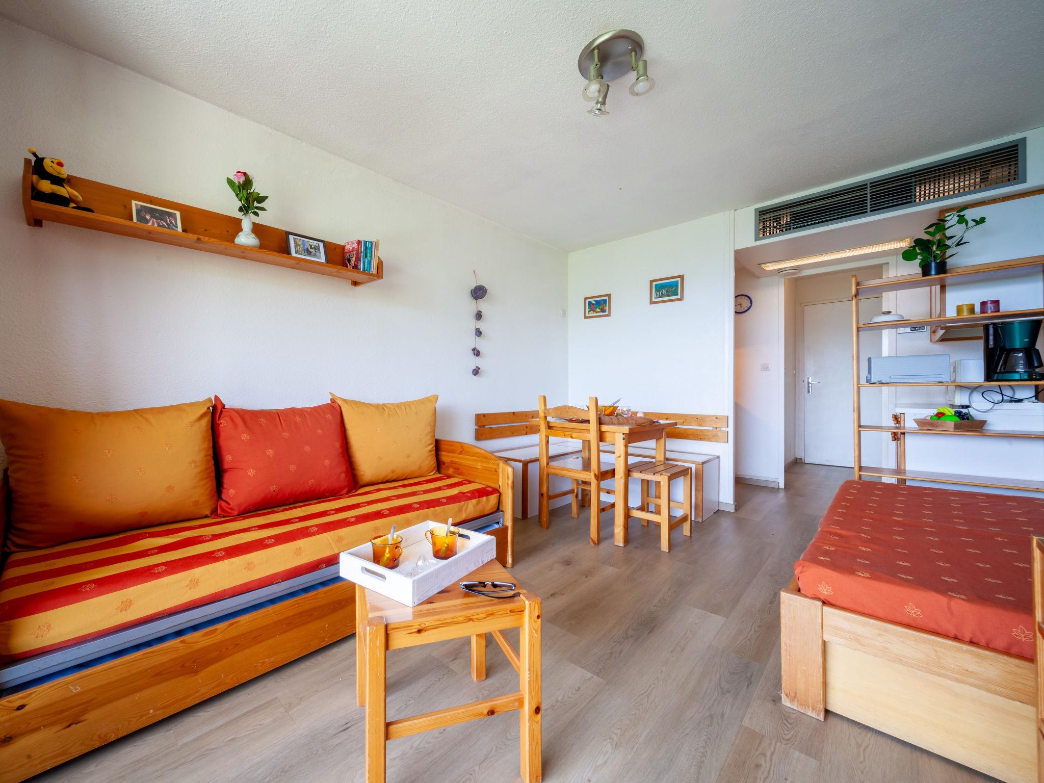 1-room apartment 22 m2 on 18th floor, north facing position. Simple furnishings: living/dining room with 1 bed (80 cm, length 190 cm), 1 pull-out bed (2 pers. 2 x 80 cm, length 190 cm), 1 sleeping facility (80 cm, length 190 cm), TV (flat screen). Exit to the balcony, north facing position. Small kitchenette (2 hot plates, oven, toaster, microwave, electric coffee machine, raclette grill). Bath/WC. Electric heating. Parquet floors. Balcony 4 m2, north facing position. Beautiful view of the mountains and the valley. Facilities: Internet (WiFi, extra). Please note: non-smokers only. Maximum 1 pet/ dog allowed. Smoke alarm. Offer by a private individual according to Art. 155, IV of CGI. FR7370.310.1