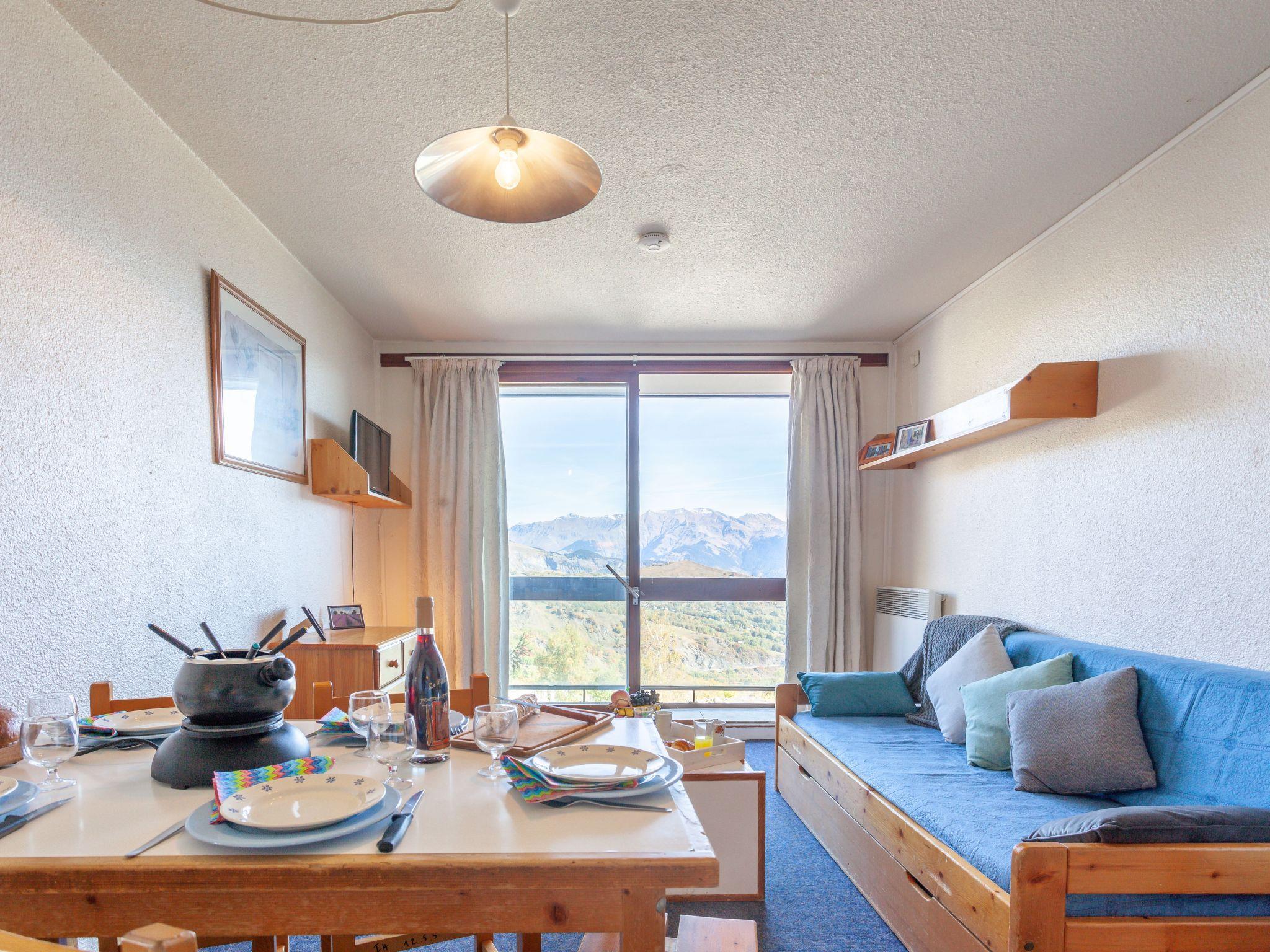 2-room apartment 32 m2 on 5th floor, north-west facing position. Simple furnishings: living/dining room with 1 pull-out bed (2 pers. 2 x 80 cm, length 190 cm), TV (flat screen). Exit to the balcony, north facing position. 1 room with 1 x 2 bunk beds (90 cm, length 190 cm). Exit to the balcony, west facing position. Kitchenette (2 hot plates, oven, toaster, kettle, microwave, electric coffee machine). Bathroom, sep. WC. Electric heating. Carpet. 2 balconies 3 m2, north facing position and west facing position. View of the valley. Facilities: hair dryer. Internet (WiFi, extra). Please note: maximum 1 pet/ dog allowed. Smoke alarm. Offer by a private individual according to Art. 155, IV of CGI.