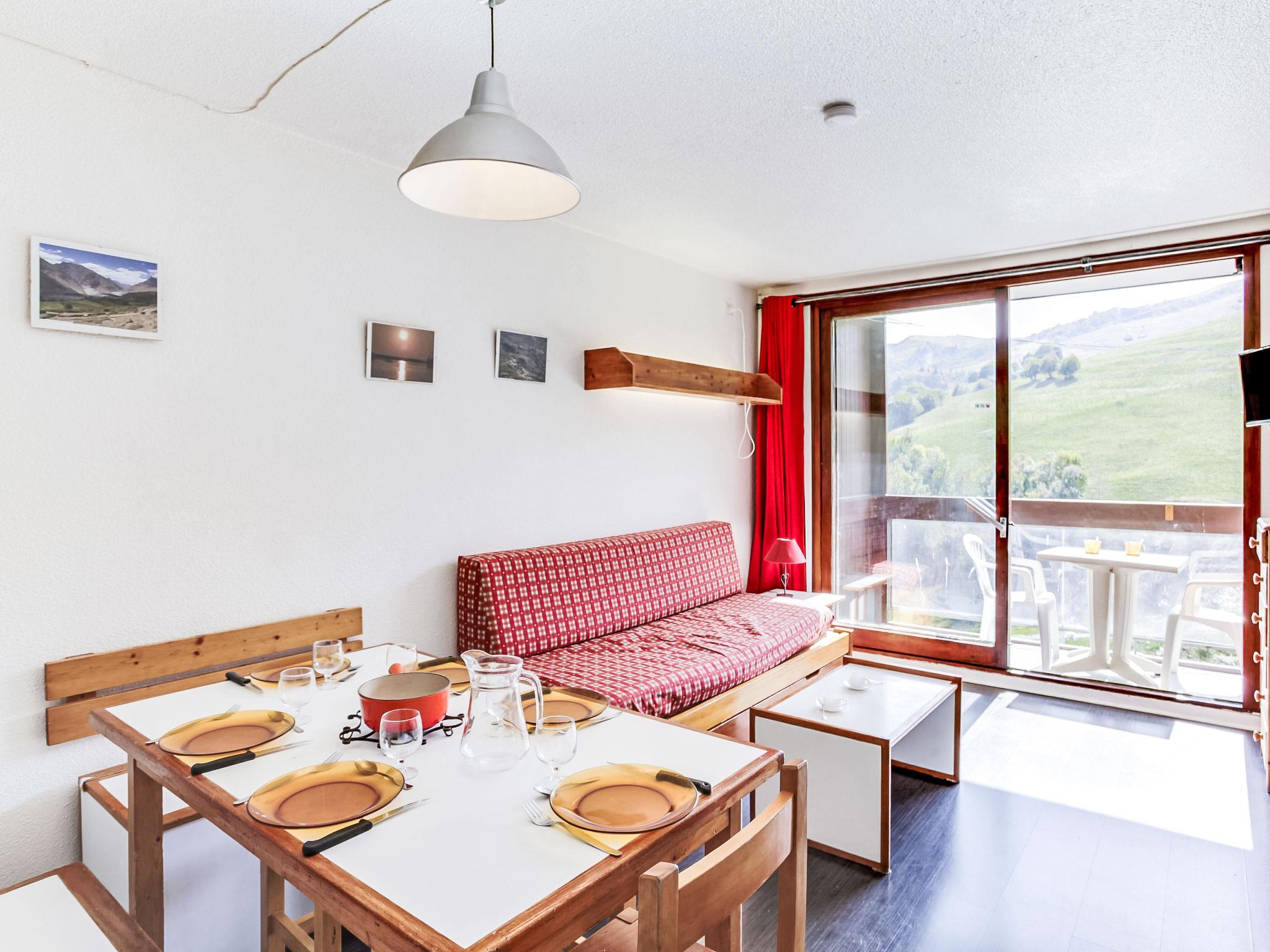 2-room apartment 36 m2 on 14th floor, south facing position. Beautiful furnishings: living/dining room with 1 bed (80 cm, length 190 cm), 1 sleeping facility (80 cm, length 190 cm), TV (flat screen). Exit to the balcony, south facing position. 1 room with 1 french bed (140 cm, length 190 cm). Exit to the balcony, south facing position. Alcove with curtain with 1 x 2 bunk beds (80 cm, length 190 cm). Kitchenette (3 hot plates, oven, dishwasher, toaster, kettle, microwave, electric coffee machine, raclette grill). Shower, sep. WC. Electric heating. Parquet floors. Balcony 9 m2, south facing position. Balcony furniture. View of the ski run. Facilities: Internet (WiFi, extra). Please note: maximum 1 pet/ dog allowed. Smoke alarm. Instead of an enclosed bedroom, some sleeping areas are located in an open-plan area (gallery, alcove, etc.). Offer by a private individual according to Art. 155, IV of CGI.