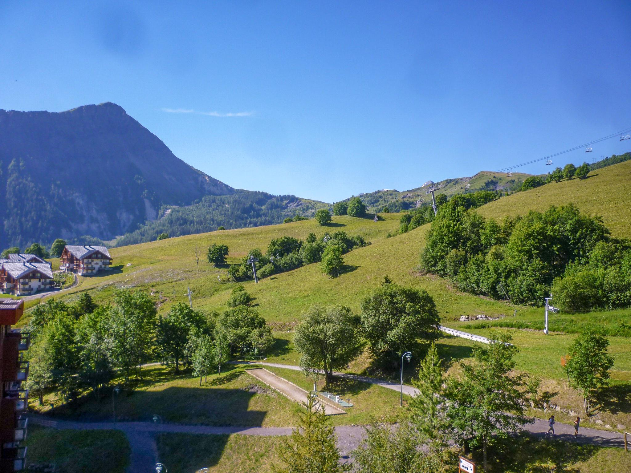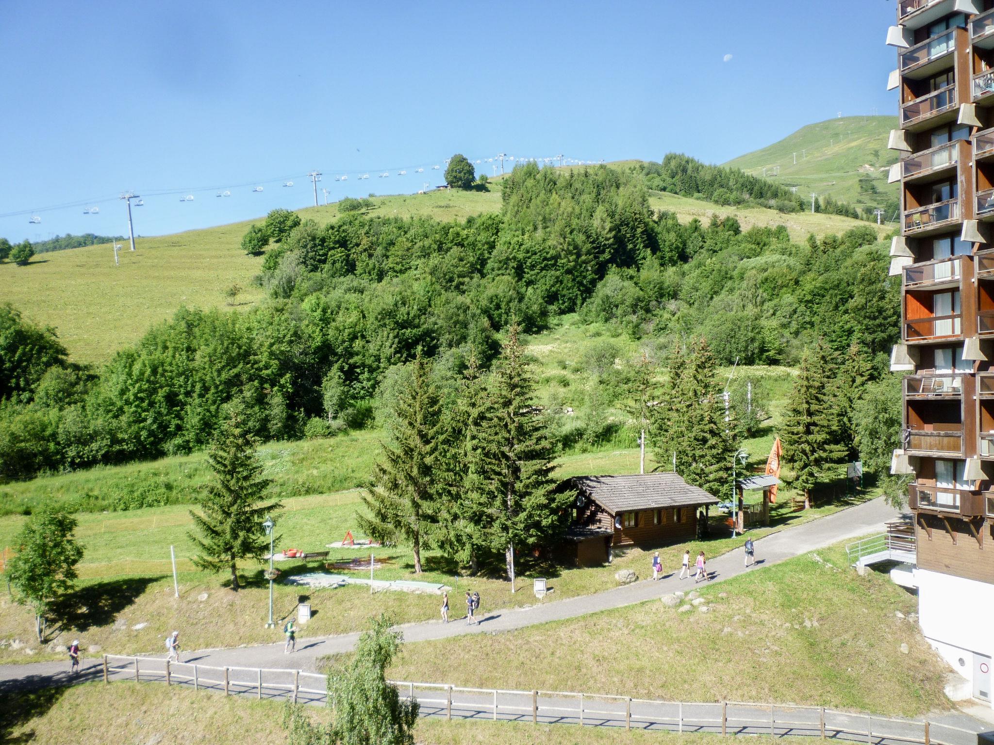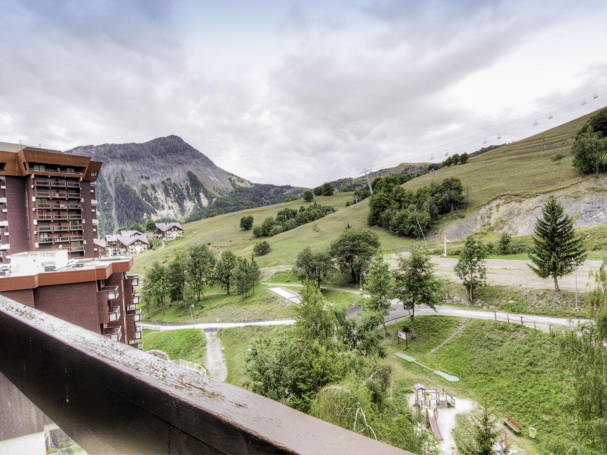 1-room apartment 28 m2 on 8th floor, south facing position. Very simple furnishings: living/dining room with 1 pull-out bed (2 pers. 2 x 80 cm, length 190 cm), TV (flat screen). Exit to the balcony, south facing position. Alcove with 1 x 2 bunk beds (80 cm, length 190 cm). Kitchenette (2 hot plates, oven, kettle, microwave, electric coffee machine). Bathroom, sep. WC. Electric heating. Carpet. Balcony 4 m2, south facing position. Deck chairs (1). View of the ski run. Facilities: Internet (WiFi, extra). Please note: non-smokers only. Maximum 1 pet/ dog allowed. Smoke alarm. Instead of an enclosed bedroom, some sleeping areas are located in an open-plan area (gallery, alcove, etc.). Offer by a private individual according to Art. 155, IV of CGI.