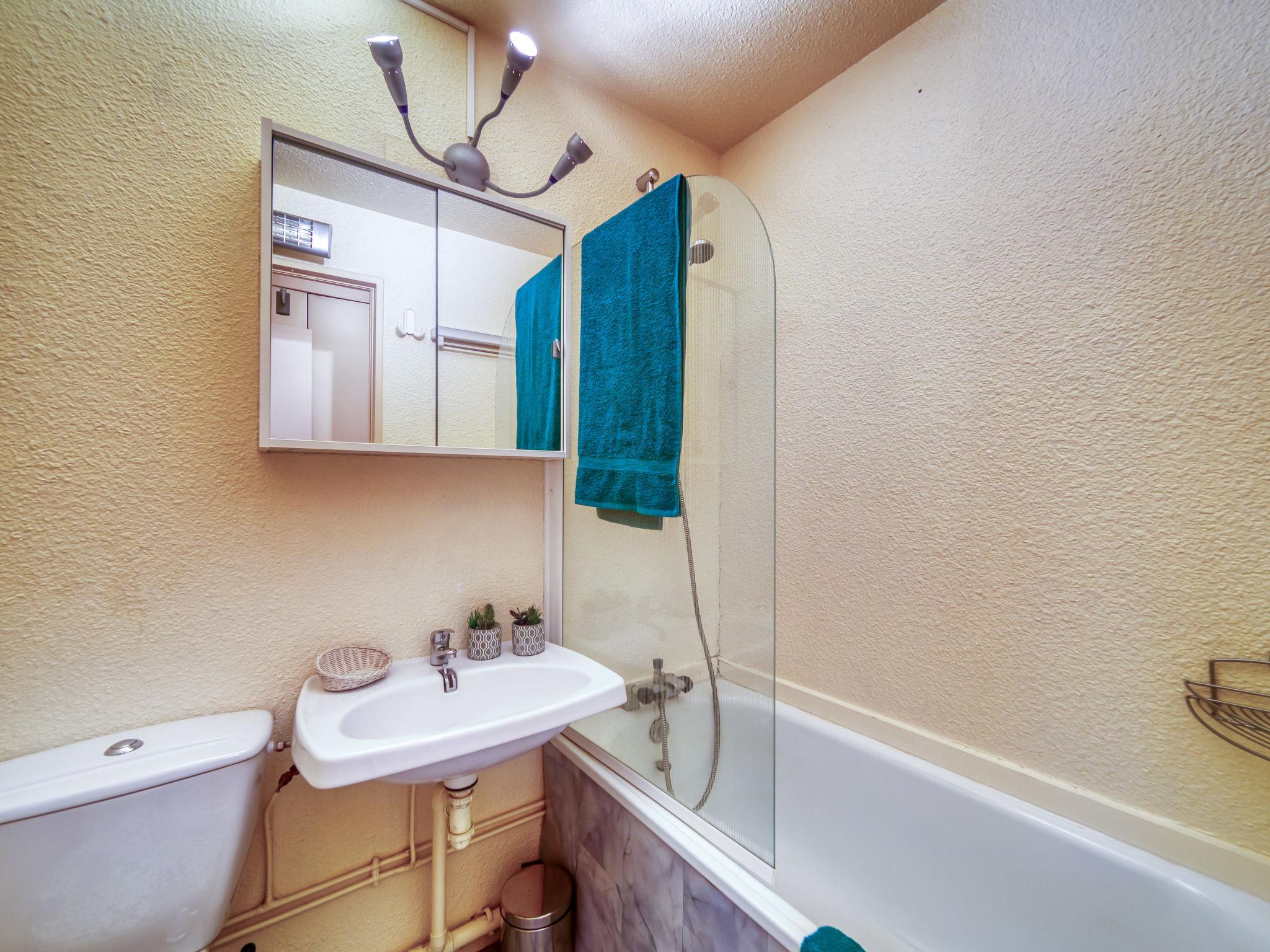 1-room studio 22 m2 on 15th floor, north facing position. Simple and beautiful furnishings: living/dining room with 1 double sofabed (140 cm, length 190 cm), 1 x 2 bunk beds (90 cm, length 190 cm), TV (flat screen). Small kitchenette (2 hot plates, oven, toaster, kettle, microwave, electric coffee machine, raclette grill). Bath/WC. Electric heating. Parquet floors. Balcony 4 m2, north facing position. Balcony furniture. View of the mountains and the valley. Facilities: Internet (WiFi, extra). Please note: non-smokers only. Smoke alarm. Offer by a private individual according to Art. 155, IV of CGI.