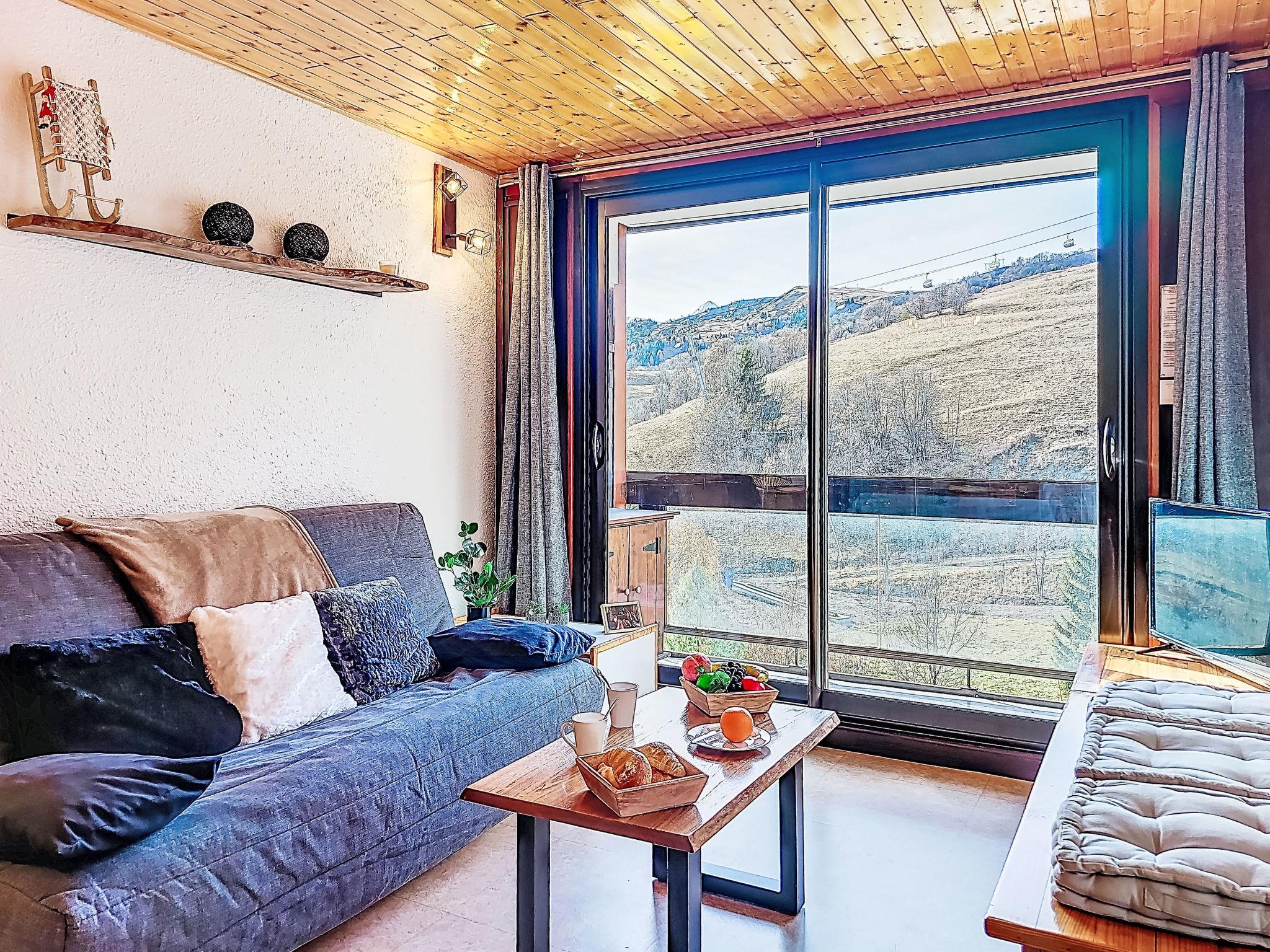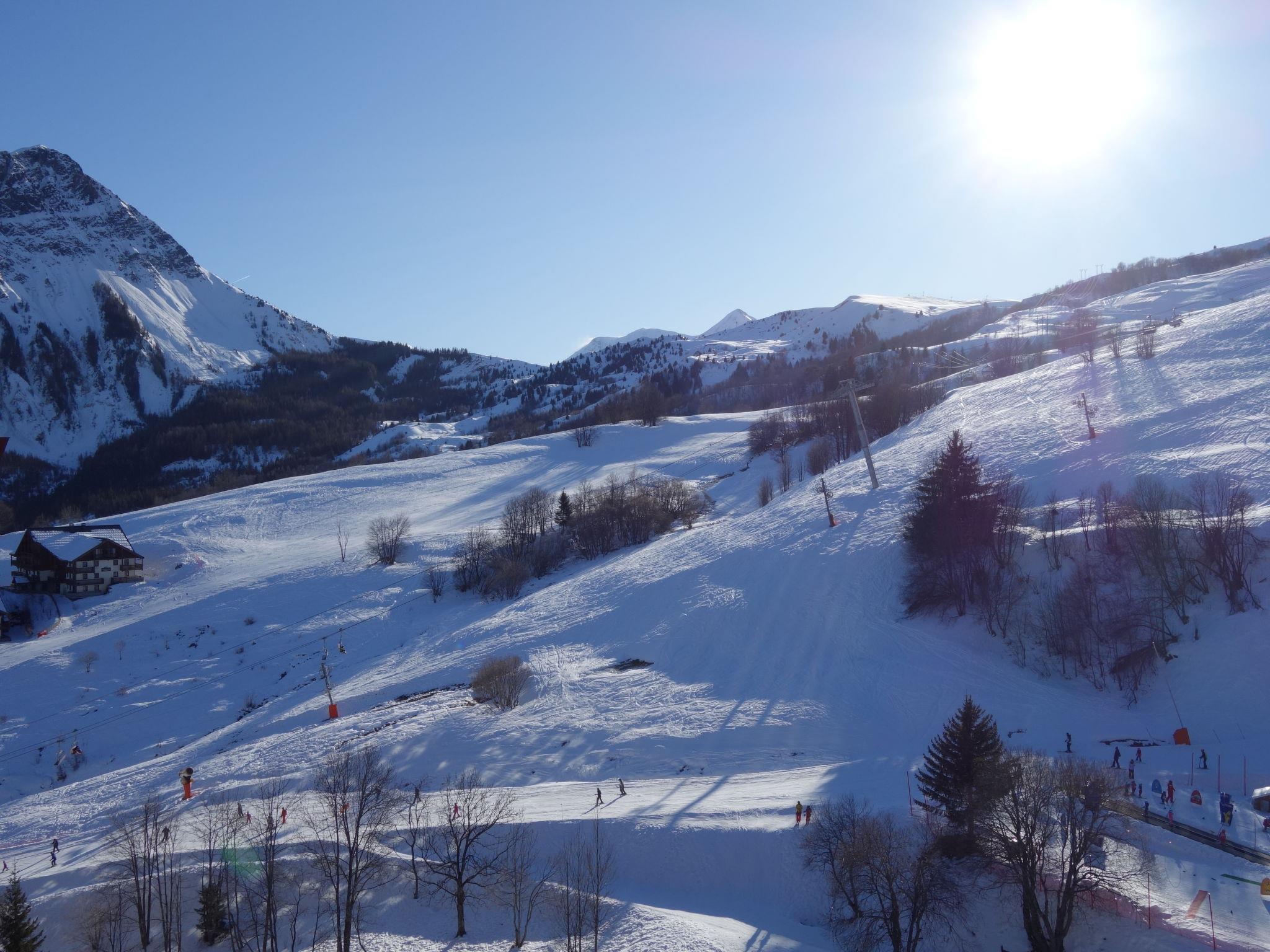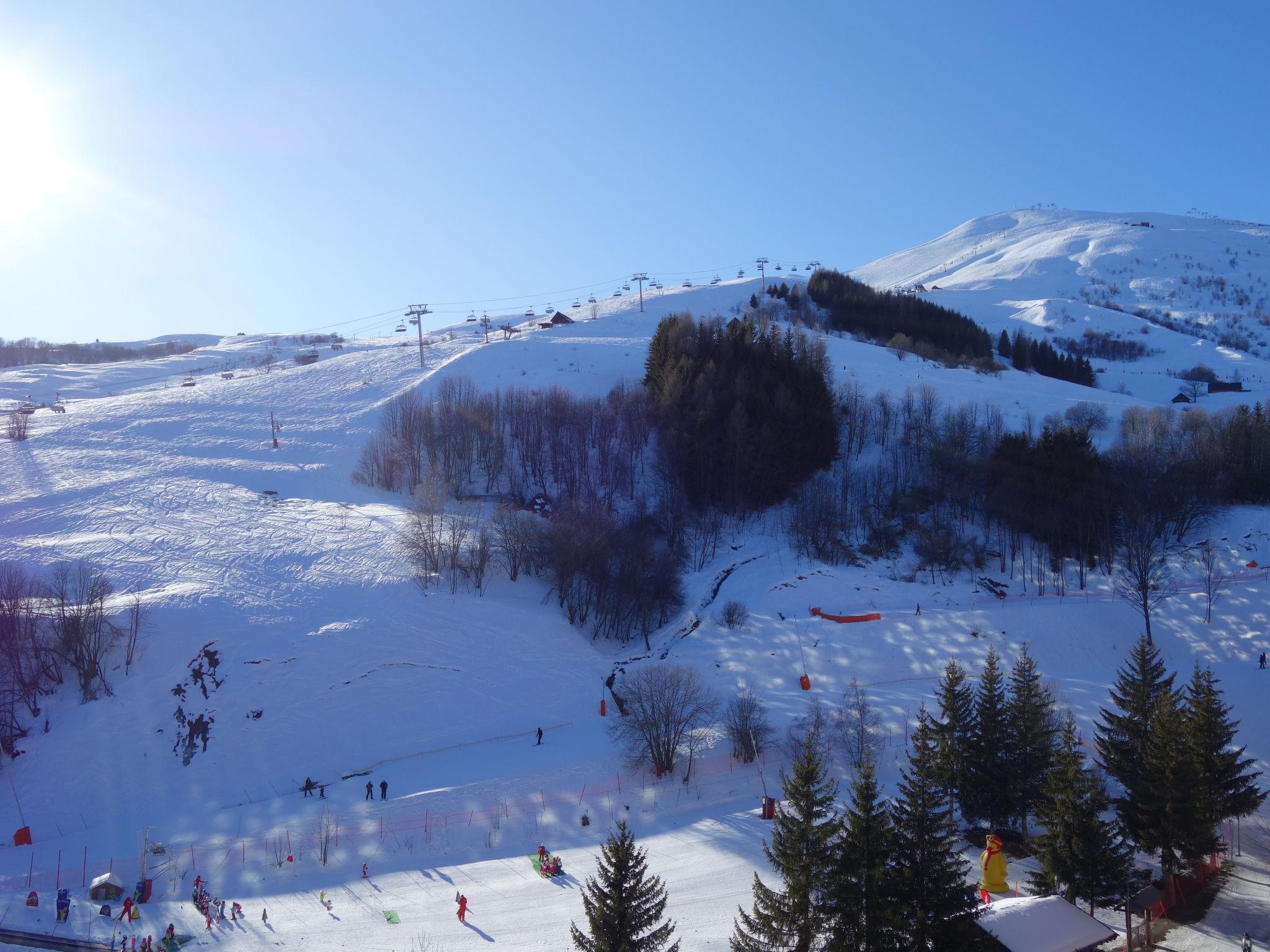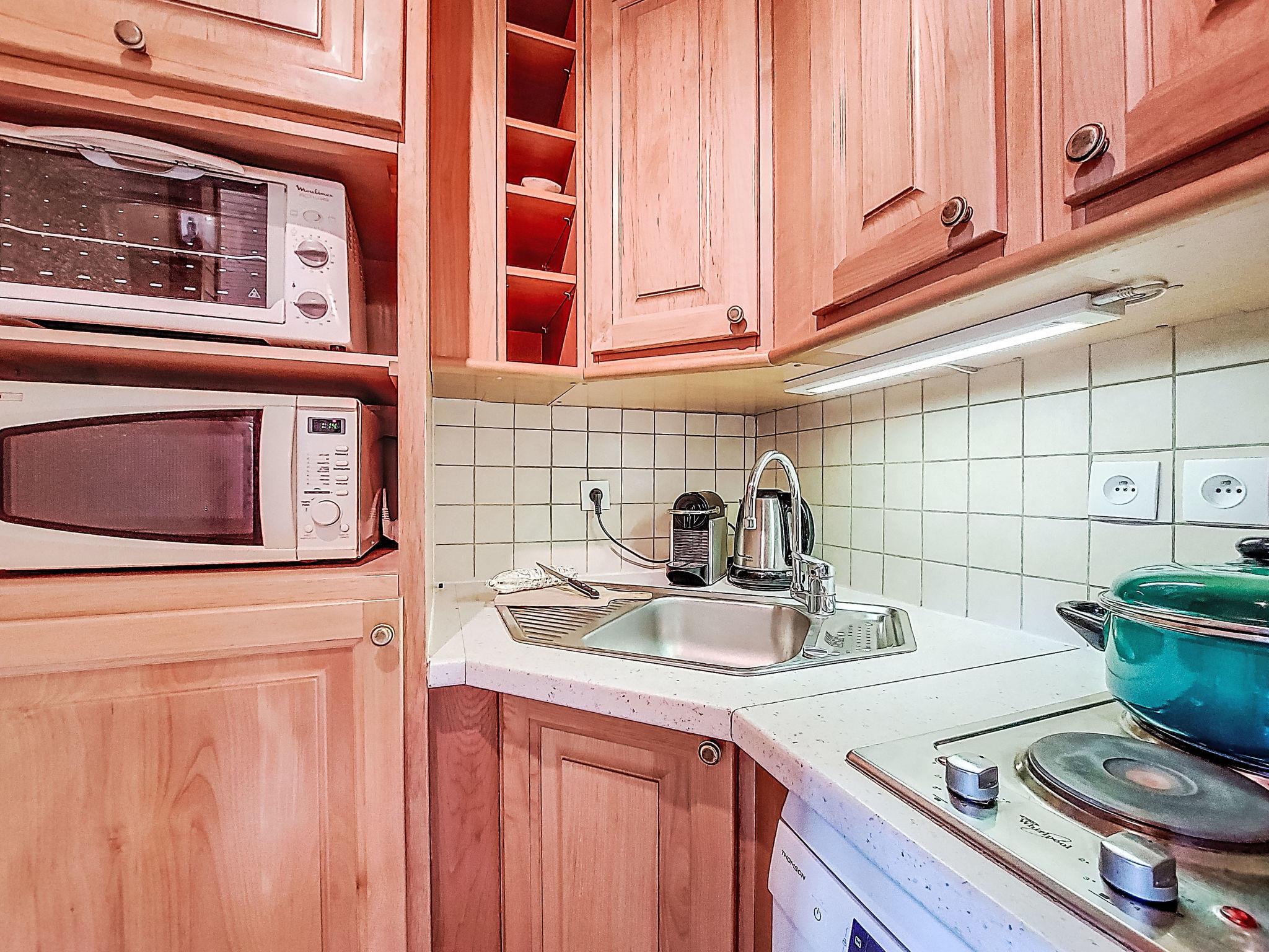 1-room apartment 28 m2 on 10th floor, south facing position. Beautiful furnishings: living/dining room with 1 double sofabed (130 cm, length 190 cm), TV (flat screen). Exit to the balcony, south facing position. Alcove with sliding door with 1 x 2 bunk beds (80 cm, length 190 cm). Kitchenette (2 hot plates, oven, dishwasher, toaster, kettle, microwave, electric coffee machine, Capsules for coffee machine (Nespresso) extra, raclette grill). Bathroom, sep. WC. Electric heating. Balcony 4 m2, south facing position. View of the ski run. Facilities: washing machine. Internet (WiFi, extra). Please note: non-smokers only. Smoke alarm. Instead of an enclosed bedroom, some sleeping areas are located in an open-plan area (gallery, alcove, etc.). Offer by a private individual according to Art. 155, IV of CGI.