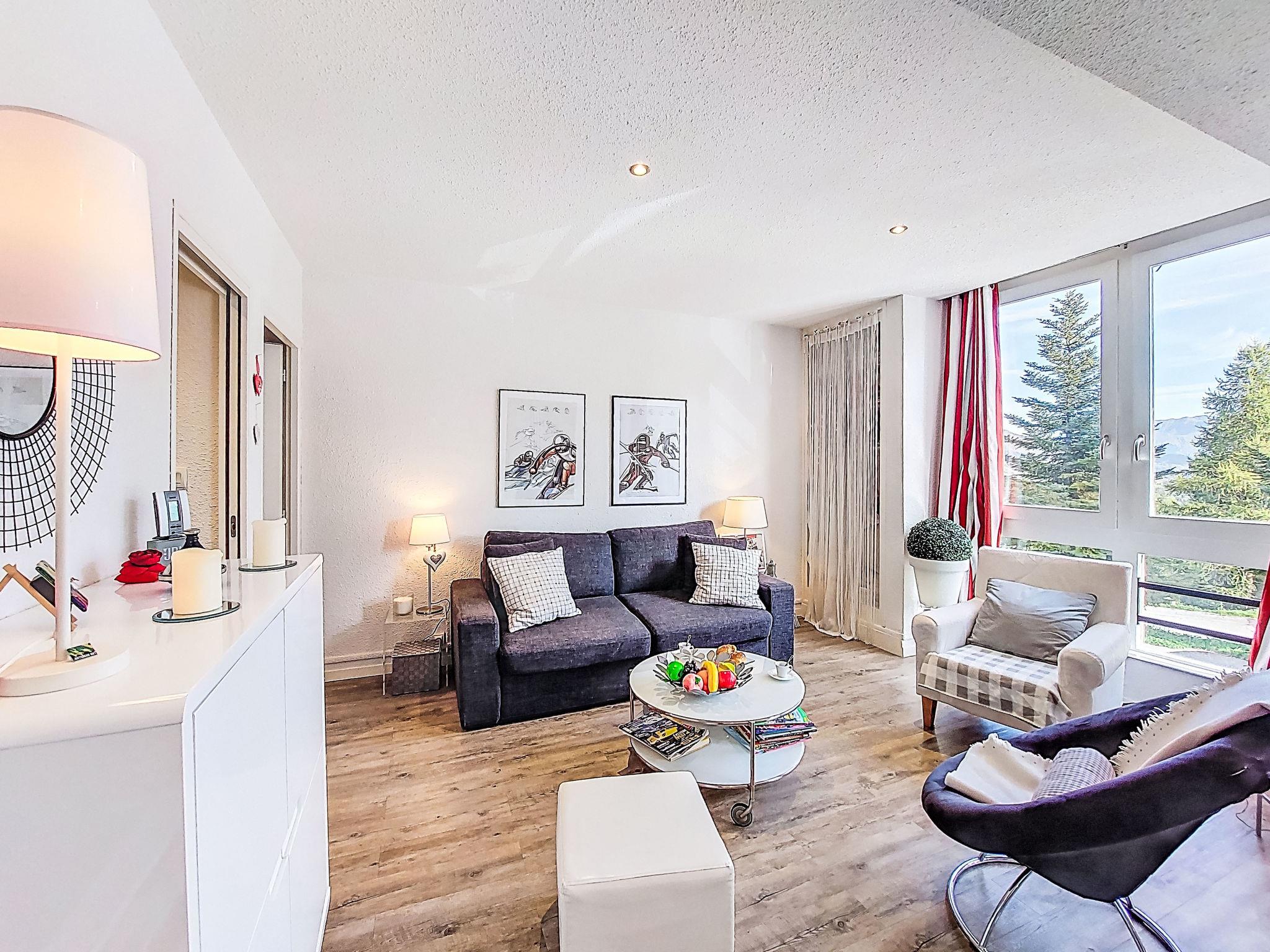 1-room studio 37 m2, on the mezzanine, north facing position. Very beautiful and modern furnishings: with 1 double sofabed (1 x 140 cm, length 190 cm), TV (flat screen), electric heating. Kitchenette (2 ceramic glass hob hotplates, toaster, kettle, raclette grill, combination microwave, fondue Set (cheese)). Shower, sep. WC. Beautiful view of the mountains and the valley. Facilities: hair dryer. Internet (WiFi, extra). Please note: non-smokers only. Smoke alarm. Offer by a private individual according to Art. 155, IV of CGI.