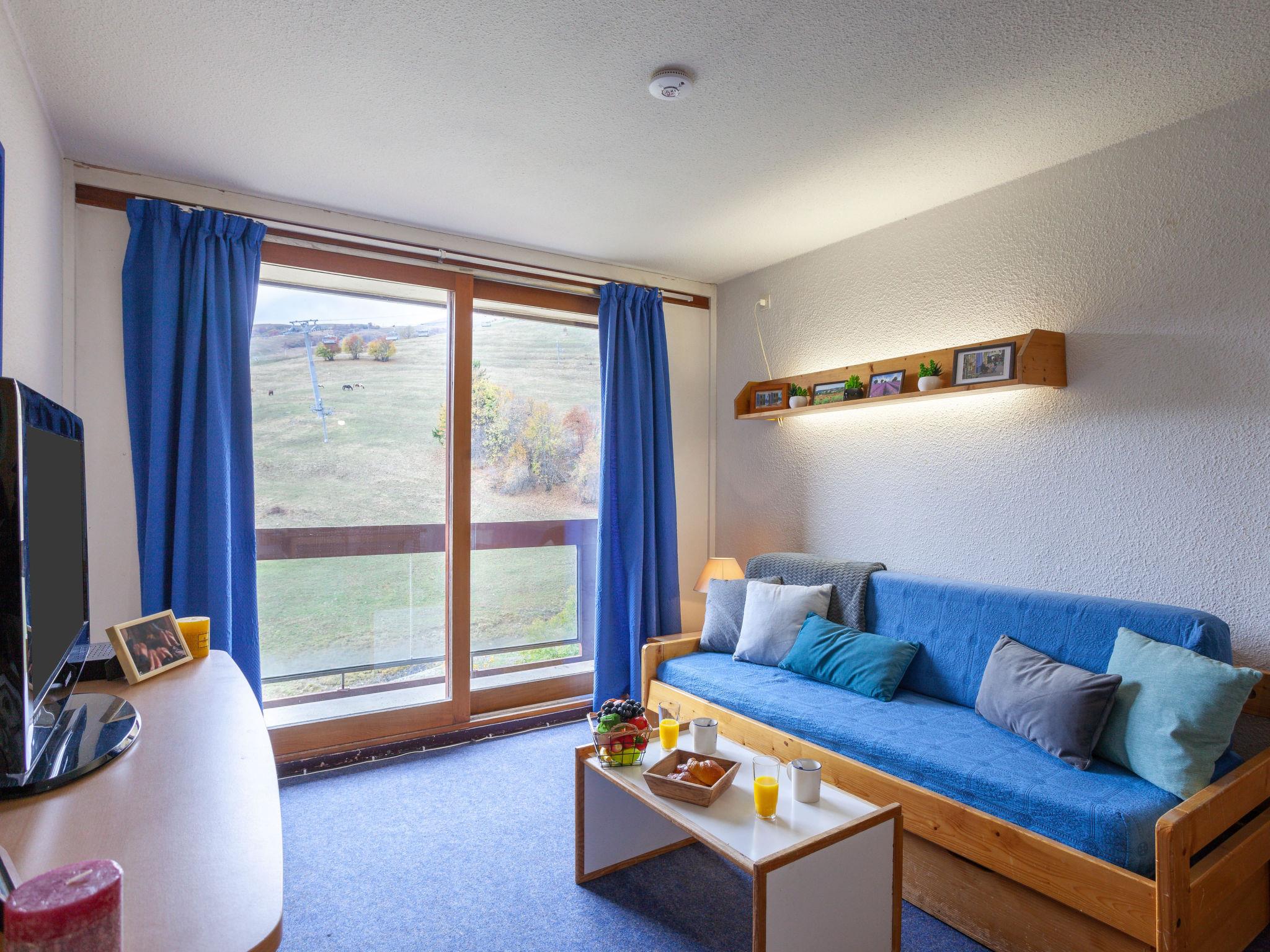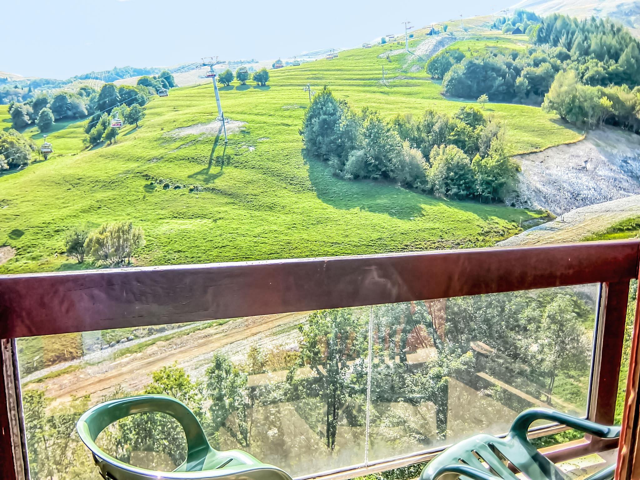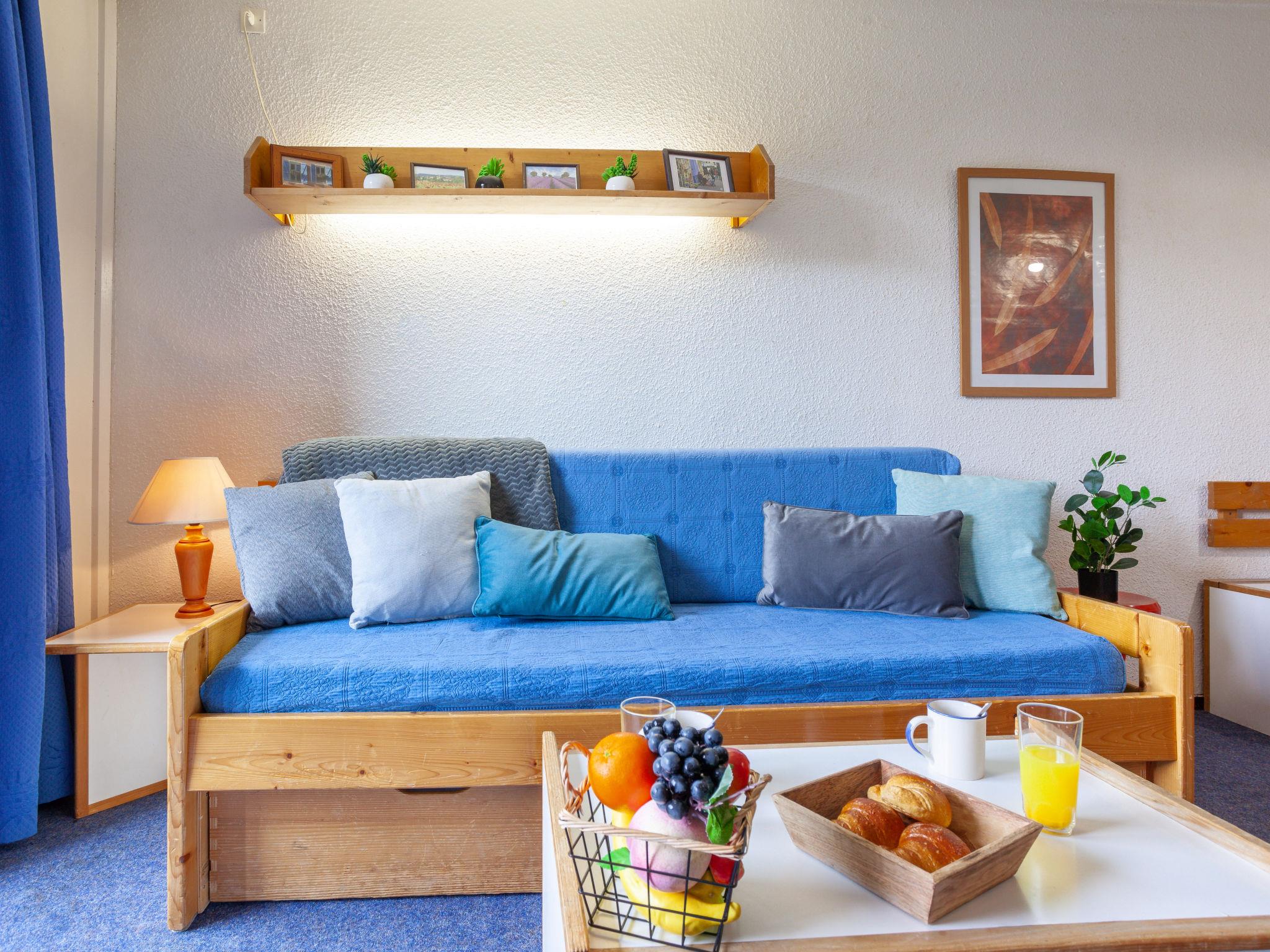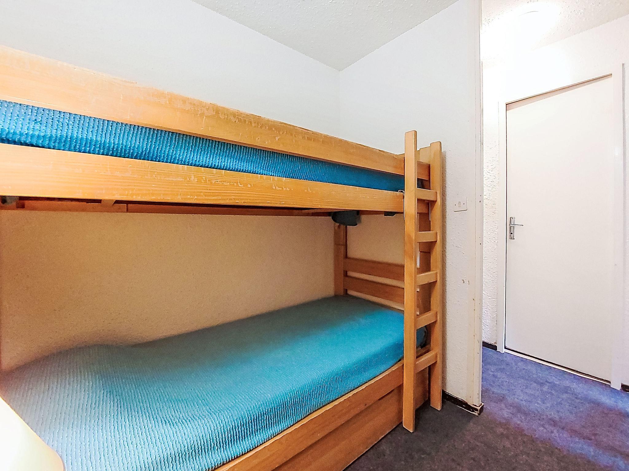 1-room studio 28 m2 on 12nd floor, south facing position. Simple furnishings: living/dining room with 1 bed (80 cm, length 190 cm), 1 sleeping facility (80 cm, length 190 cm), TV (flat screen). Exit to the balcony, south facing position. Alcove with 1 x 2 bunk beds (80 cm, length 190 cm). Kitchenette (2 hot plates, oven, toaster, kettle, microwave, electric coffee machine). Bathroom, sep. WC. Electric heating. Carpet. Balcony 4 m2, south facing position. View of the ski run. Facilities: Internet (WiFi, extra). Please note: maximum 1 pet/ dog allowed. Smoke alarm. Instead of an enclosed bedroom, some sleeping areas are located in an open-plan area (gallery, alcove, etc.). Offer by a private individual according to Art. 155, IV of CGI.