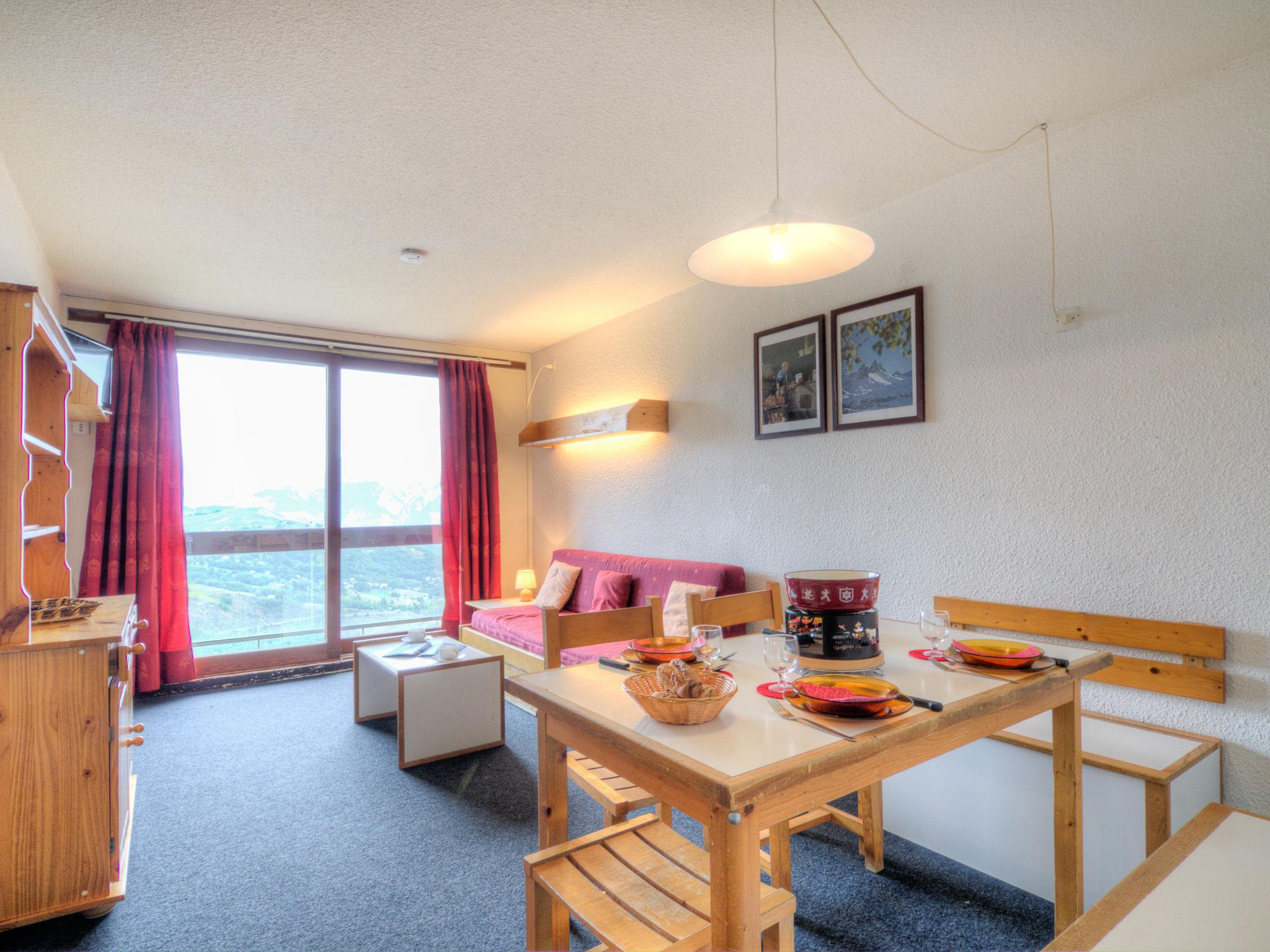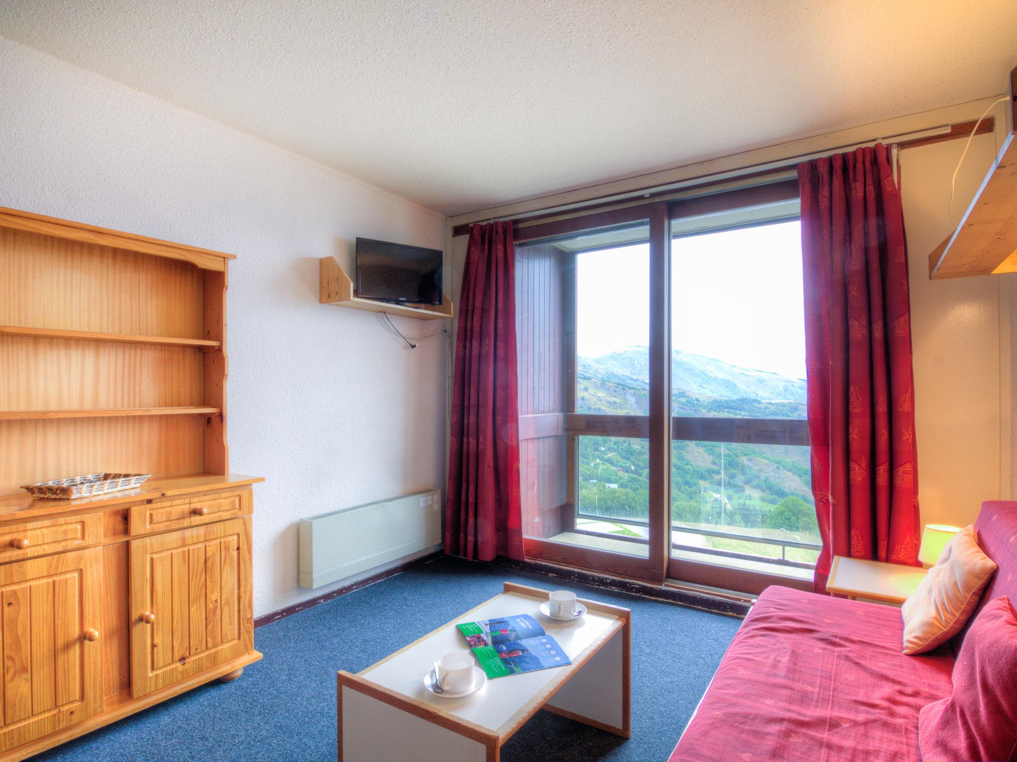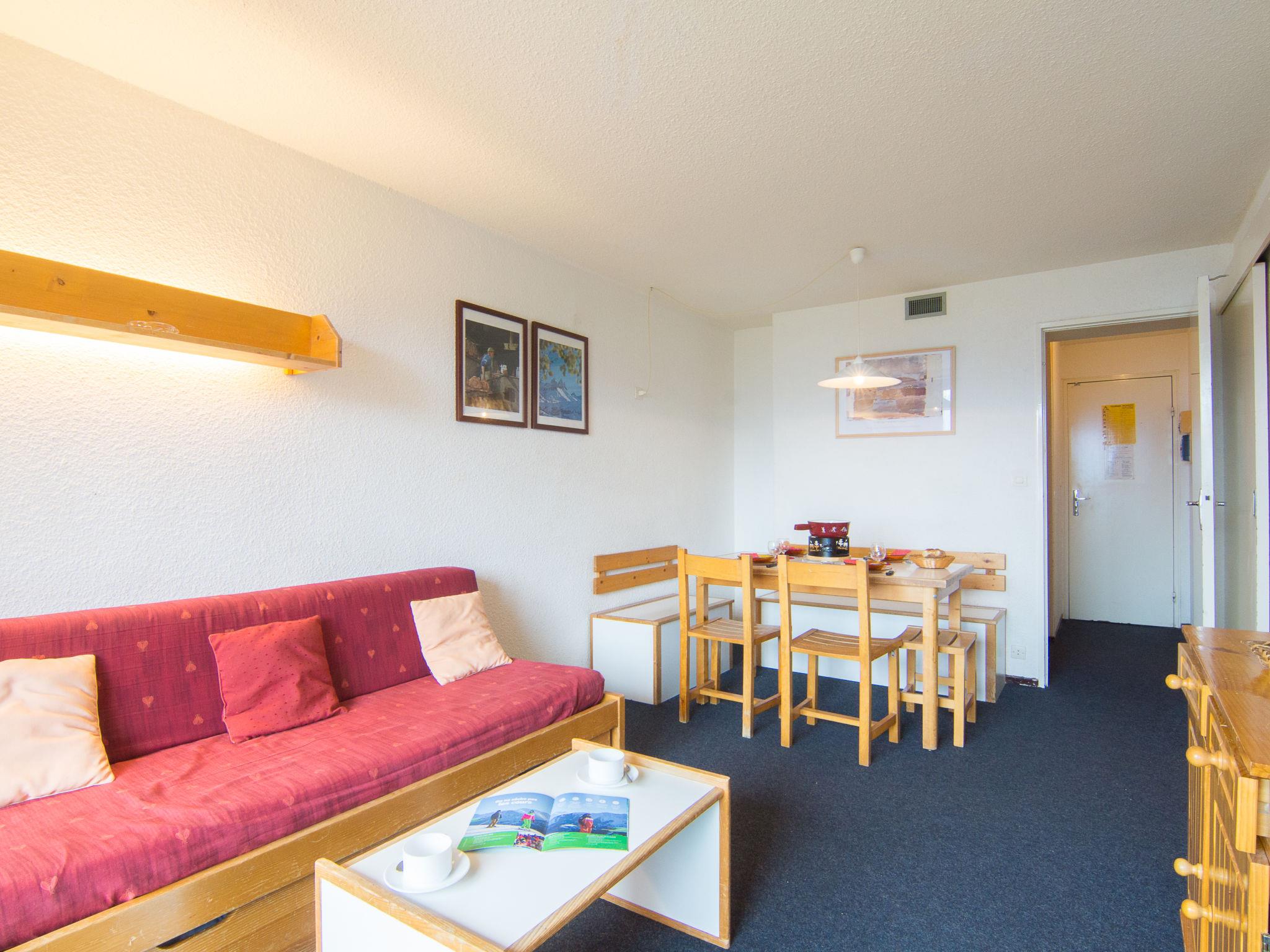 1-room apartment 28 m2 on 15th floor, north facing position. Simple furnishings: living/dining room with 1 bed (80 cm, length 190 cm), 1 sleeping facility (80 cm, length 190 cm), TV (flat screen), electric shutters. Exit to the balcony, north facing position. Alcove with 1 x 2 bunk beds (80 cm, length 190 cm). Kitchenette (2 hot plates, oven, toaster, kettle, microwave, electric coffee machine). Bathroom, sep. WC. Electric heating. Carpet. Balcony 4 m2, north facing position. View of the mountains and the valley. Facilities: hair dryer. Internet (WiFi, extra). Please note: non-smokers only. Maximum 1 pet/ dog allowed. Smoke alarm. Instead of an enclosed bedroom, some sleeping areas are located in an open-plan area (gallery, alcove, etc.). Offer by a private individual according to Art. 155, IV of CGI.