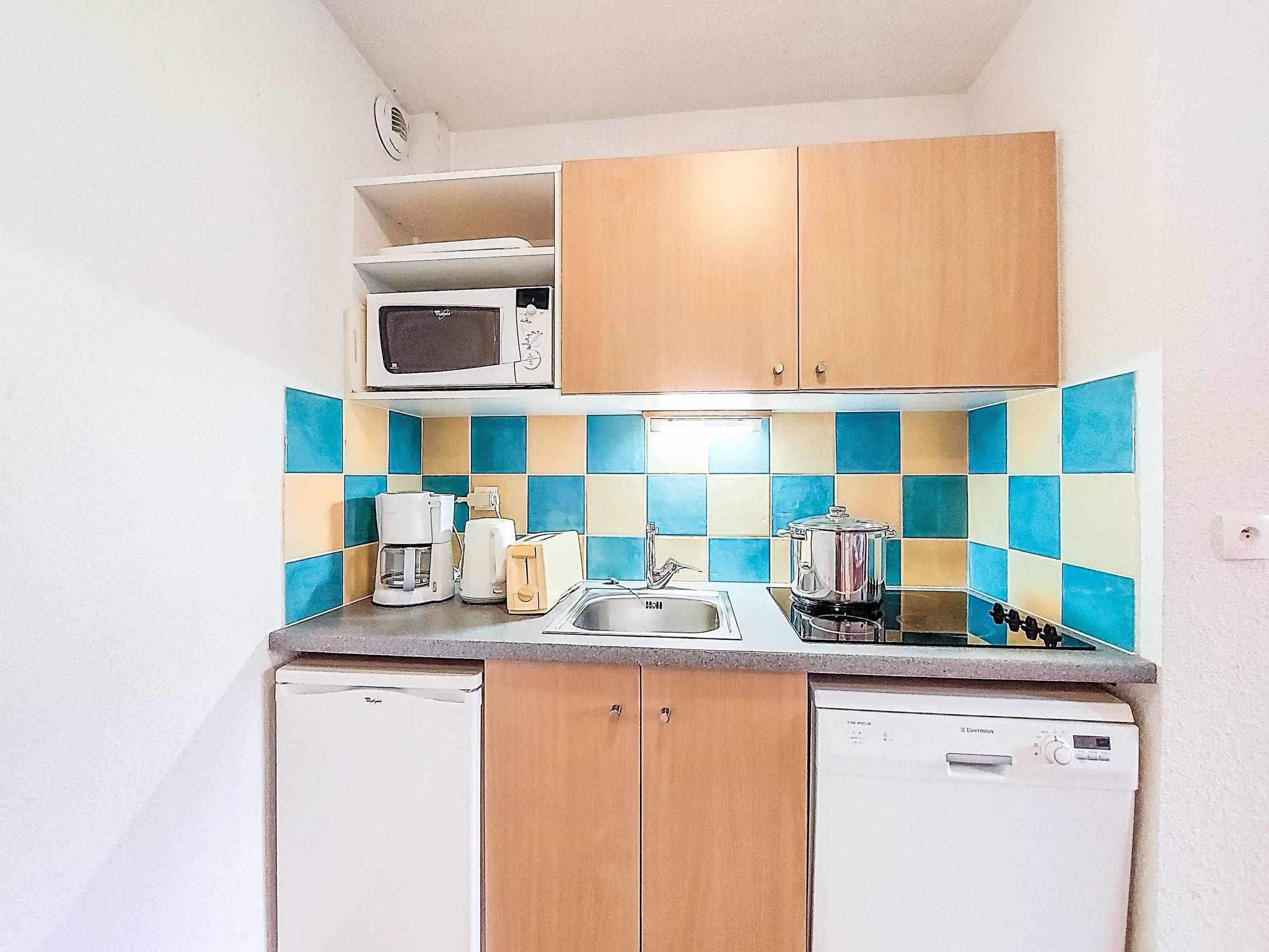 "Bâtiment A", 2-room apartment 32 m2 on 1st floor, south facing position. Simple furnishings: living/dining room with 1 pull-out bed (2 pers. 2 x 80 cm, length 190 cm), TV (flat screen). Exit to the balcony, south facing position. 1 room, south facing position with 2 beds (90 cm, length 190 cm). Kitchenette (dishwasher, 4 ceramic glass hob hotplates, toaster, kettle, electric coffee machine, combination microwave). Bathroom, sep. WC. Electric heating. Carpet. Balcony 4 m2, south facing position. Balcony furniture. No view. Facilities: hair dryer. Internet (WiFi, extra). Please note: non-smokers only. Smoke alarm. Offer by a private individual according to Art. 155, IV of CGI.