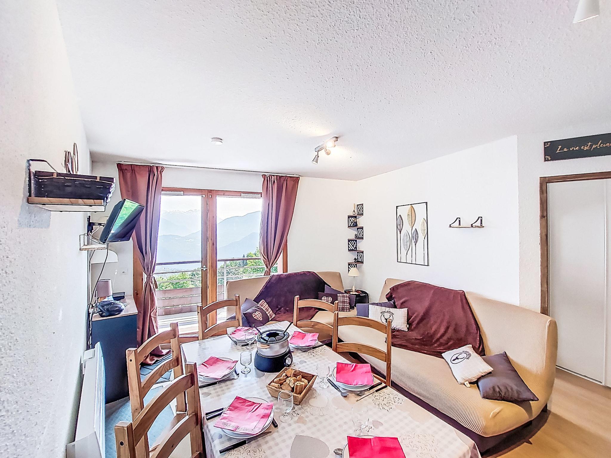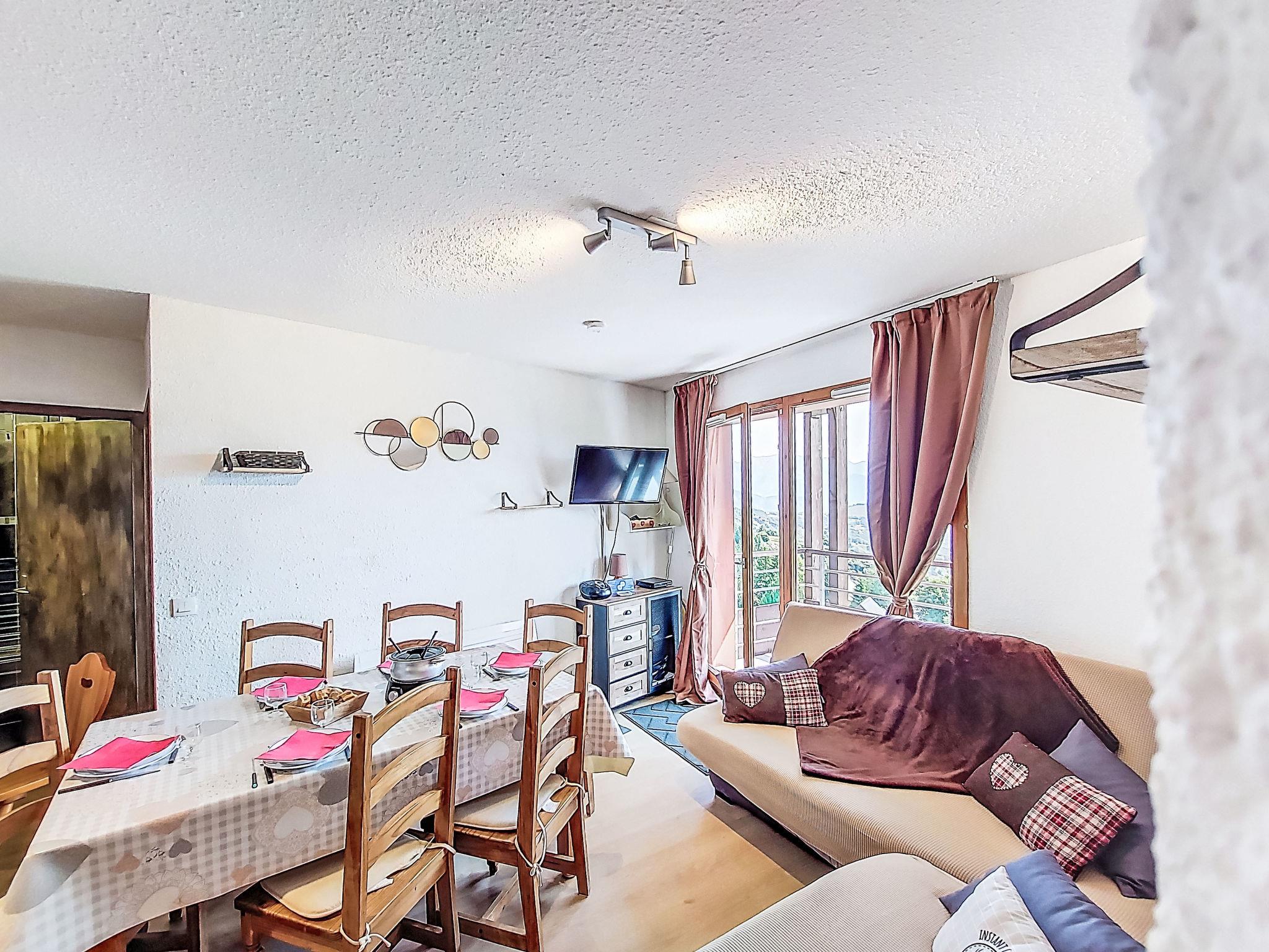 "Bâtiment A", 3-room apartment 40 m2 on 2nd floor, north facing position. Cosy furnishings: living/dining room with 2 sofabeds (120 cm, length 190 cm), TV (flat screen), hi-fi system and DVD. Exit to the balcony, north facing position. 1 room, north facing position with 1 french bed (140 cm, length 190 cm). 1 room, north facing position with 1 x 2 bunk beds (90 cm, length 190 cm). Kitchenette (oven, dishwasher, 4 ceramic glass hob hotplates, toaster, kettle, freezer, electric coffee machine, Capsules for coffee machine (SENSEO) extra, raclette grill, combination microwave) with bar. Shower, sep. WC. Electric heating. Parquet floors. Balcony 4 m2, north facing position. Balcony furniture. Beautiful view of the valley. Facilities: hair dryer. Internet (WiFi, extra). Please note: non-smokers only. Maximum 1 pet/ dog allowed. Smoke alarm. Offer by a private individual according to Art. 155, IV of CGI.