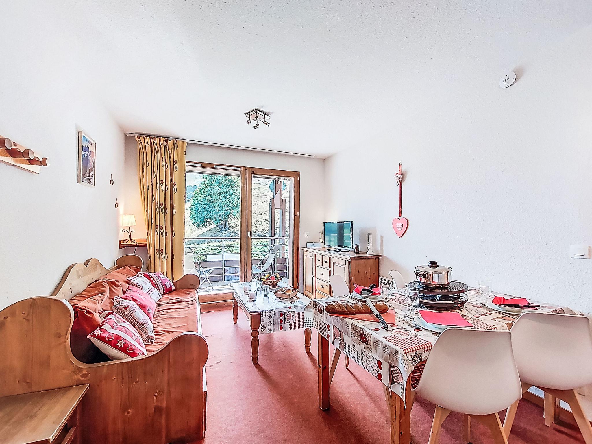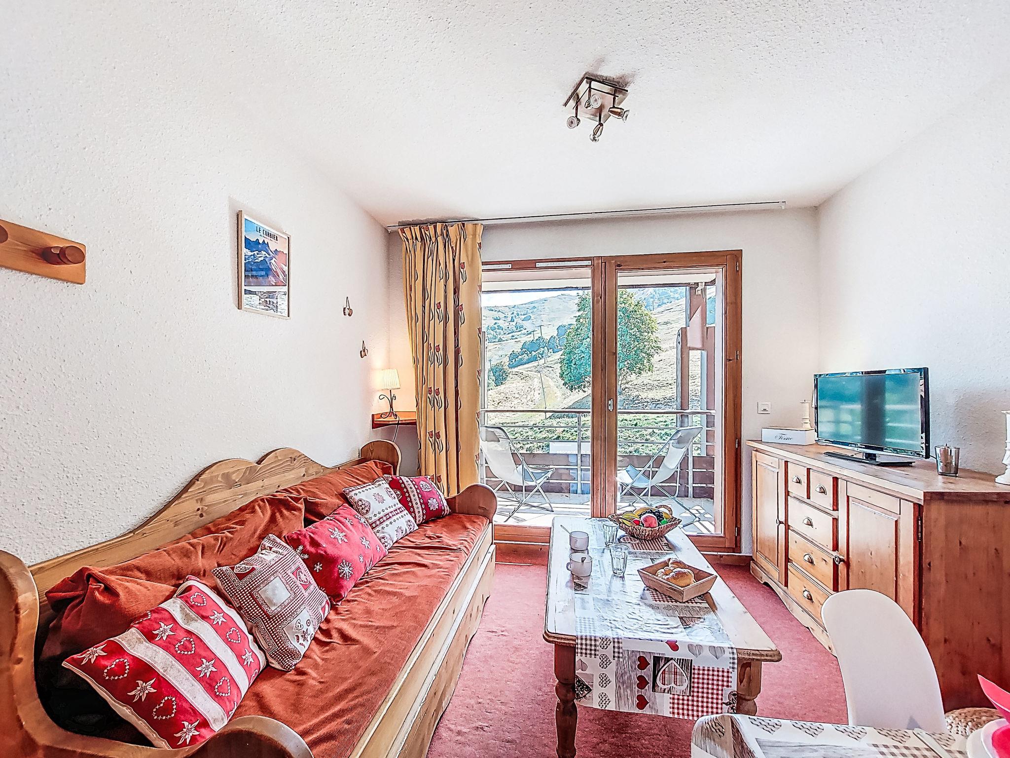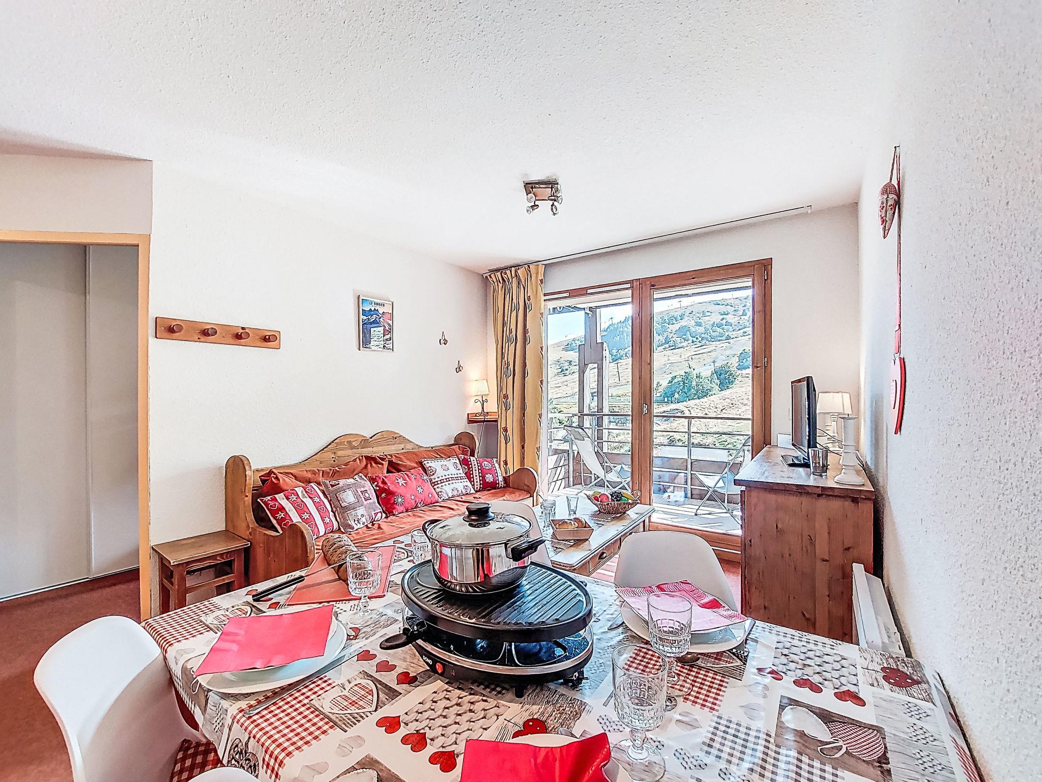 "Bâtiment B", 3-room apartment 40 m2 on 5th floor, south facing position. Cosy furnishings: living/dining room with 1 pull-out bed (2 pers. 2 x 80 cm, length 190 cm), TV (flat screen). Exit to the balcony, south facing position. 1 room, south facing position with 1 french bed (140 cm, length 190 cm). 1 room, south facing position with 1 x 2 bunk beds (80 cm, length 190 cm). Kitchenette (dishwasher, 4 ceramic glass hob hotplates, toaster, kettle, microwave, electric coffee machine). Bathroom, sep. WC. Electric heating. Carpet. Balcony 4 m2, south facing position. Balcony furniture, deck chairs (2). Beautiful view of the mountains and the ski run. Facilities: iron, hair dryer. Internet (WiFi, extra). Please note: non-smokers only. Smoke alarm. Offer by a private individual according to Art. 155, IV of CGI.