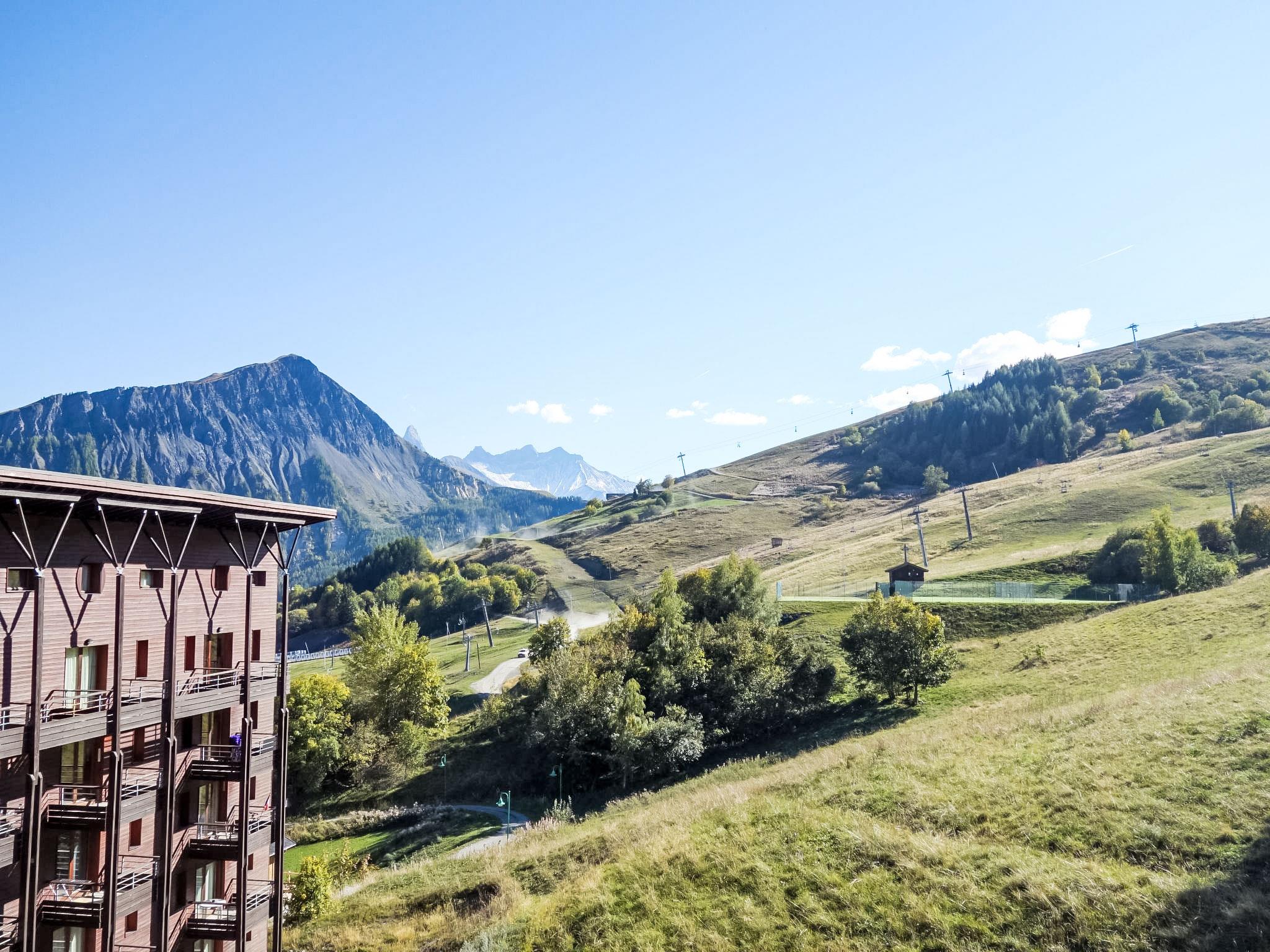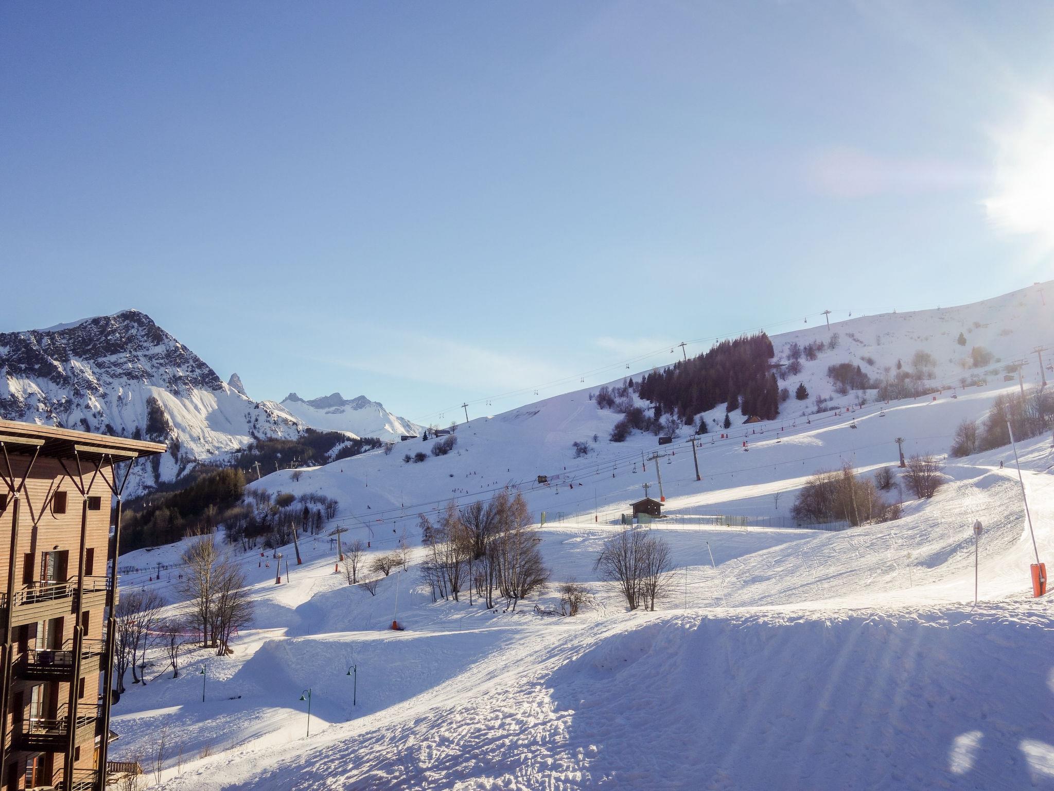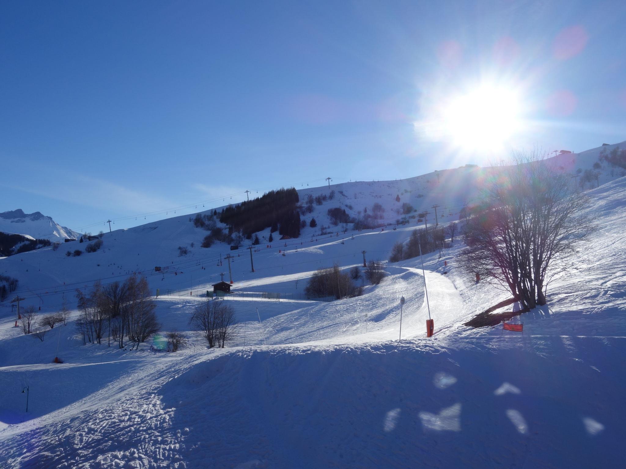 "Bâtiment B", 3-room apartment 40 m2 on 5th floor, south facing position. Cosy furnishings: living/dining room with 1 pull-out bed (2 pers. 2 x 80 cm, length 190 cm), TV (flat screen). Exit to the balcony, south facing position. 1 room, south facing position with 1 french bed (140 cm, length 190 cm). 1 room, south facing position with 1 x 2 bunk beds (80 cm, length 190 cm). Kitchenette (dishwasher, 4 ceramic glass hob hotplates, toaster, kettle, microwave, electric coffee machine). Bathroom, sep. WC. Electric heating. Carpet. Balcony 4 m2, south facing position. Balcony furniture, deck chairs (2). Beautiful view of the mountains and the ski run. Facilities: iron, hair dryer. Internet (WiFi, extra). Please note: non-smokers only. Smoke alarm. Offer by a private individual according to Art. 155, IV of CGI.
