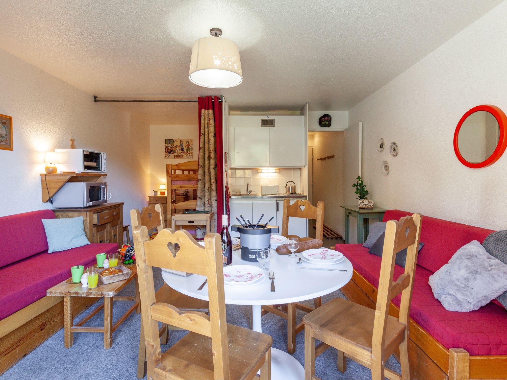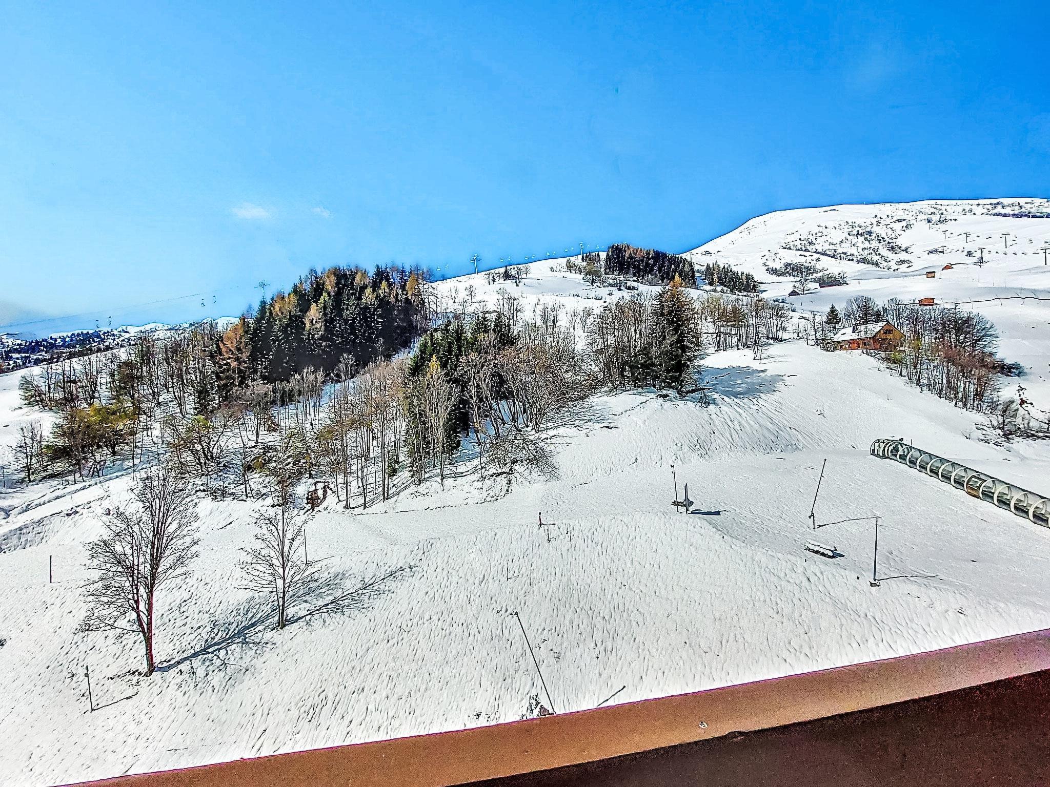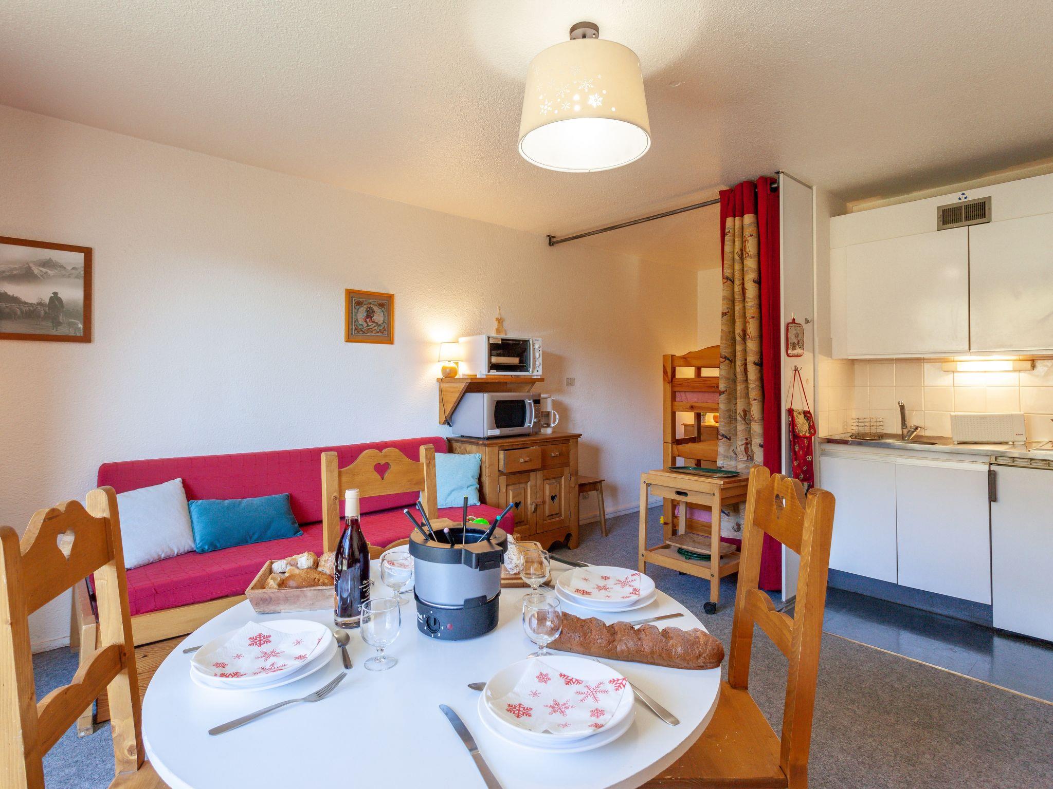 1-room studio 32 m2 on 11st floor, south facing position. Simple furnishings: living/dining room with 2 beds (80 cm, length 190 cm), TV (flat screen). Exit to the balcony, south facing position. Alcove with curtain, without window with 1 x 2 bunk beds (80 cm, length 190 cm). Kitchenette (2 hot plates, oven, toaster, microwave, electric coffee machine). Bathroom, sep. WC. Electric heating. Carpet. Balcony 4 m2, south facing position. Balcony furniture, deck chairs (2). View of the ski run. Facilities: children's high chair. Internet (WiFi, extra). Please note: maximum 1 pet/ dog allowed. Smoke alarm. Instead of an enclosed bedroom, some sleeping areas are located in an open-plan area (gallery, alcove, etc.). Offer by a private individual according to Art. 155, IV of CGI.