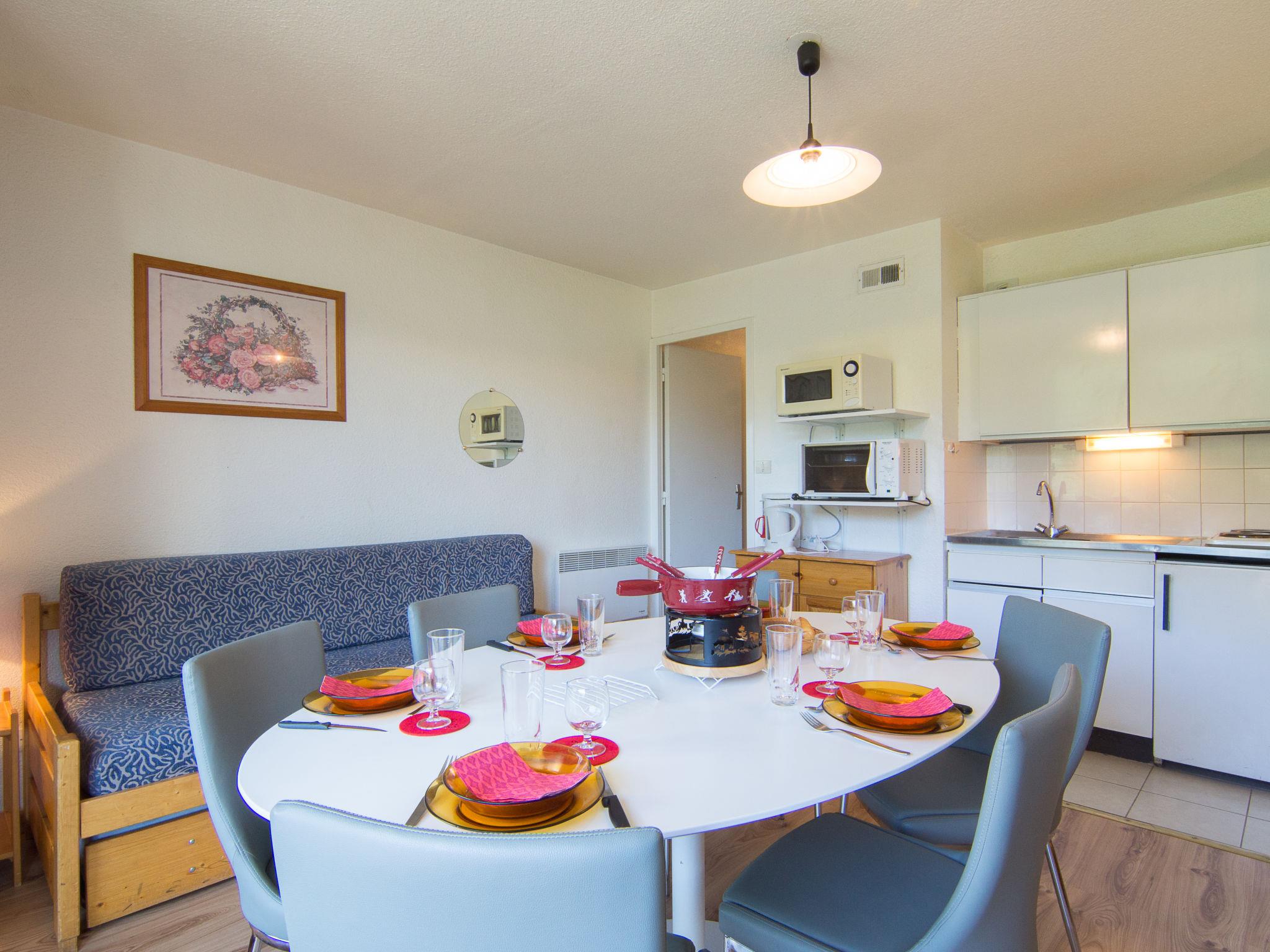 3-room apartment 40 m2 on 15th floor, south-east facing position. Very simple furnishings: living/dining room with 1 pull-out bed (2 pers. 2 x 80 cm, length 190 cm), TV (flat screen). Exit to the balcony, south facing position. 1 room with 1 french bed (140 cm, length 190 cm), electric shutters. Exit to the balcony. 1 room with 1 x 2 bunk beds (80 cm, length 190 cm), electric shutters. Exit to the balcony. Kitchenette (2 hot plates, oven, kettle, microwave, electric coffee machine). Bathroom, sep. WC. Electric heating. Parquet floors. 2 balconies 4 m2, south facing position and, east facing position. Balcony furniture, deck chairs (1). View of the ski run. Facilities: hair dryer. Internet (WiFi, extra). Please note: maximum 1 pet/ dog allowed. Smoke alarm. FR18856