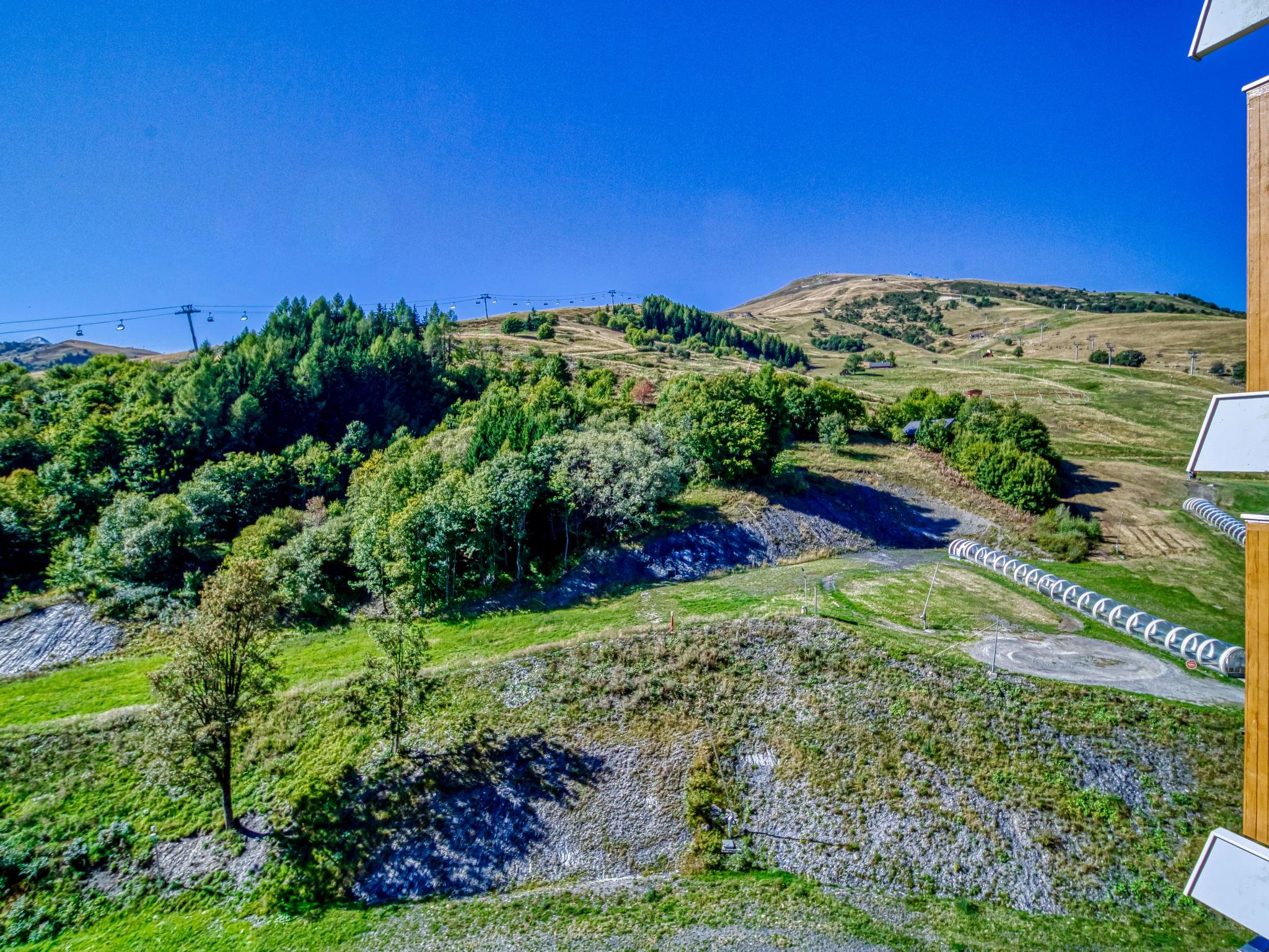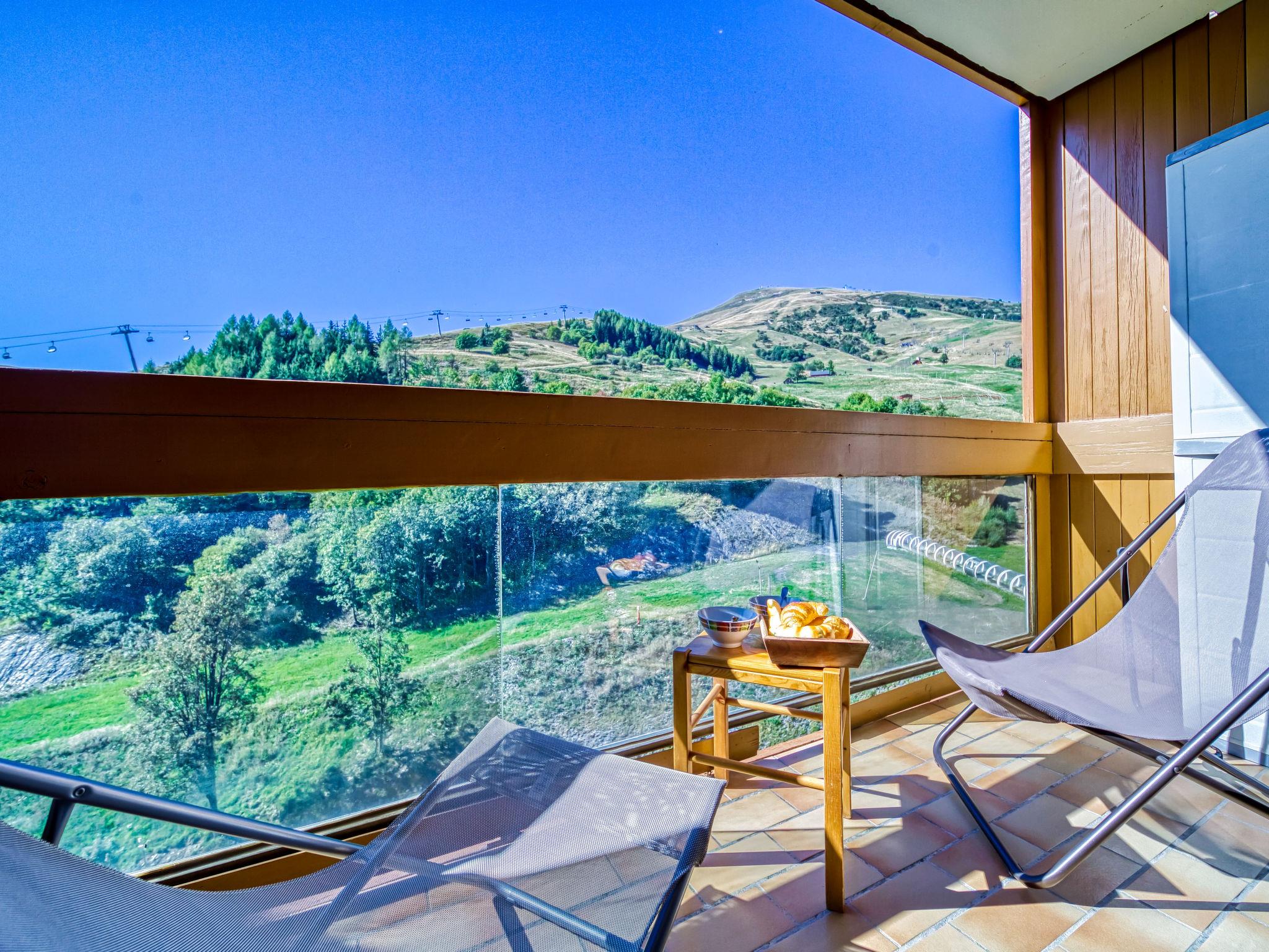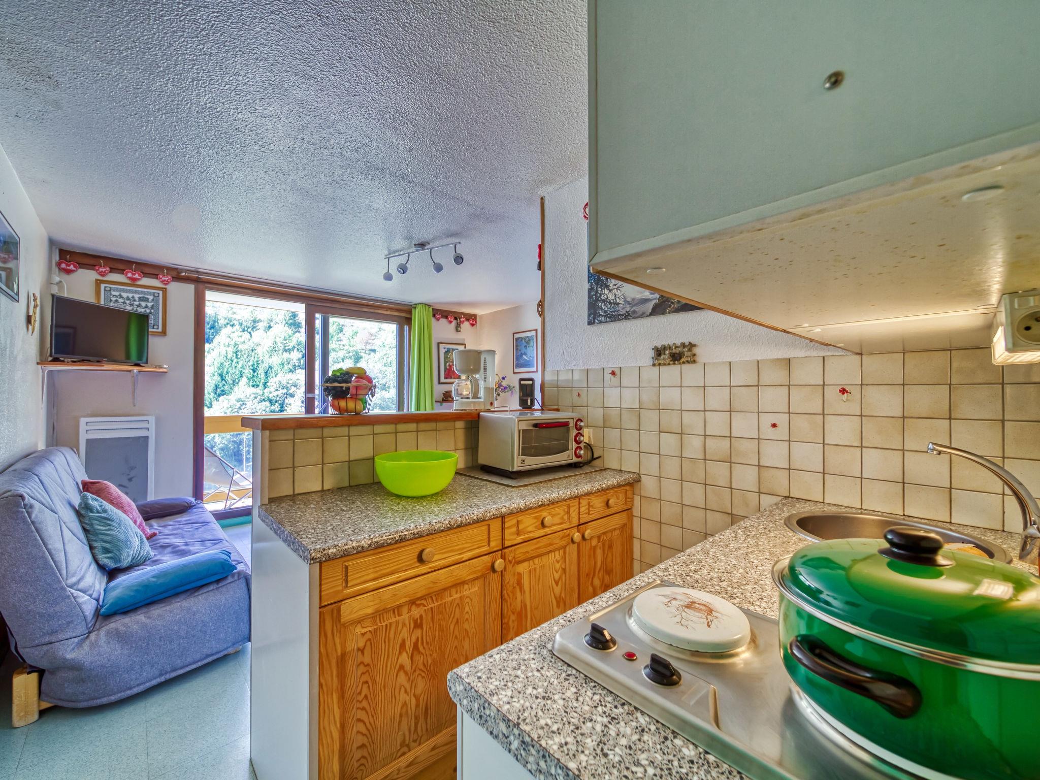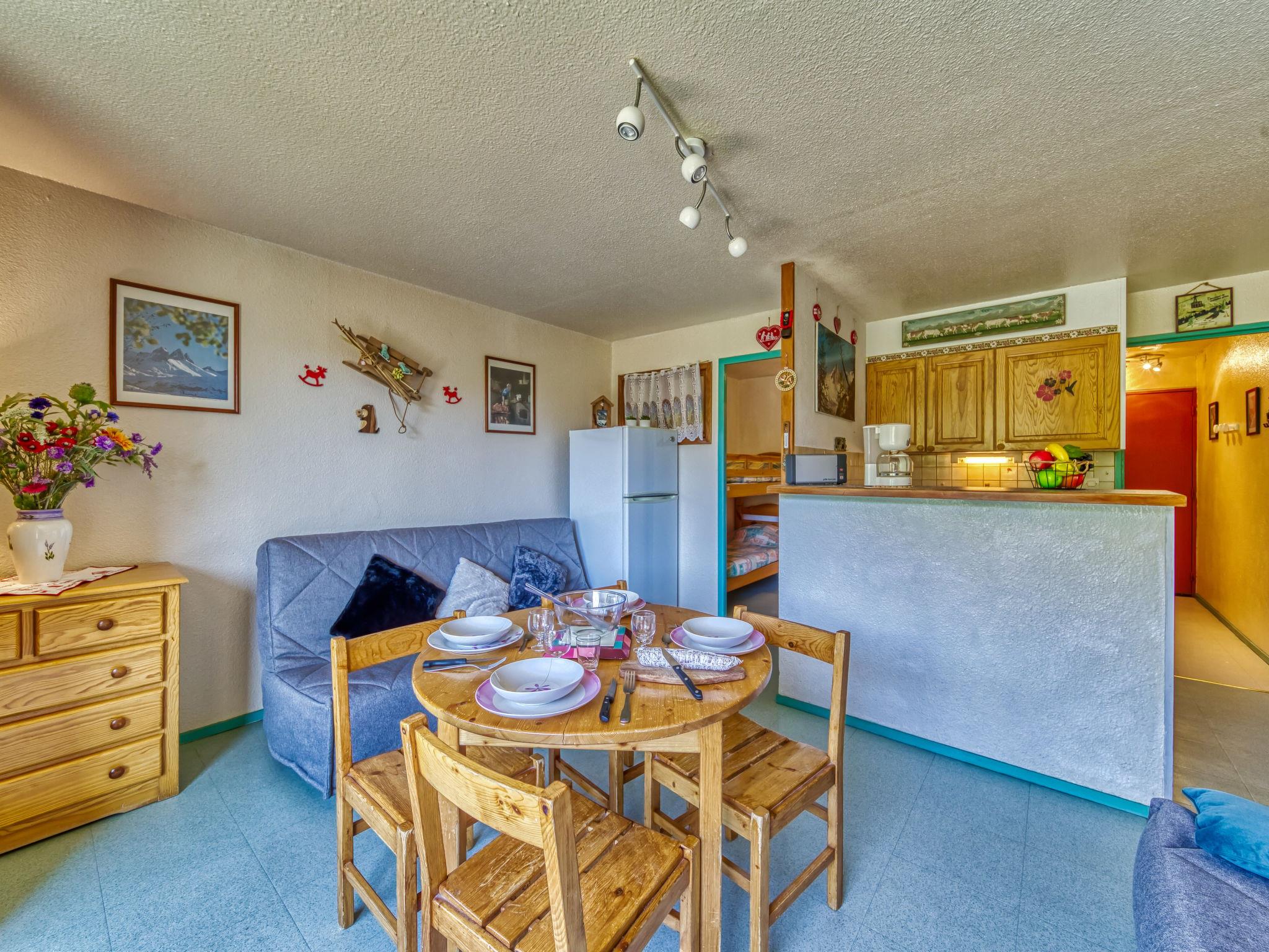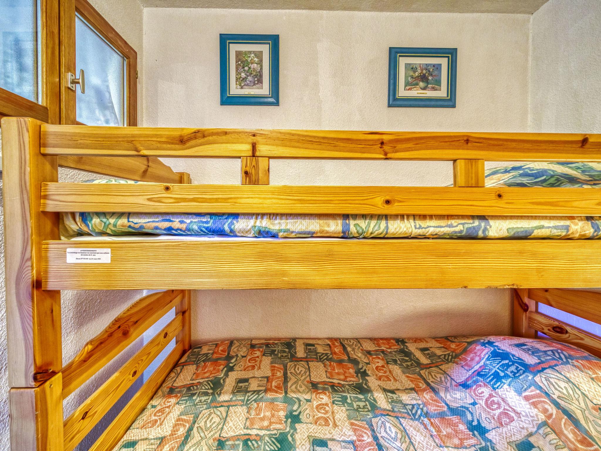 2-room apartment 32 m2 on 12nd floor, south facing position. Comfortable furnishings: living/dining room with 1 double sofabed (130 cm, length 190 cm), TV (flat screen). Exit to the balcony, south facing position. 1 small room, window onto the living room with 1 x 2 bunk beds (90 cm, length 190 cm). Kitchenette (2 hot plates, mini-oven, toaster, microwave, freezer, electric coffee machine) with bar. Bathroom, sep. WC. Electric heating. Balcony 4 m2, south facing position. Balcony furniture, deck chairs (2). View of the mountains and the ski run. Facilities: hair dryer. Internet (WiFi, extra). Please note: non-smokers only. Maximum 1 pet/ dog allowed. Smoke alarm. Instead of an enclosed bedroom, some sleeping areas are located in an open-plan area (gallery, alcove, etc.).