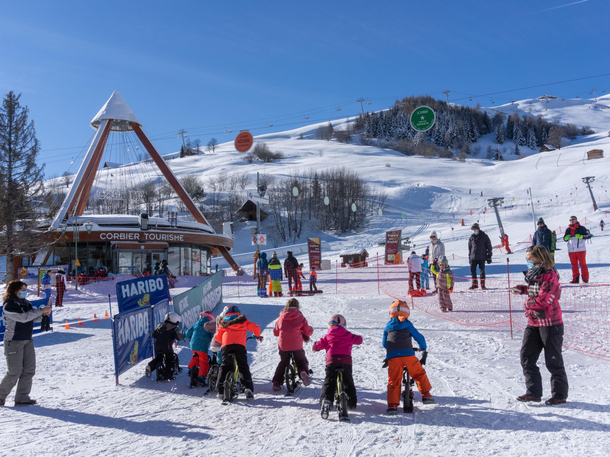 Apartment house "Vostok Zodiaque", 17 storeys. 150 m from the centre of Corbier, 100 m from the skiing area. For shared use: swimming pool heated (25 x 12 m, depth 90 - 200 cm, seasonal availability: 13.Dec. - 10.Apr. and 27.Jun. - 28.Aug. pool opening hours: 10:00-19:00). In the complex: lift, storage room for skis. Public parking 30 m. Shop, grocery, restaurant 50 m, bar 100 m, bus stop "Centre-Bagagerie" 250 m, railway station "St Jean de Maurienne" 17 km, outdoor swimming pool 100 m. Ski lift, chair lift, slopes, ski school 100 m, ski-kindergarten 50 m, sled run 100 m. Please note: Additional accommodations can be booked. The swimming pool facilities are 100 m from the residence at the municipal pool. Entrance for under 3’s is not allowed. Children between 3 and 5 years old are allowed subject to weather conditions (in winter). Entrance tickets to the swimming pool are included in your rental price and will be given to you when you check in.