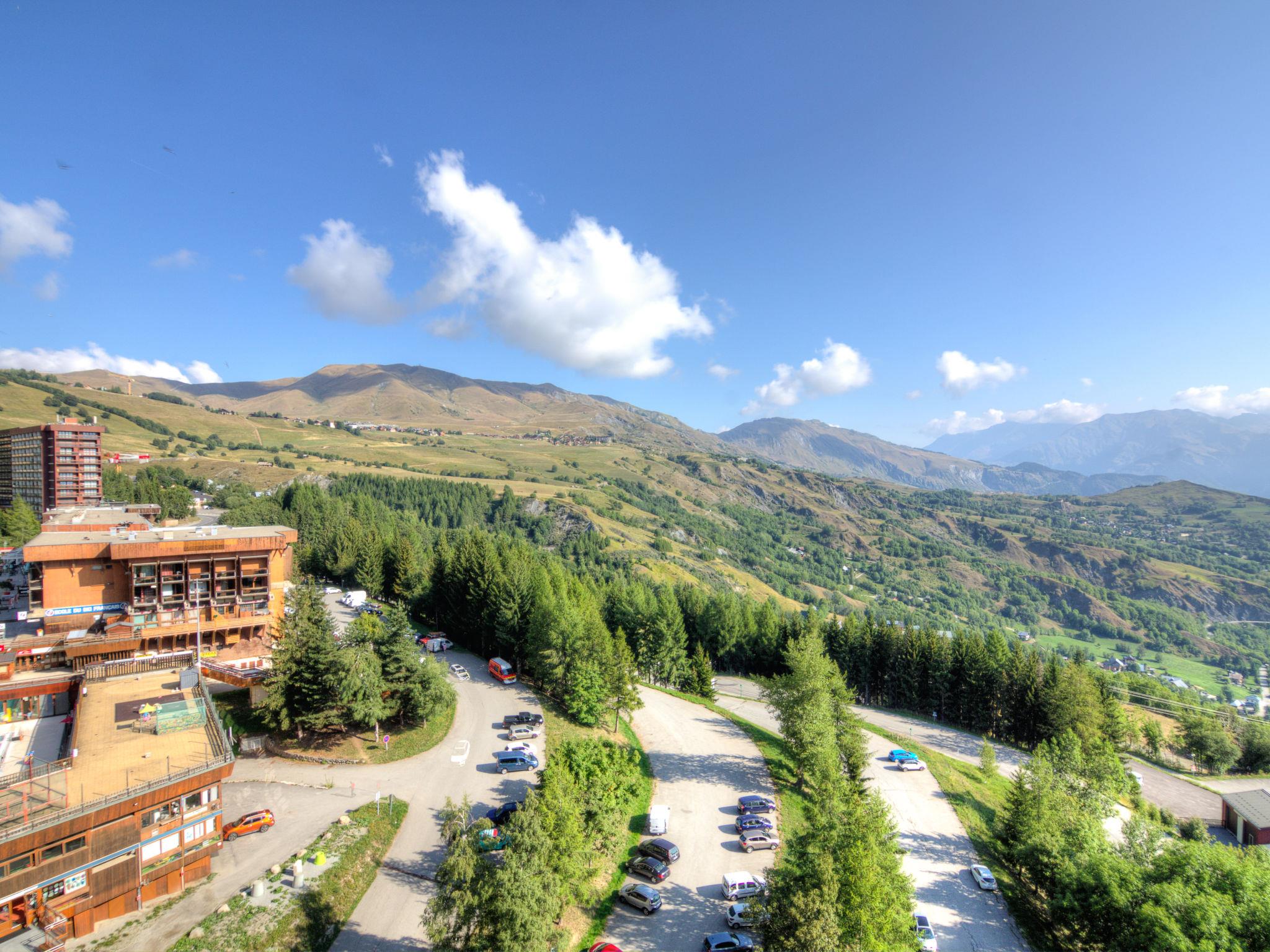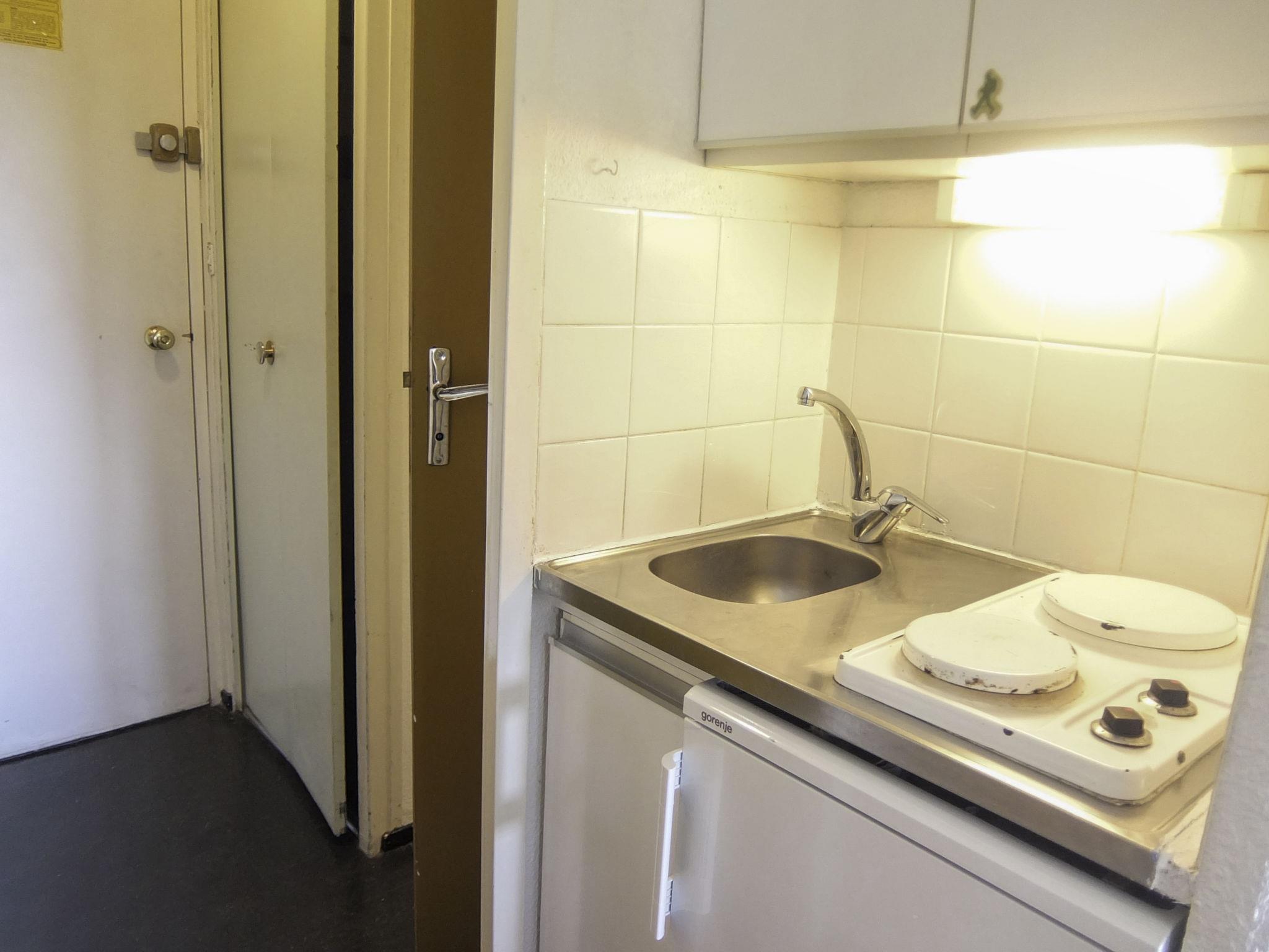 1-room studio 16 m2 on 13rd floor, north facing position. Simple furnishings: living/dining room with 1 pull-out bed (2 pers. 2 x 80 cm, length 190 cm), TV (flat screen). Kitchenette (2 hot plates, toaster, microwave, electric coffee machine). Bath/WC. Electric heating. Parquet floors. View of the valley. Facilities: Internet (WiFi, extra). Please note: maximum 1 pet/ dog allowed. Smoke alarm. Offer by a private individual according to Art. 155, IV of CGI.