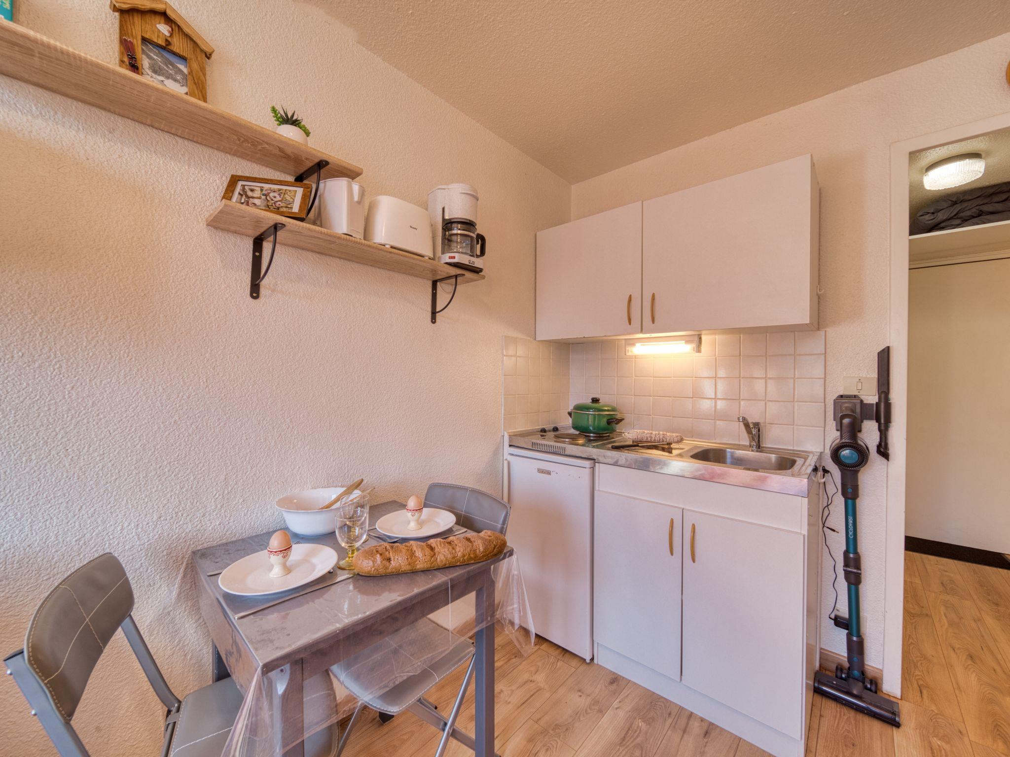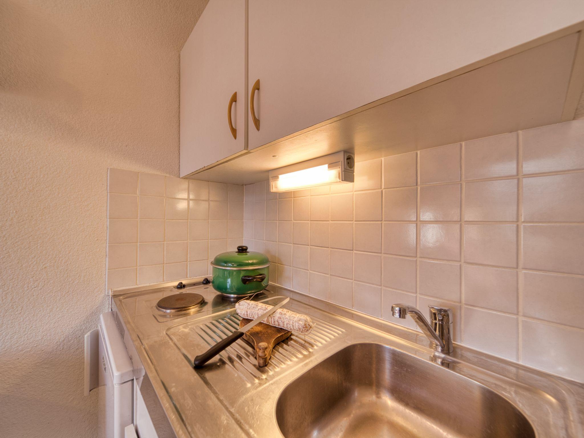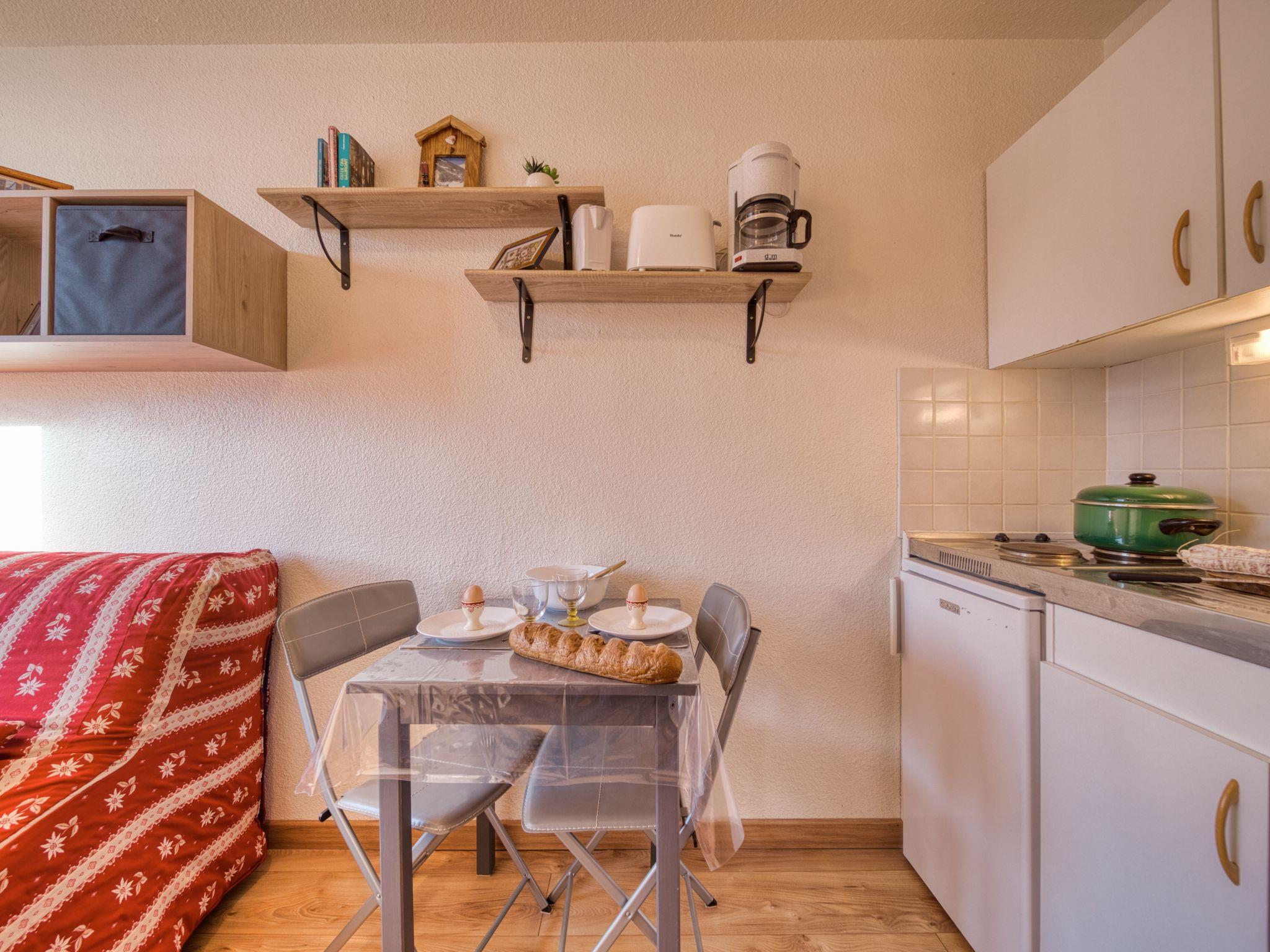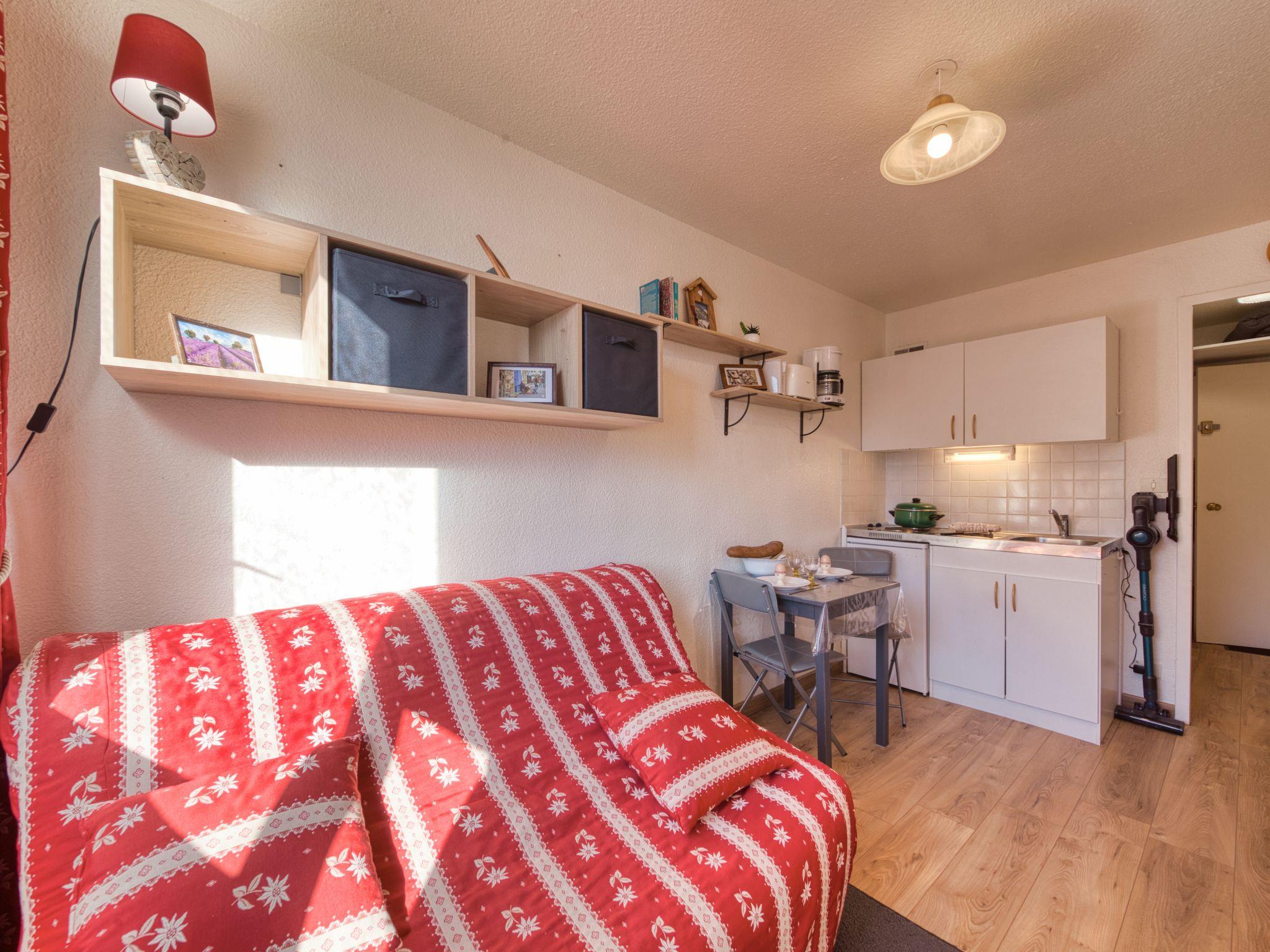 1-room studio 13 m2 on 14th floor, south facing position. Simple and beautiful furnishings: living/sleeping room with 1 double sofabed (140 cm, length 190 cm), TV (flat screen), radio. Small kitchenette (2 hot plates, toaster, kettle, microwave, electric coffee machine). Bath/WC. Electric heating. Beautiful view of the mountains and the ski run. Facilities: hair dryer. Internet (WiFi, extra). Please note: non-smokers only. Smoke alarm. Offer by a private individual according to Art. 155, IV of CGI.
