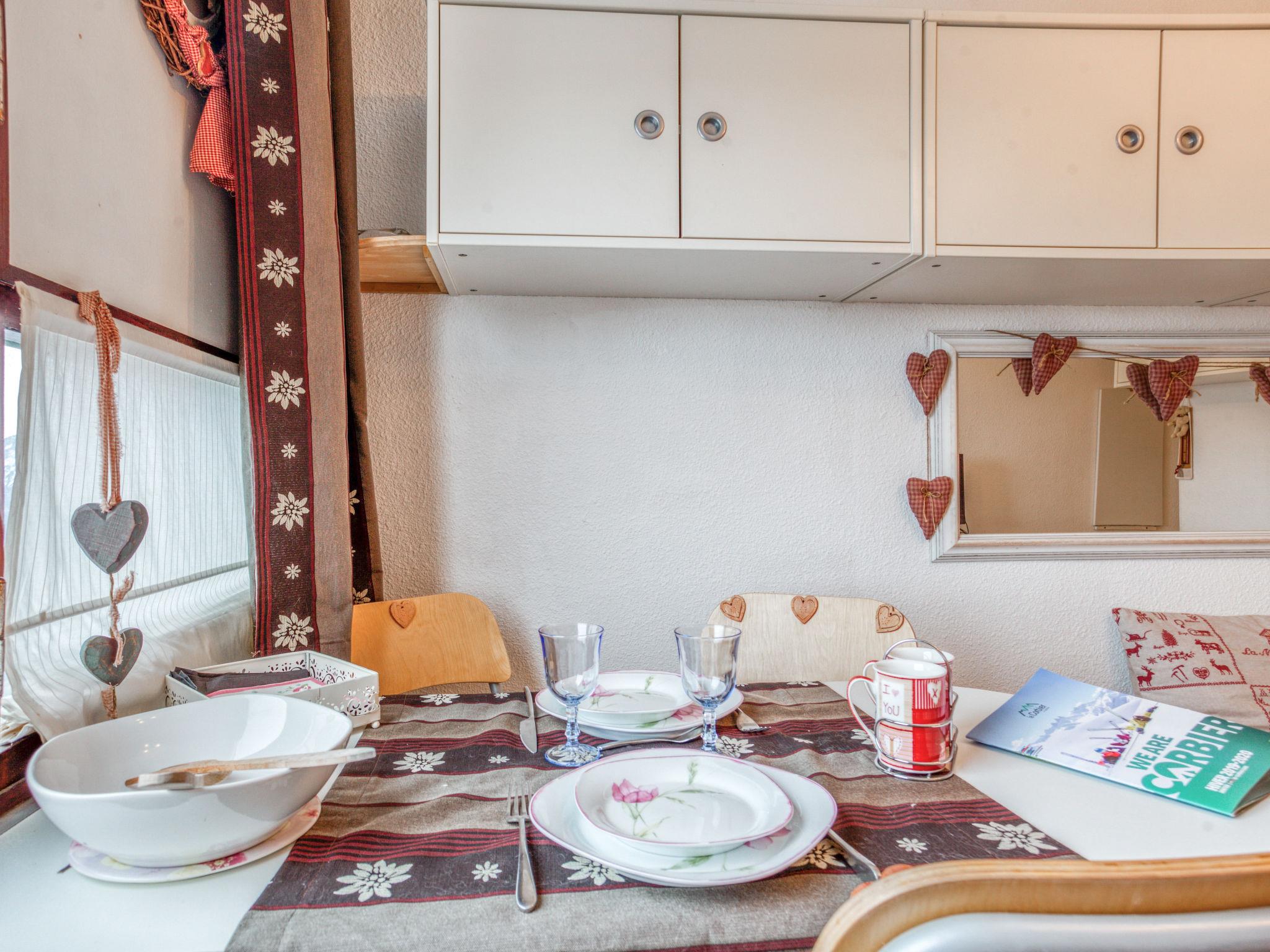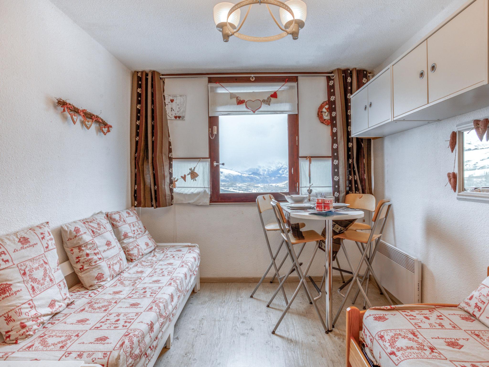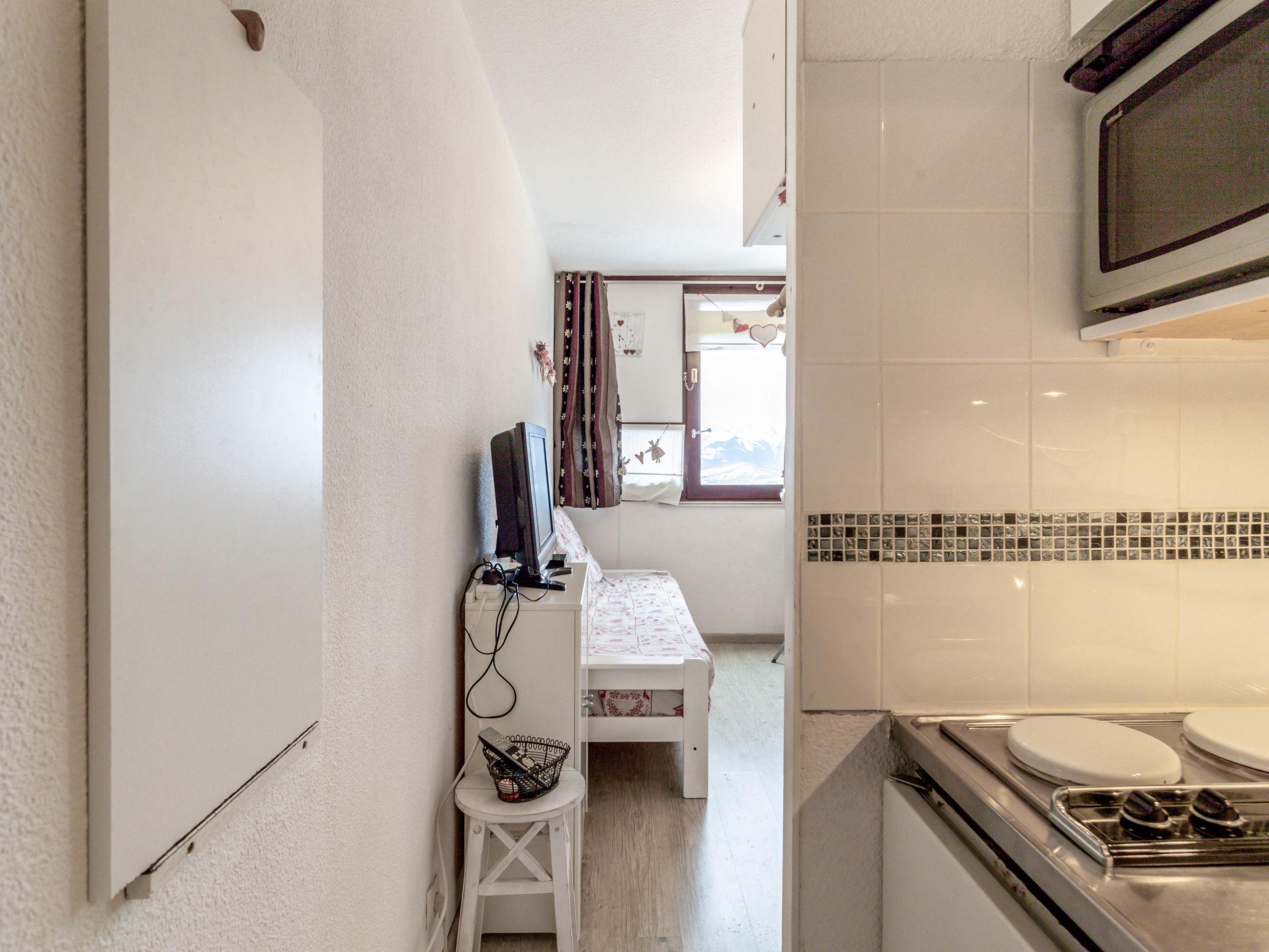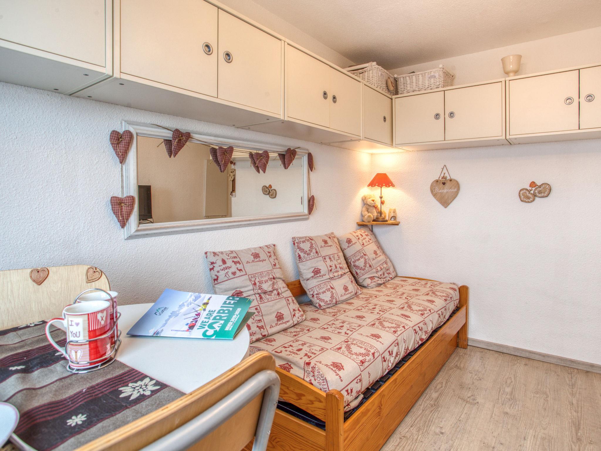 1-room studio 16 m2 on 11st floor, north facing position. Living/dining room with 1 pull-out bed (2 pers. 2 x 80 cm, length 190 cm), TV. Kitchenette (2 hot plates, microwave, electric coffee machine). Bath/WC. Electric heating. Parquet floors. View of the valley. Facilities: Internet (WiFi, extra). Please note: non-smokers only. Smoke alarm. Offer by a private individual according to Art. 155, IV of CGI.