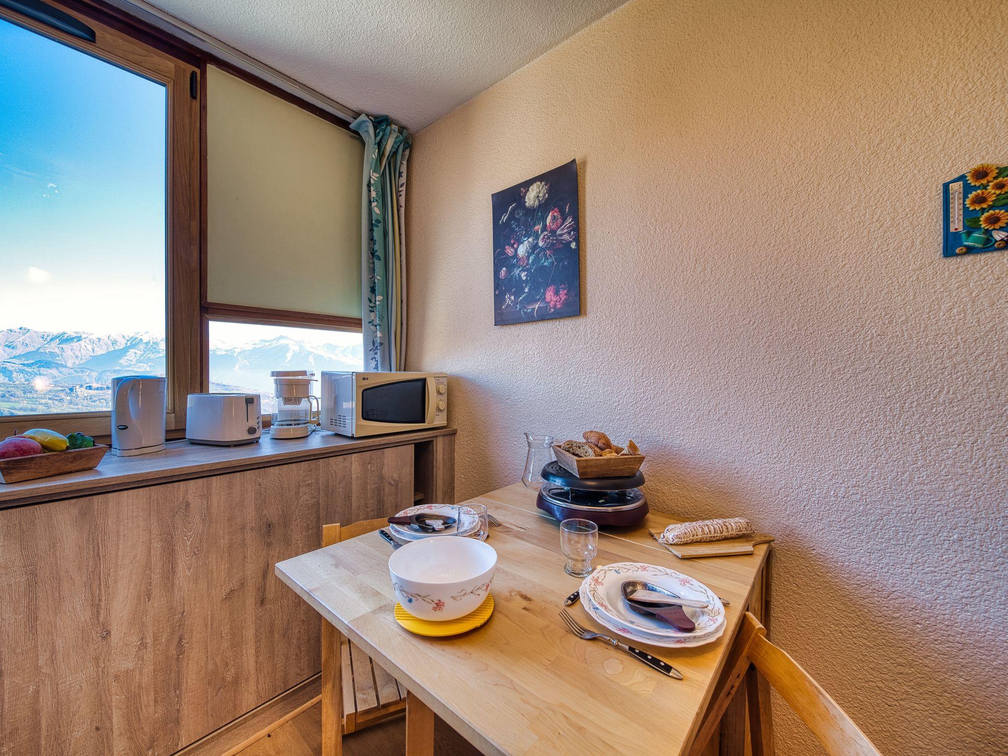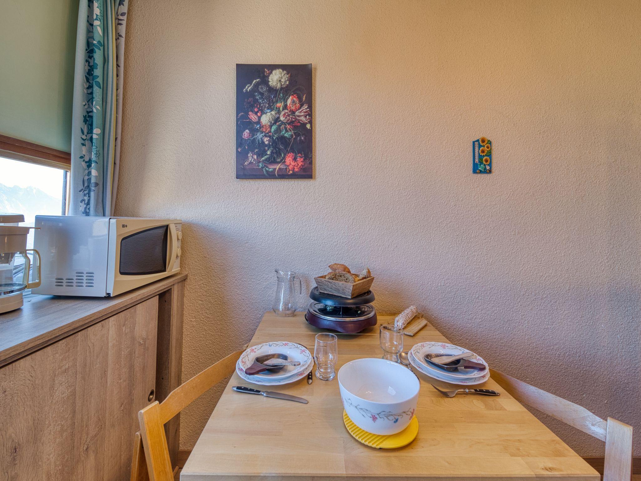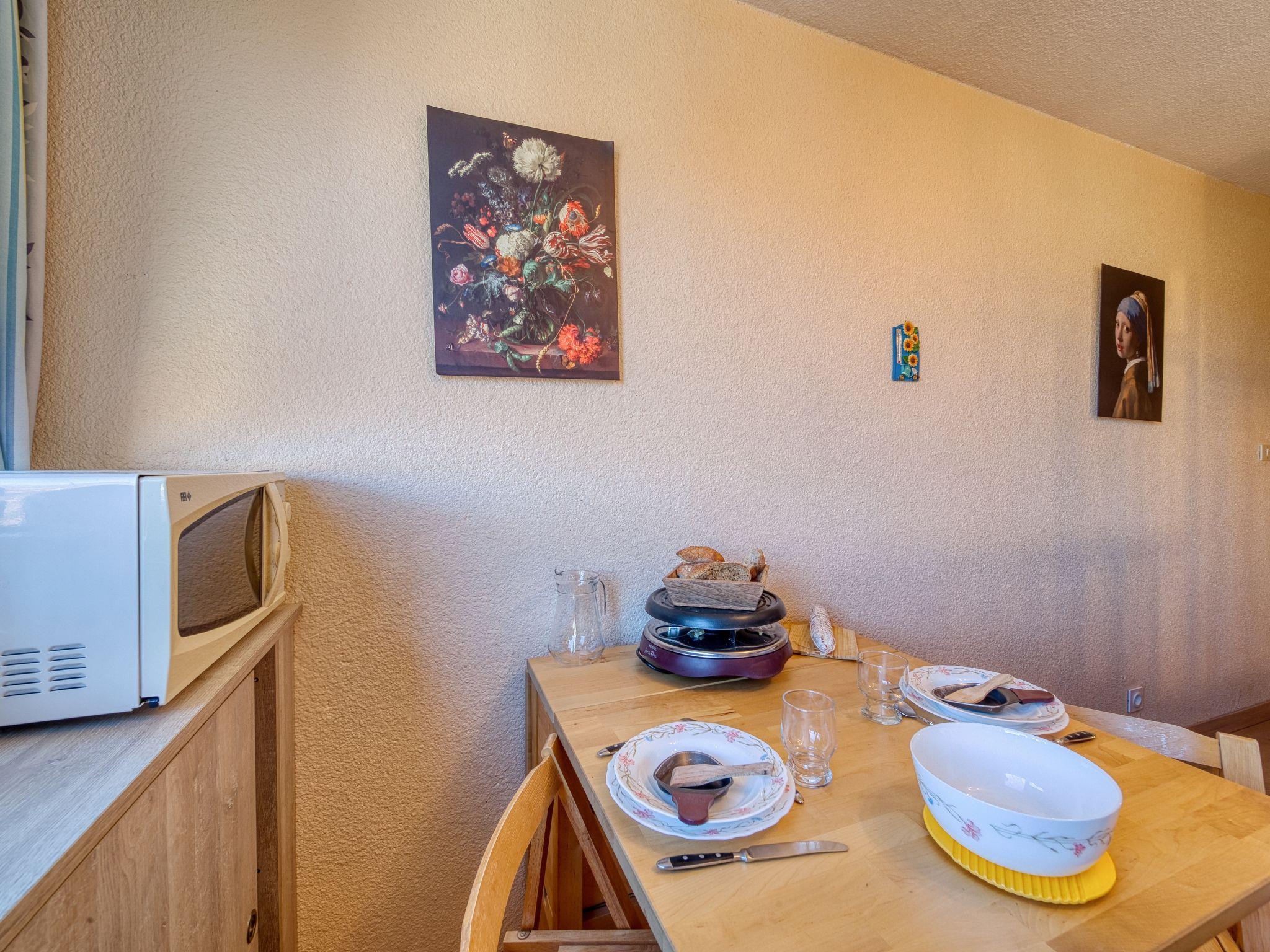 1-room studio 16 m2 on 7th floor, north facing position. Simple furnishings: living/dining room with 1 x 2 bunk beds (130 cm, length 190 cm), TV (flat screen). Kitchenette (2 ceramic glass hob hotplates, toaster, kettle, microwave, electric coffee machine, raclette grill). Bath/WC. Electric heating. Parquet floors. View of the valley. Facilities: hair dryer. Internet (WiFi, extra). Please note: non-smokers only. Maximum 1 pet/ dog allowed. Smoke alarm. Offer by a private individual according to Art. 155, IV of CGI.