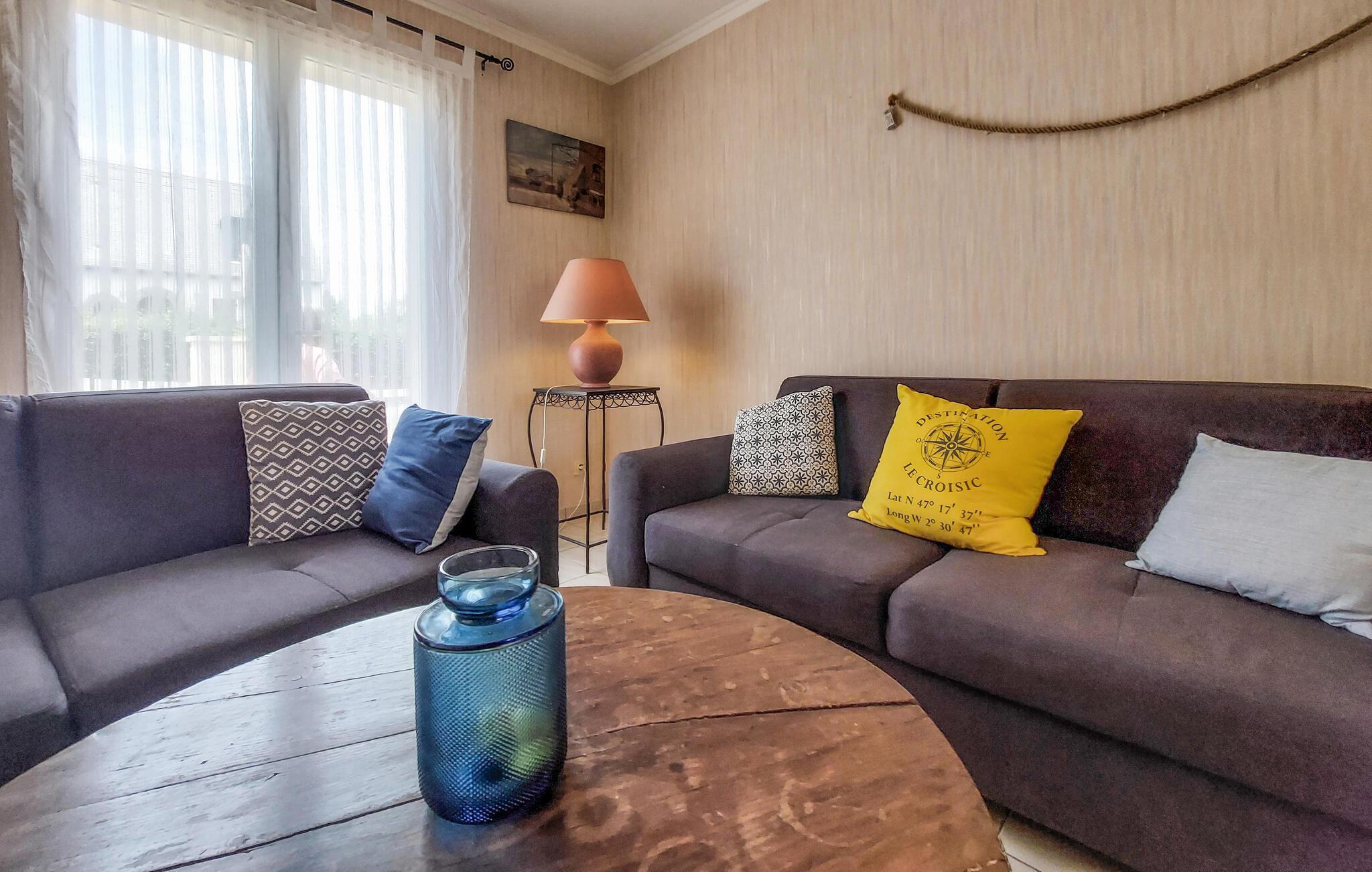 En lys og hyggelig atmosfære lægger op til dette charmerende feriehus i hjertet af Le Croisic. Her kan I trylle lækre måltider frem med friske råvarer fra markedet og planlægge jeres aktiviteter over afslappede måltider. Efter lange vandreture inviterer de komfortable sofaer jer til at nyde harmoniske spilleaftener eller stille læsetid.