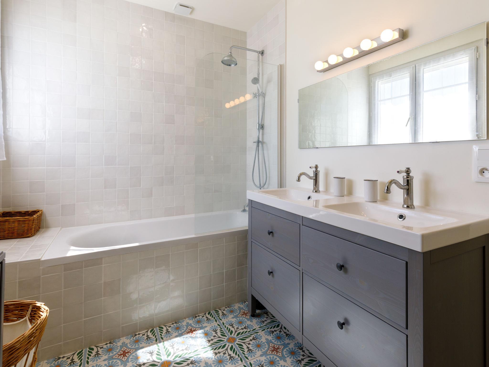 6-room villa 160 m2 on 3 levels. Very comfortable furnishings: dining room with dining table. 1 room with 1 double sofabed (140 cm, length 190 cm). Open kitchen (oven, dishwasher, Gas stove, 4 gas rings, toaster, kettle, freezer, electric coffee machine). Exit to the terrace. Shower/WC. Upper floor: large living room with TV (flat screen). 1 room with 1 french bed (140 cm, length 190 cm). Bathroom, sep. WC. 2nd upper floor: 1 room with 2 beds (90 cm, length 200 cm). 1 room with 2 bunk beds (90 cm, length 200 cm), 1 pull-out bed (1 pers.). Sep. WC. Electric heating, gas heating. Terrace. Terrace furniture, barbecue (portable), deck chairs (4), box-room. Facilities: washing machine, dryer, iron, children's high chair, baby cot for up to 2 year olds, hair dryer. Internet (WiFi, free). Please note: non-smoking house. Maximum 1 pet/ dog allowed. Smoke alarm. Offer by a private individual according to Art. 155, IV of CGI. 4404900079711
